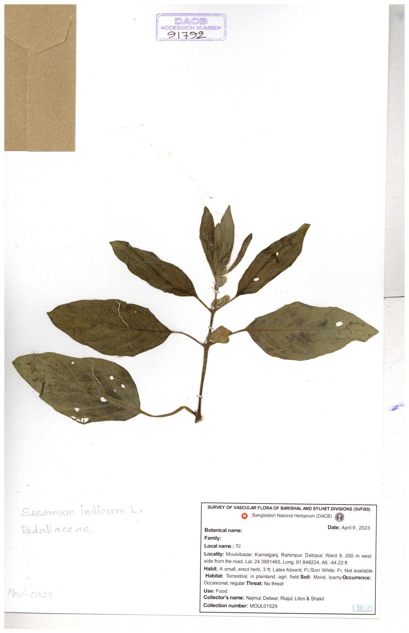 | 104855 | Pedaliaceae | Sesamum indicum | 30-11--0001 |