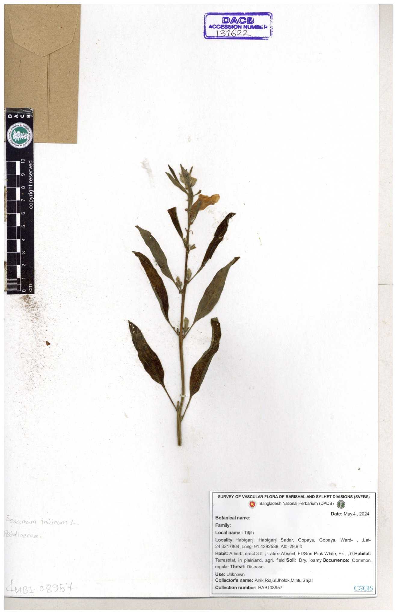 | 131622 | Pedaliaceae | Sesamum indicum | 30-11--0001 |