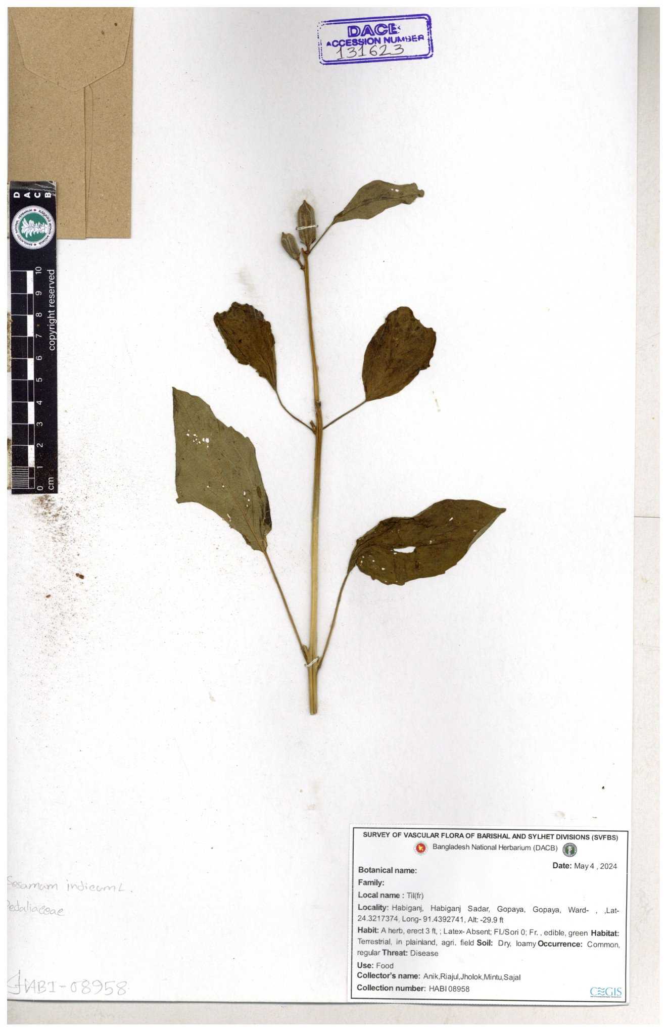 | 131623 | Pedaliaceae | Sesamum indicum | 30-11--0001 |