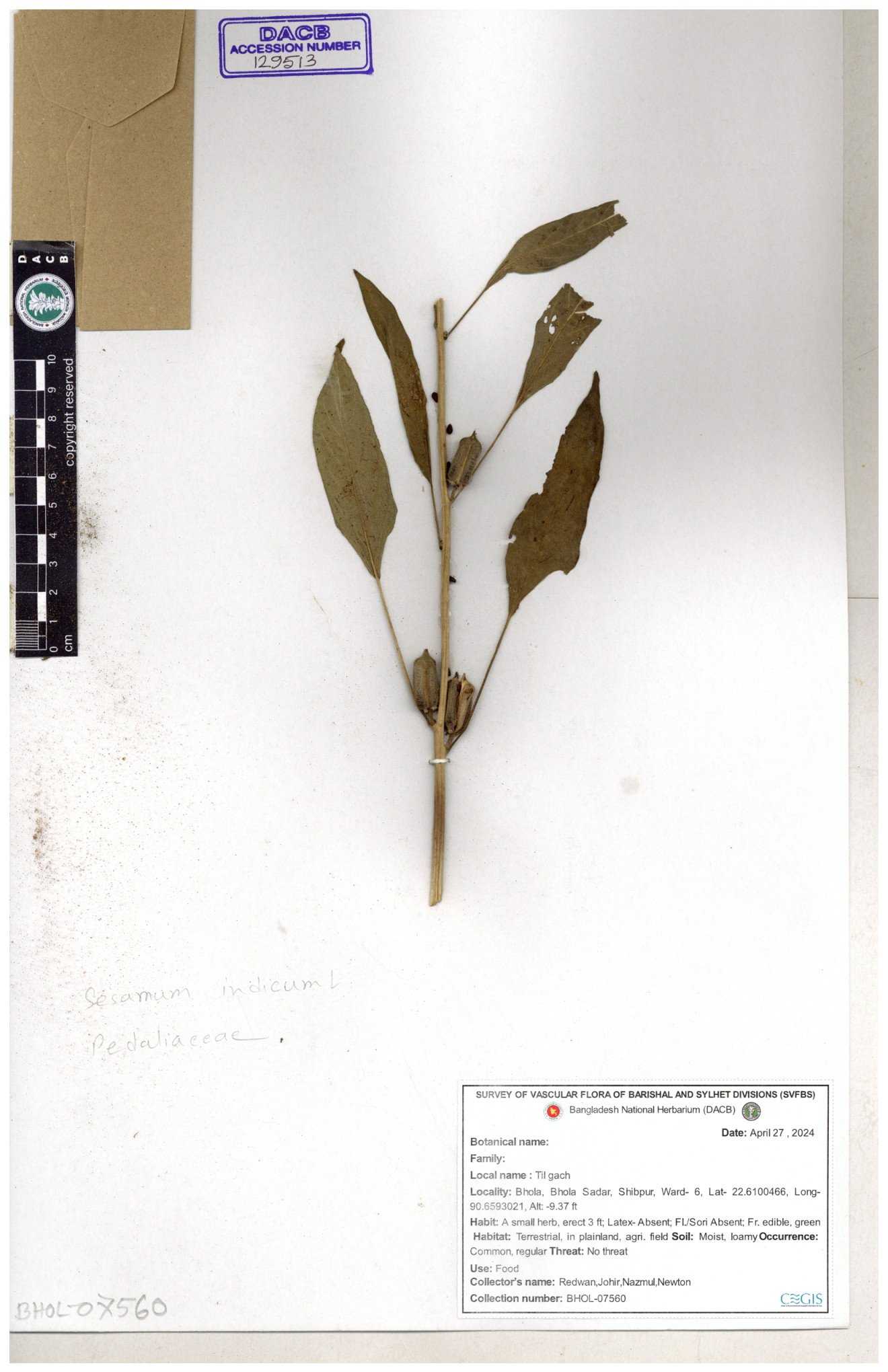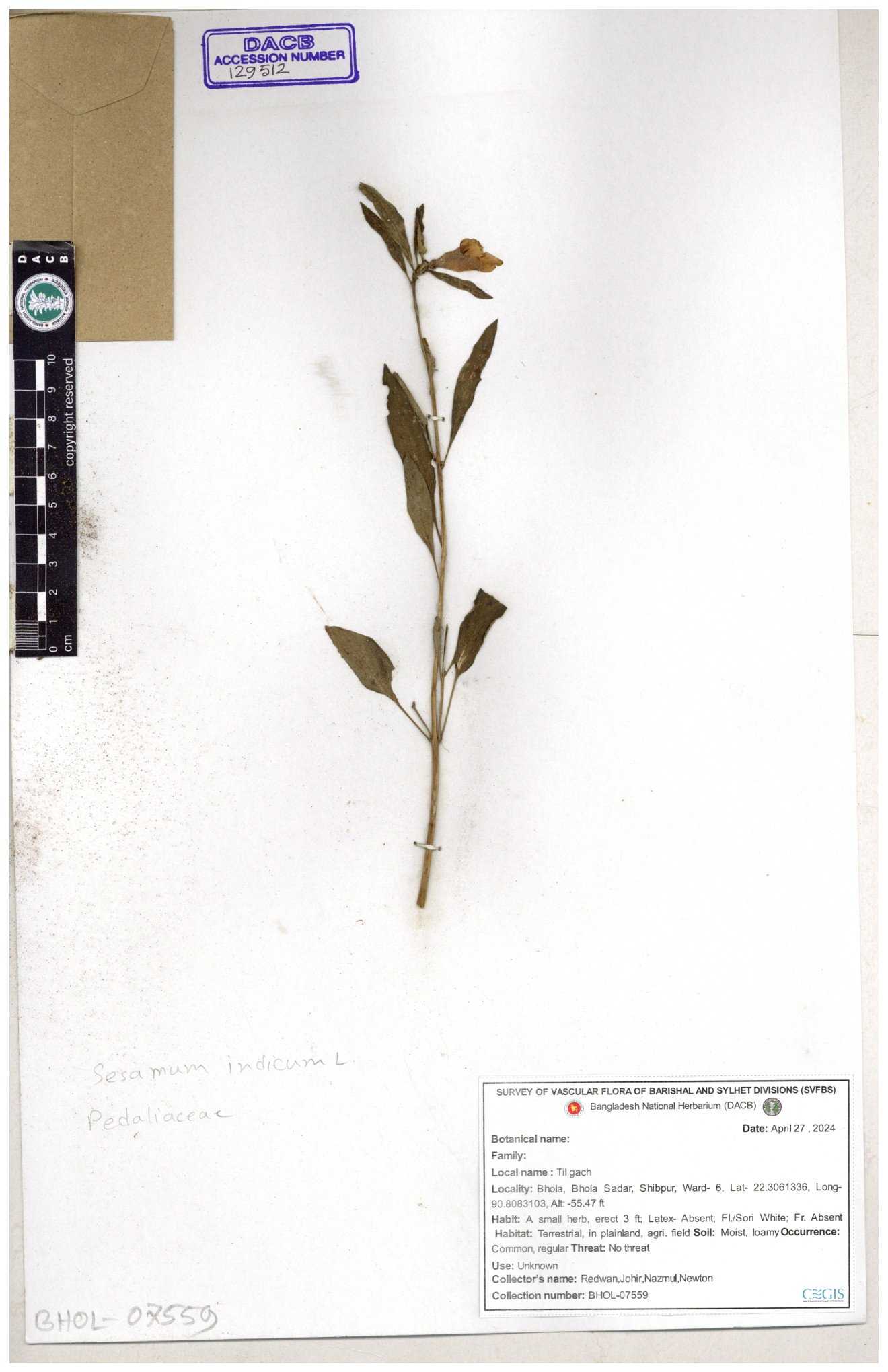 | 129512 | Pedaliaceae | Sesamum indicum | 30-11--0001 |