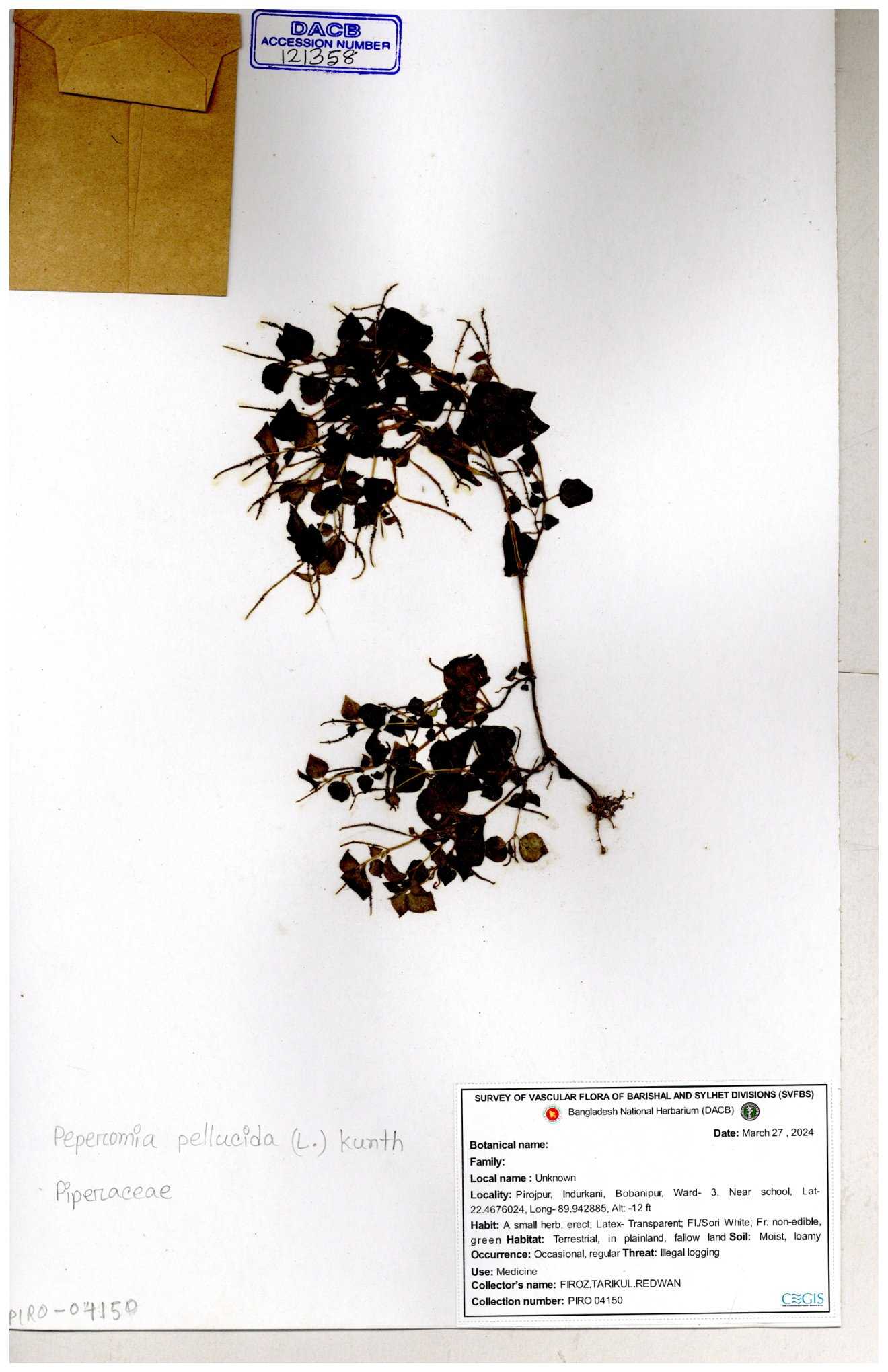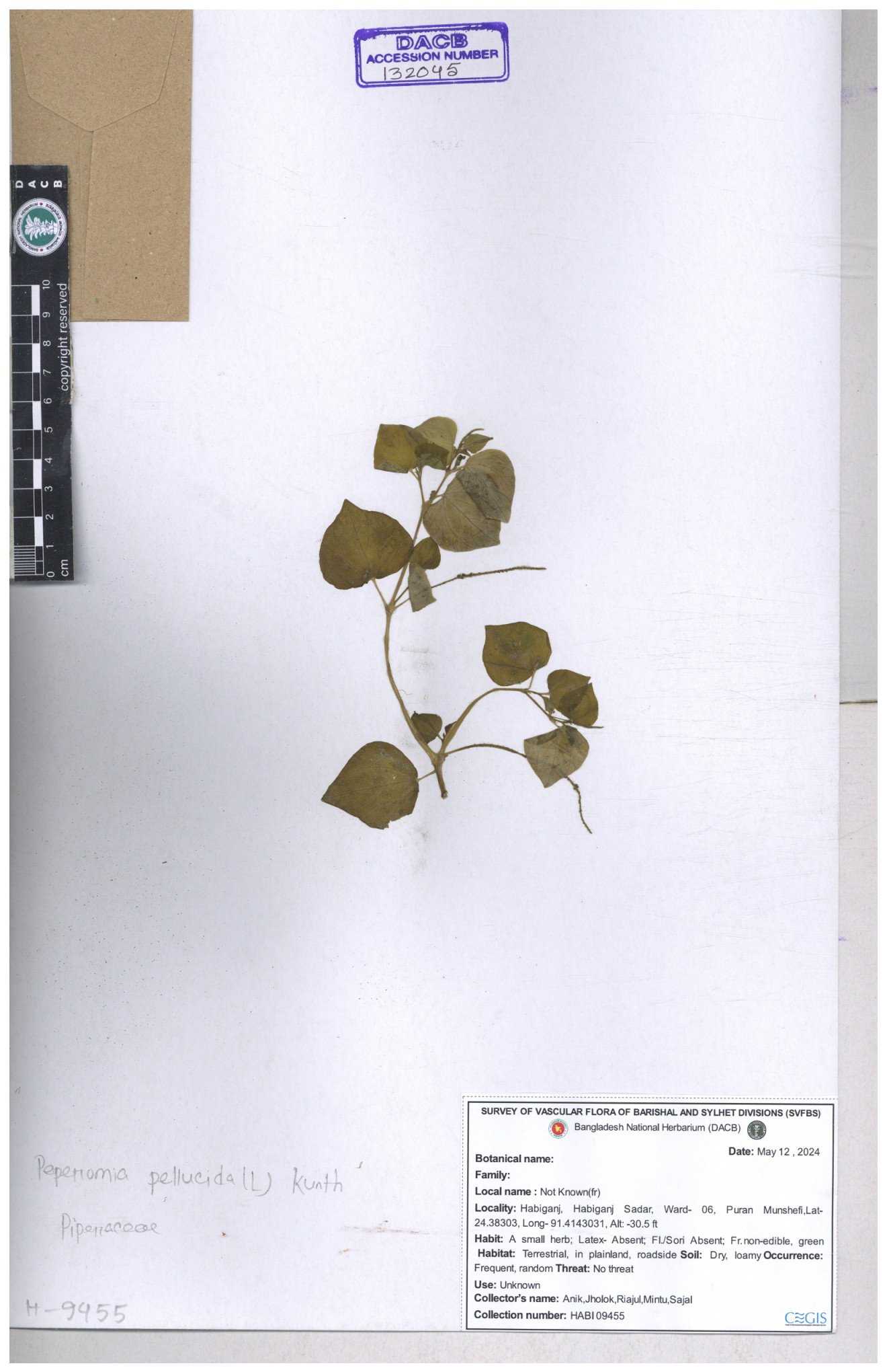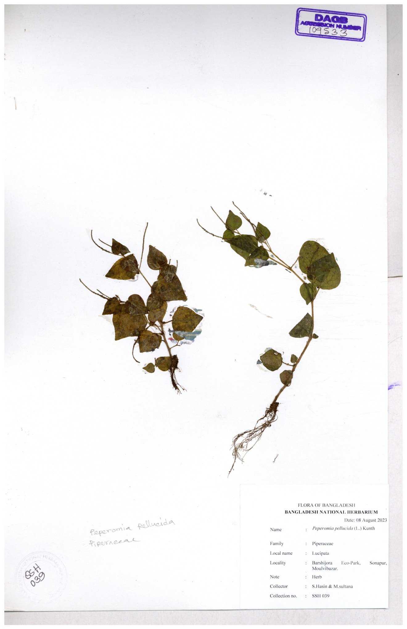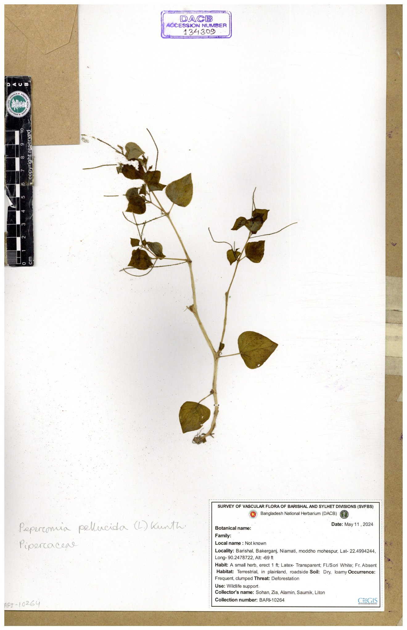 | 134309 | Piperaceae | Peperomia pellucida | Sohan, Zia, Alamin, Saumik, Liton | 30-11--0001 |
