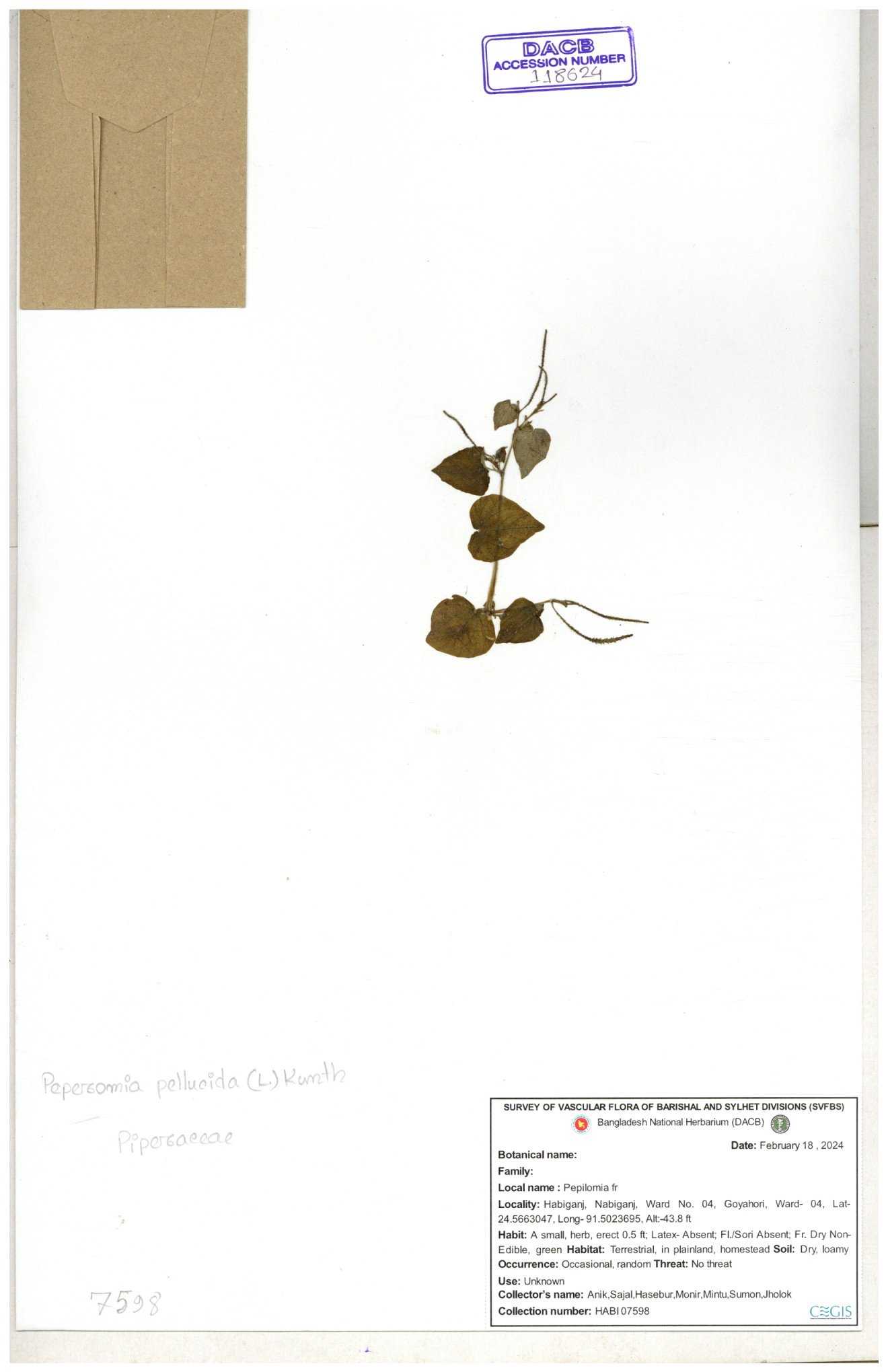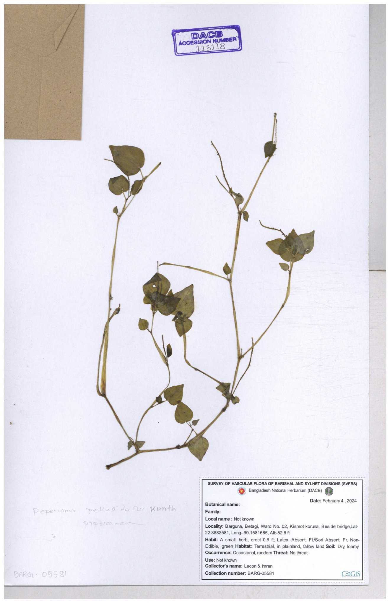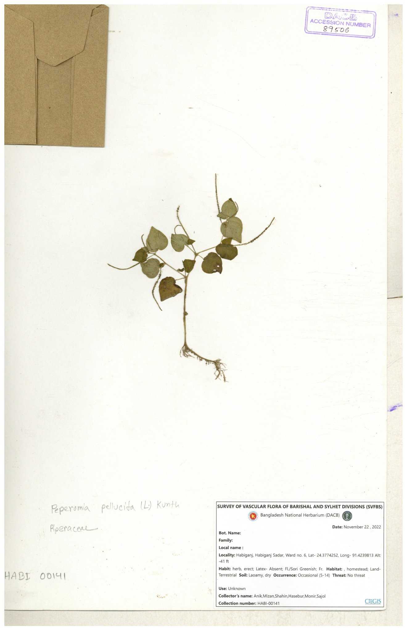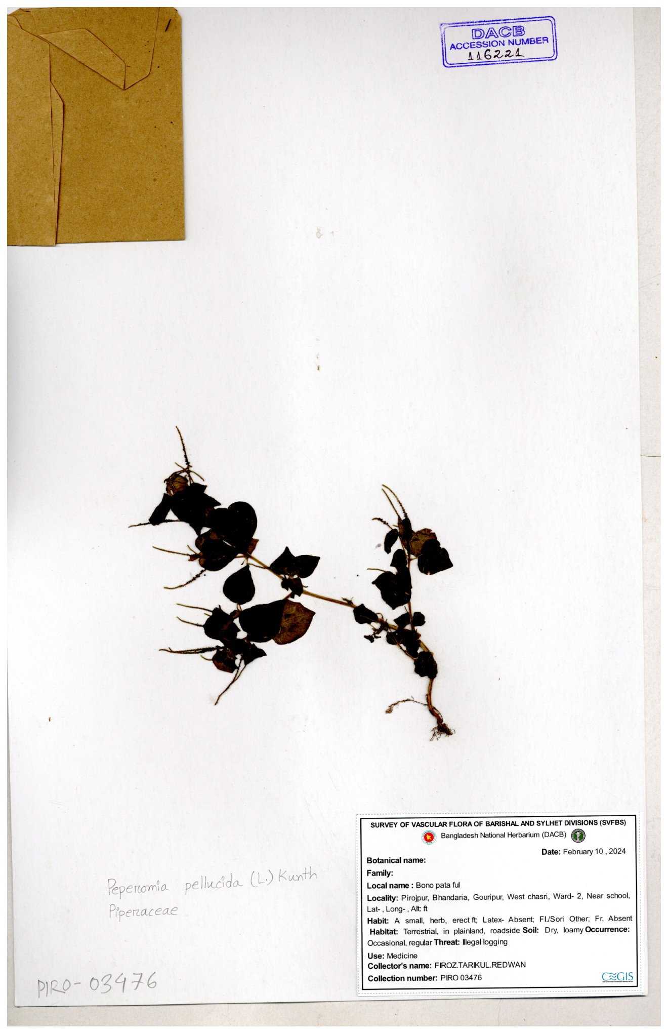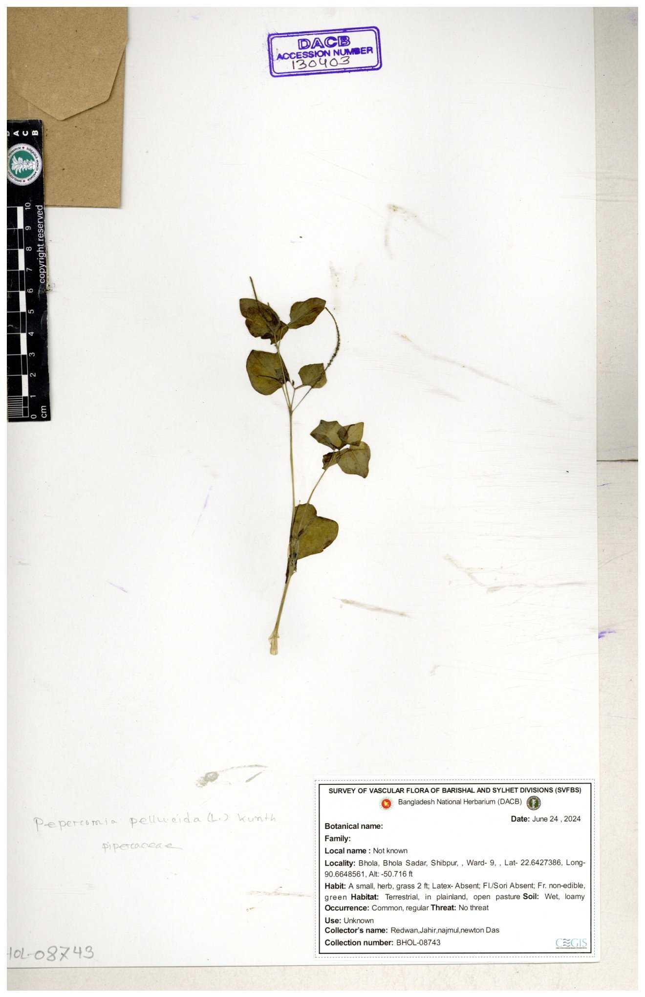 | 134309 | Piperaceae | Peperomia pellucida | Sohan, Zia, Alamin, Saumik, Liton | 30-11--0001 |