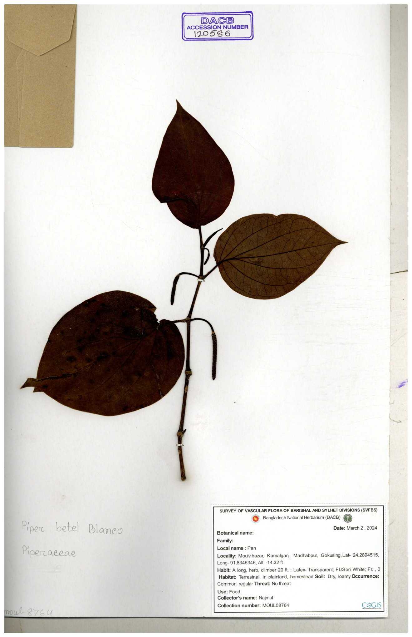 | 120586 | Piperaceae | Piper betel | 30-11--0001 |