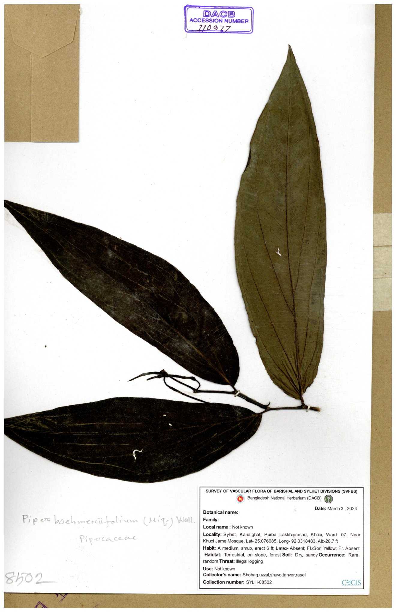 | 110977 | Piperaceae | Piper boehmeriifolium | 30-11--0001 |