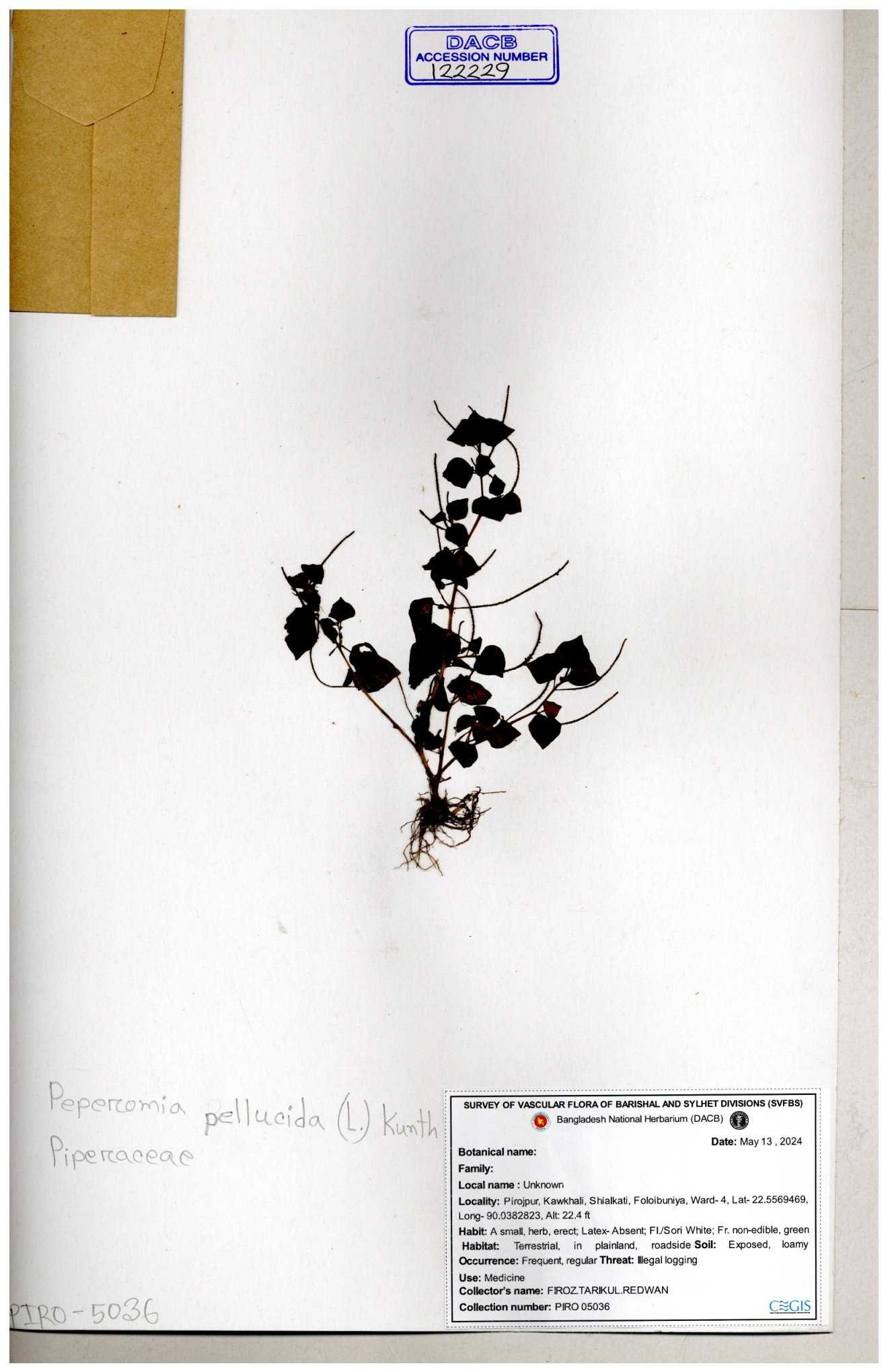 | 122229 | Piperaceae | Peperomia pellucida | 30-11--0001 |