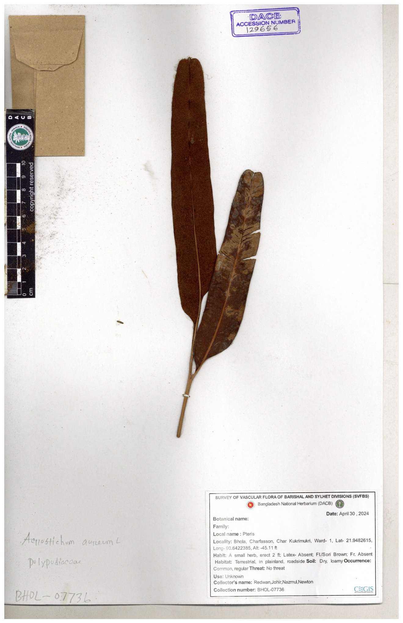 | 129656 | Polypodiaceae | Acrostichum aureum | 30-11--0001 |