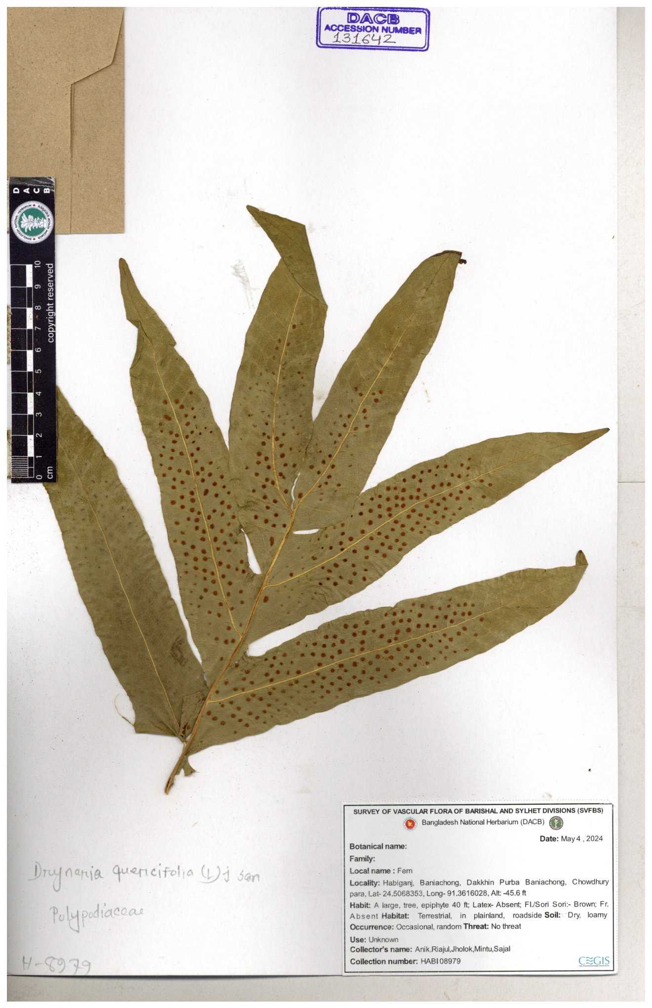 | 66490 | Polypodiaceae | Drynaria quercifolia (L.) J. Sm. | Mohammad Amdadul Hoque | MAH-46 30-11--0001 |