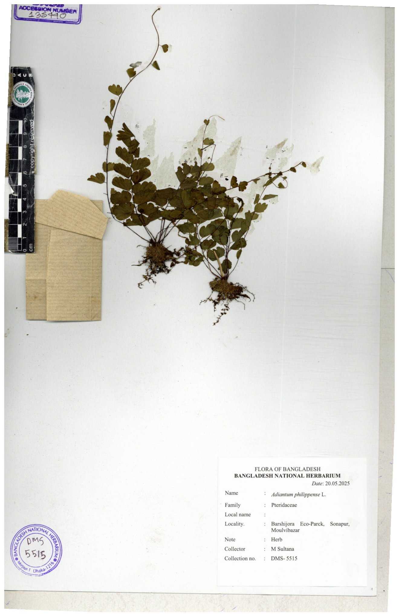 | 48370 | Pteridaceae | Adiantum capillus veneris L. | Biddapata | Khandakar Kamrul Islam | KKI-2821 11-05-2018 |