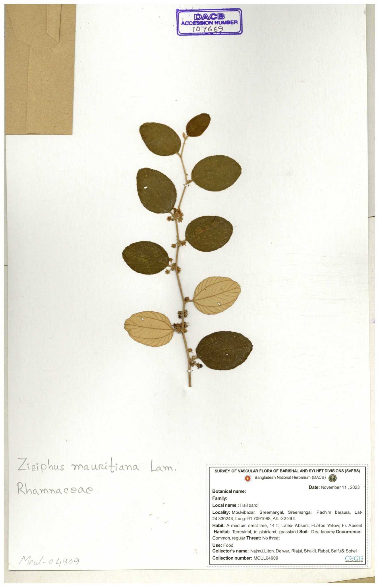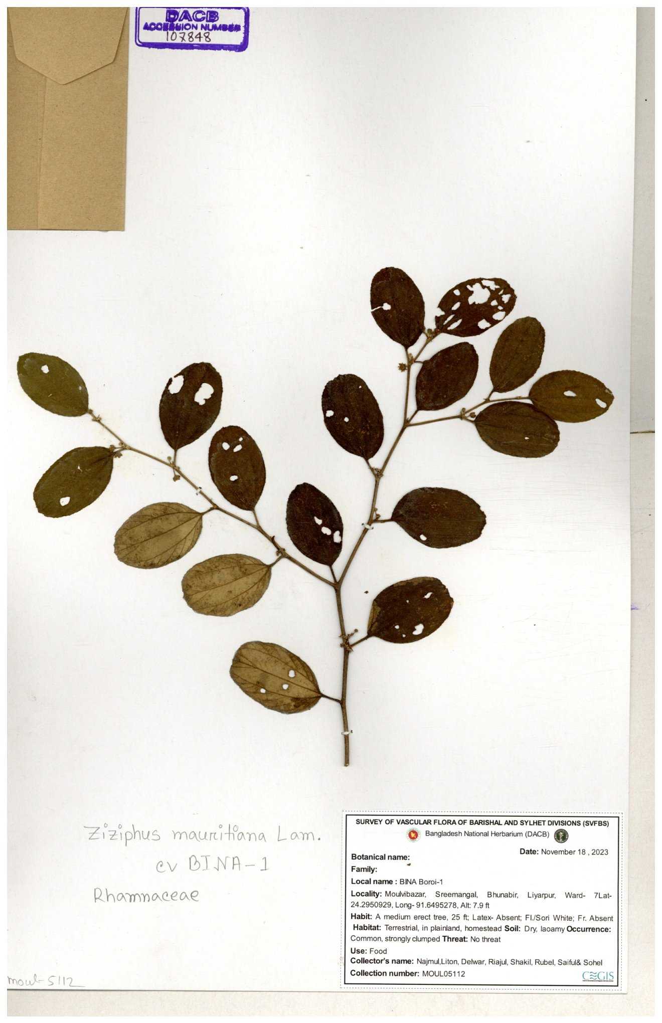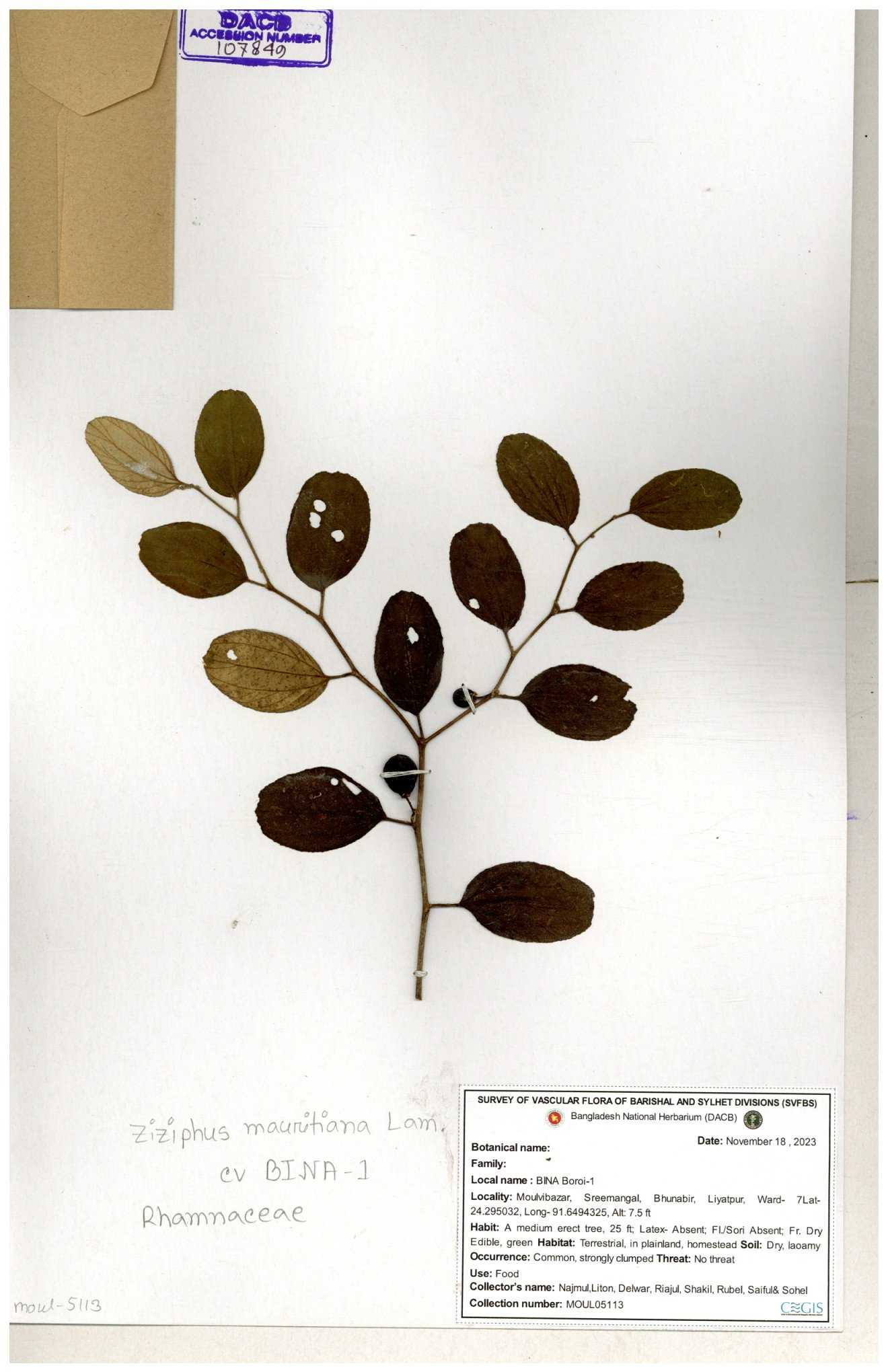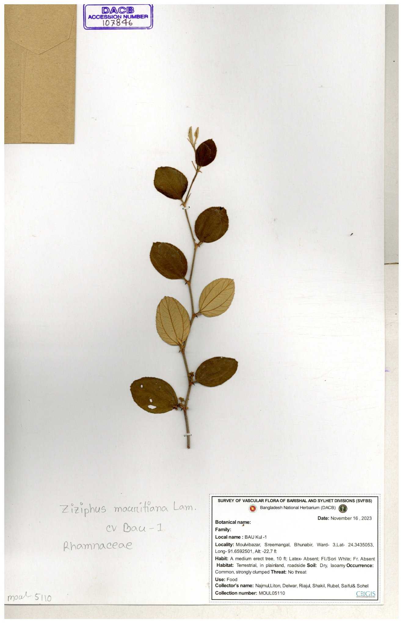 | 69858 | Rhamnaceae | Ziziphus Rugosus Lam. | Bonboroi | I Hossen, Ms. Islam & MR Miah | IH-4240 30-11--0001 |