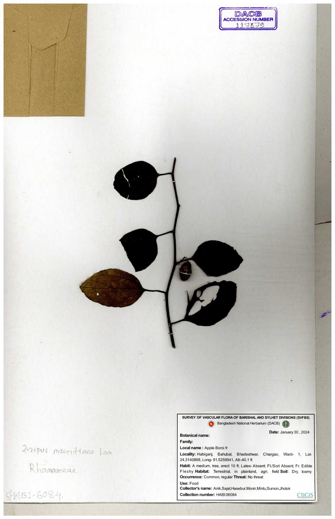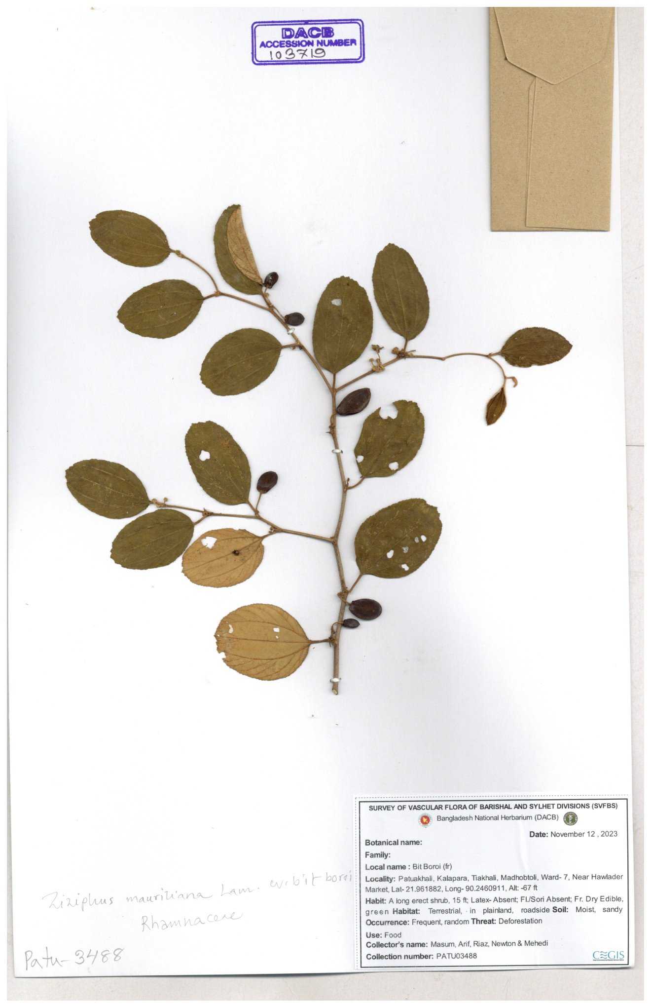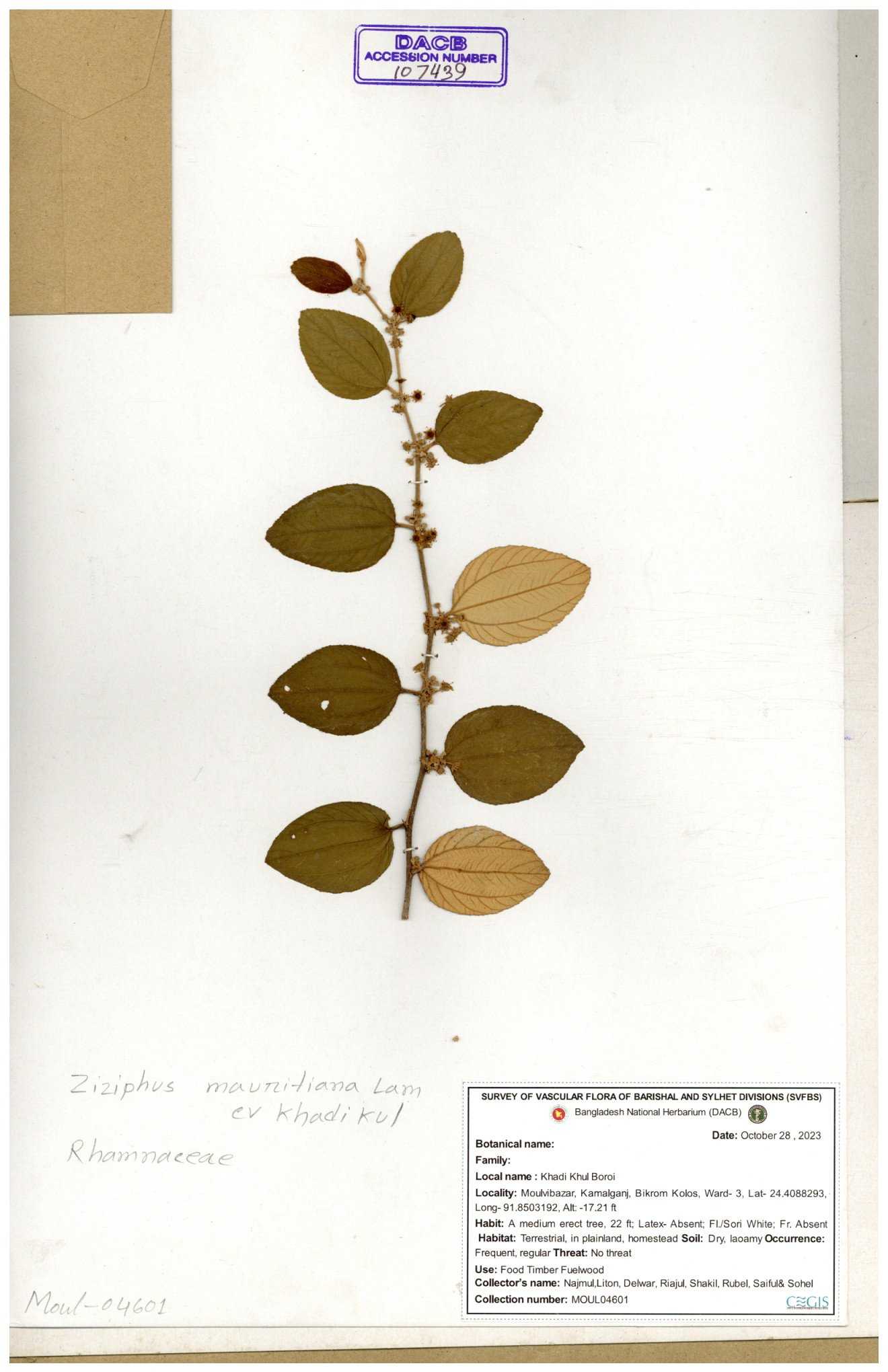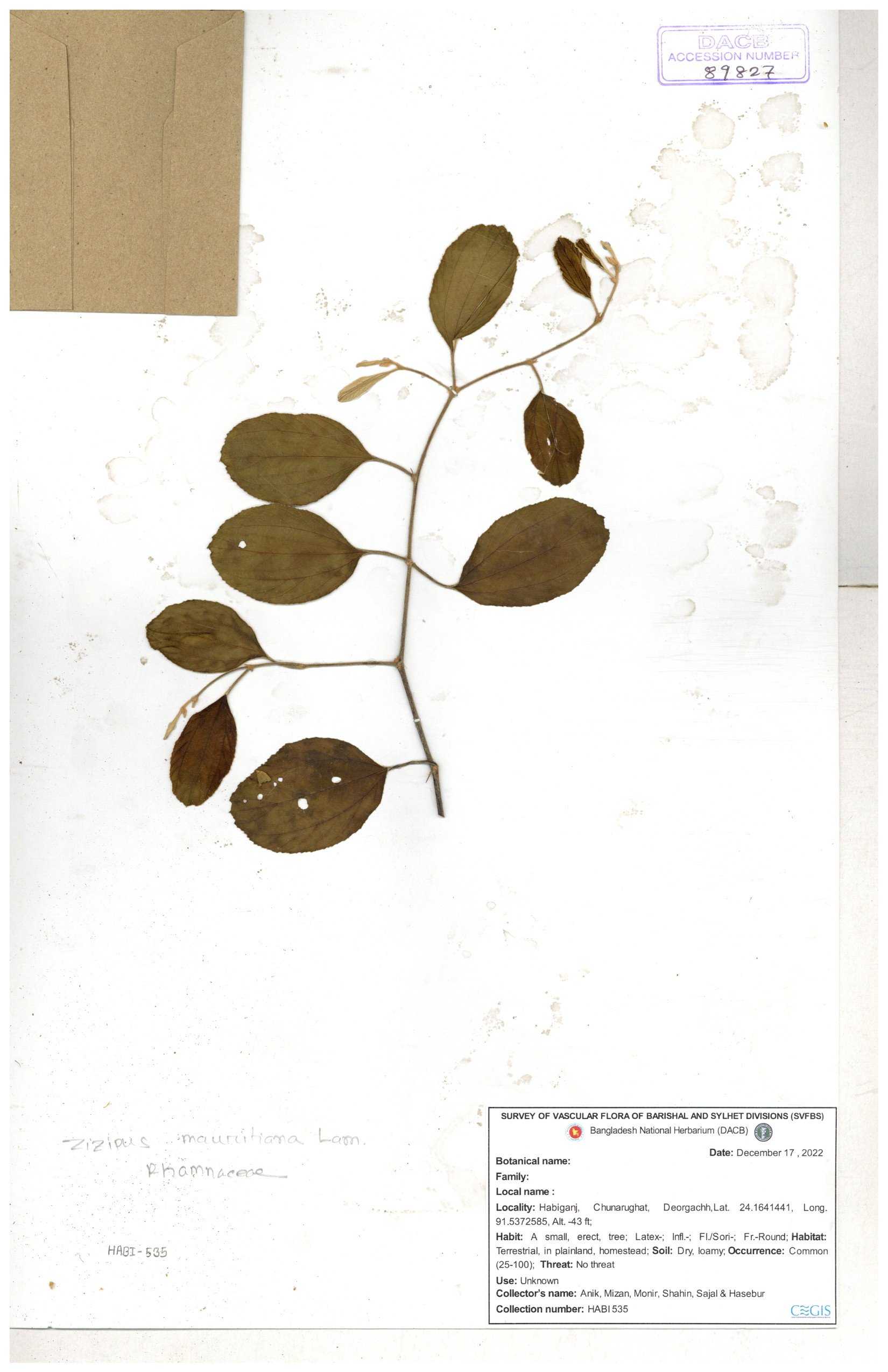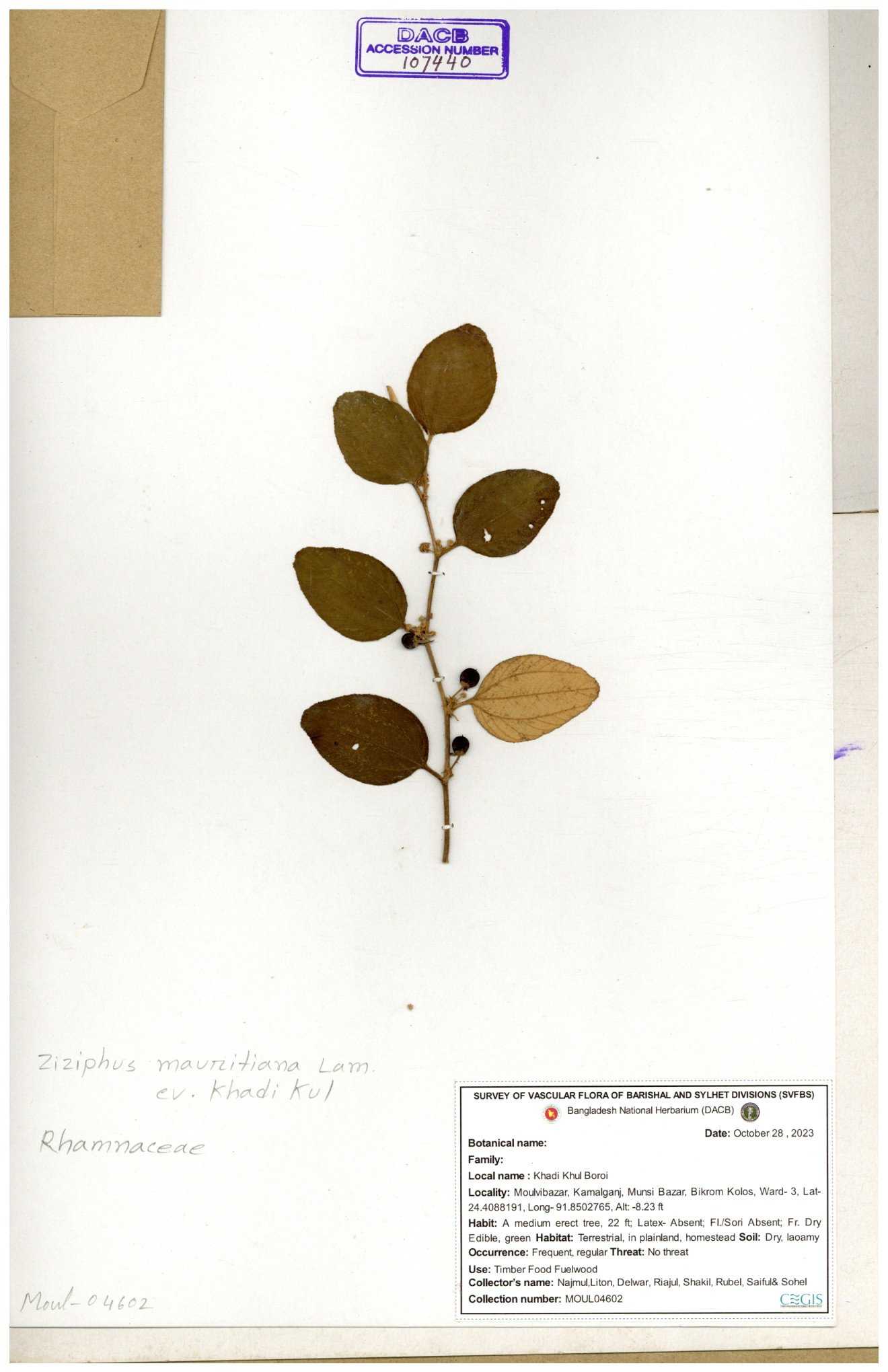 | 69858 | Rhamnaceae | Ziziphus Rugosus Lam. | Bonboroi | I Hossen, Ms. Islam & MR Miah | IH-4240 30-11--0001 |