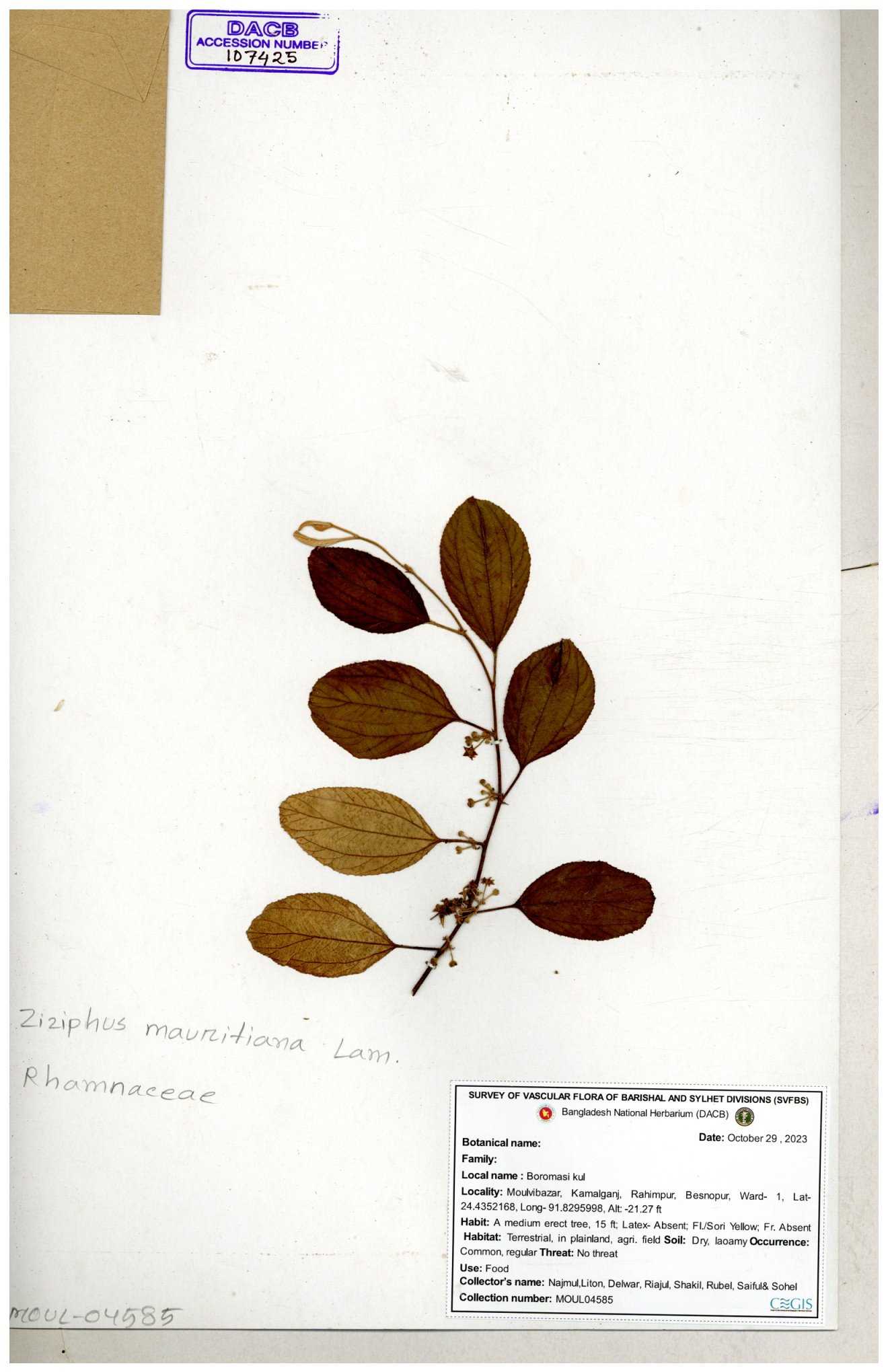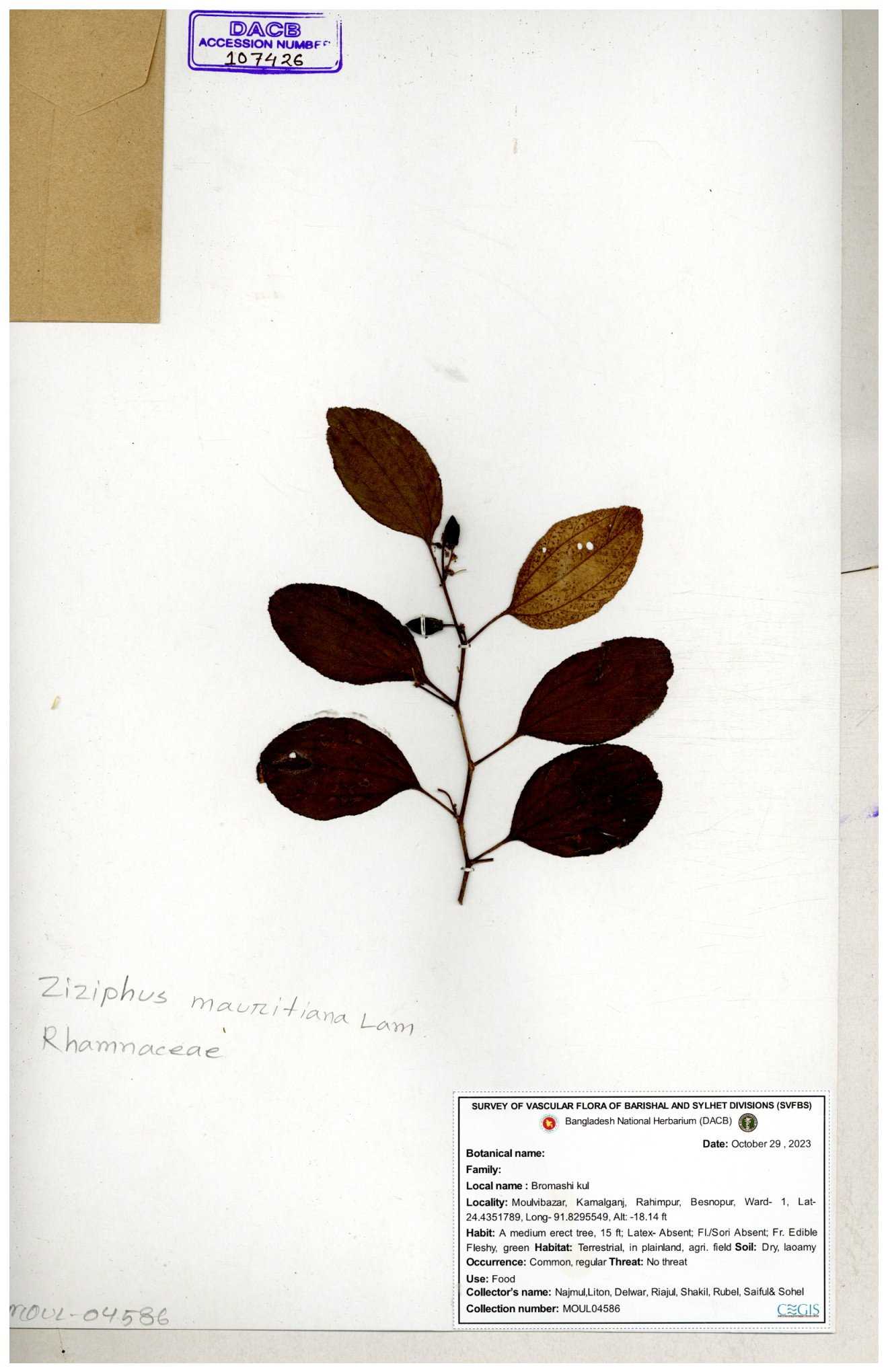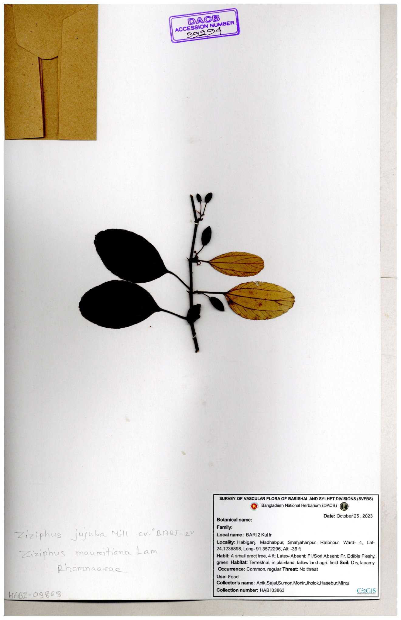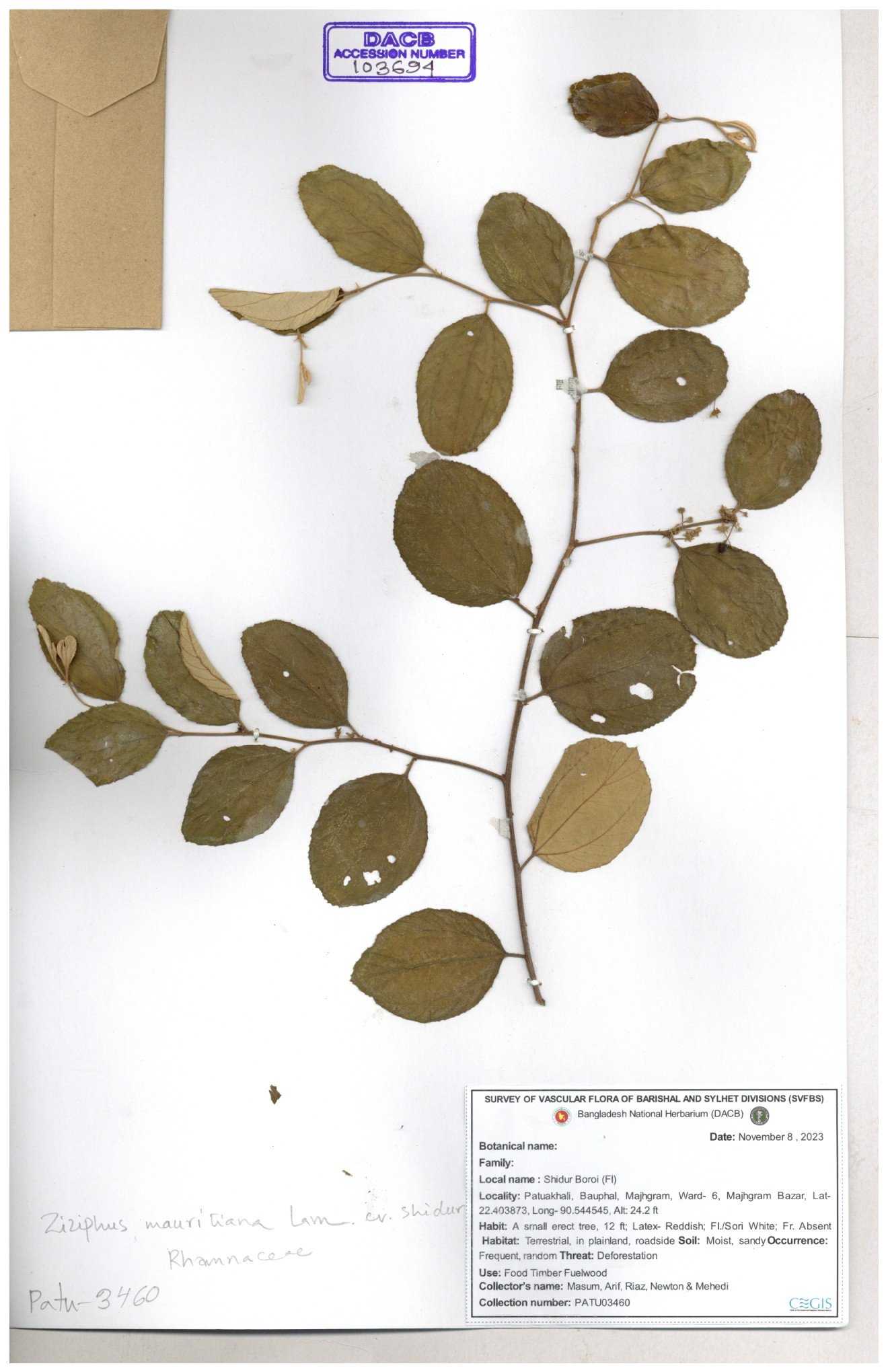 | 69858 | Rhamnaceae | Ziziphus Rugosus Lam. | Bonboroi | I Hossen, Ms. Islam & MR Miah | IH-4240 30-11--0001 |