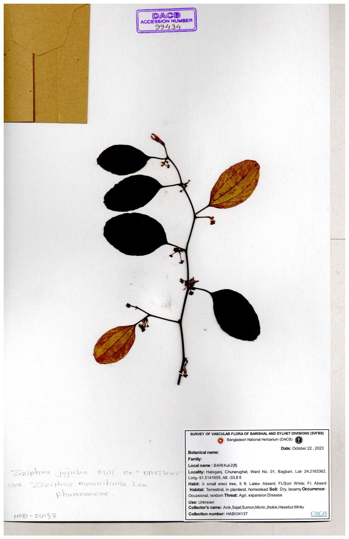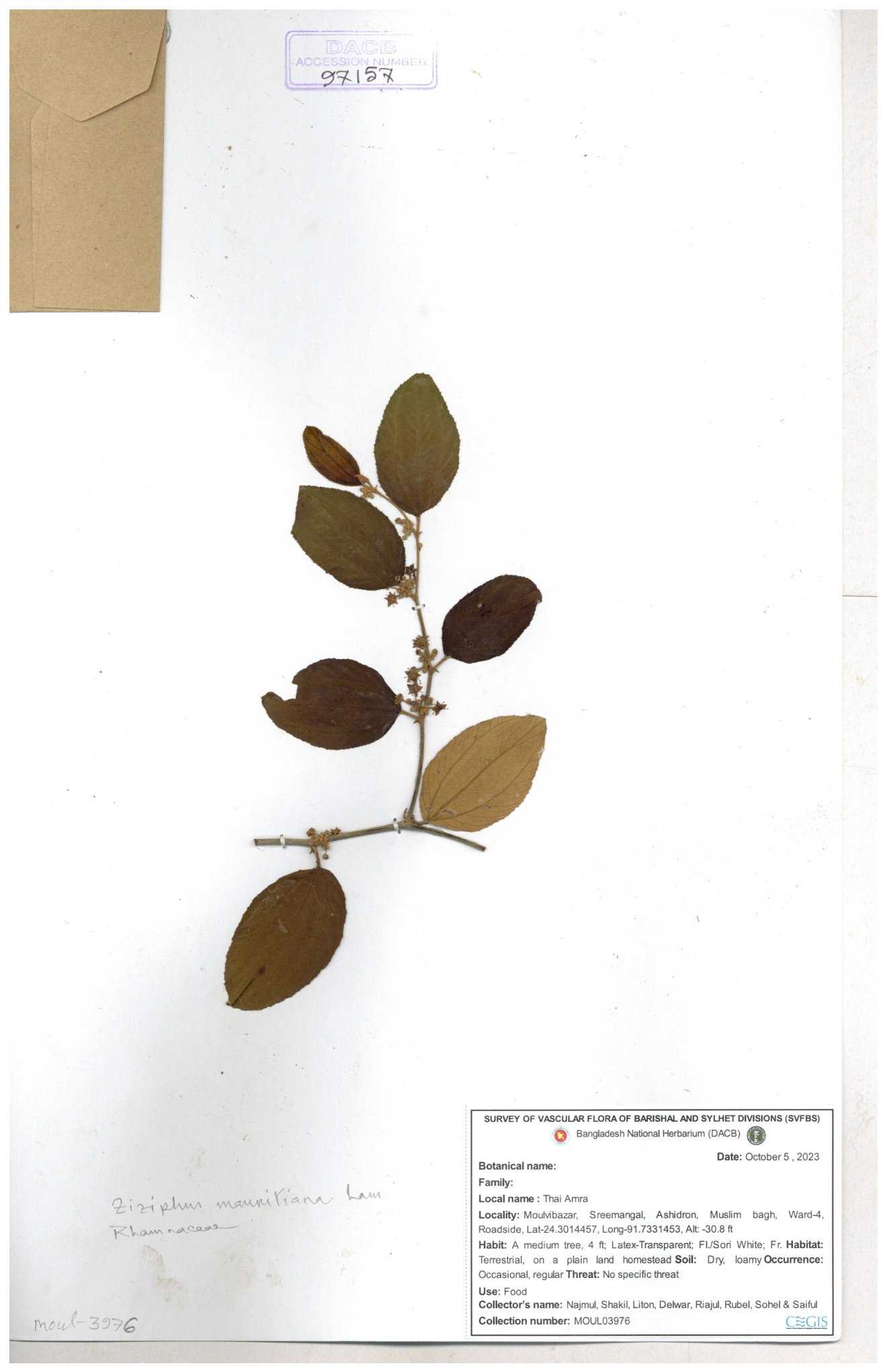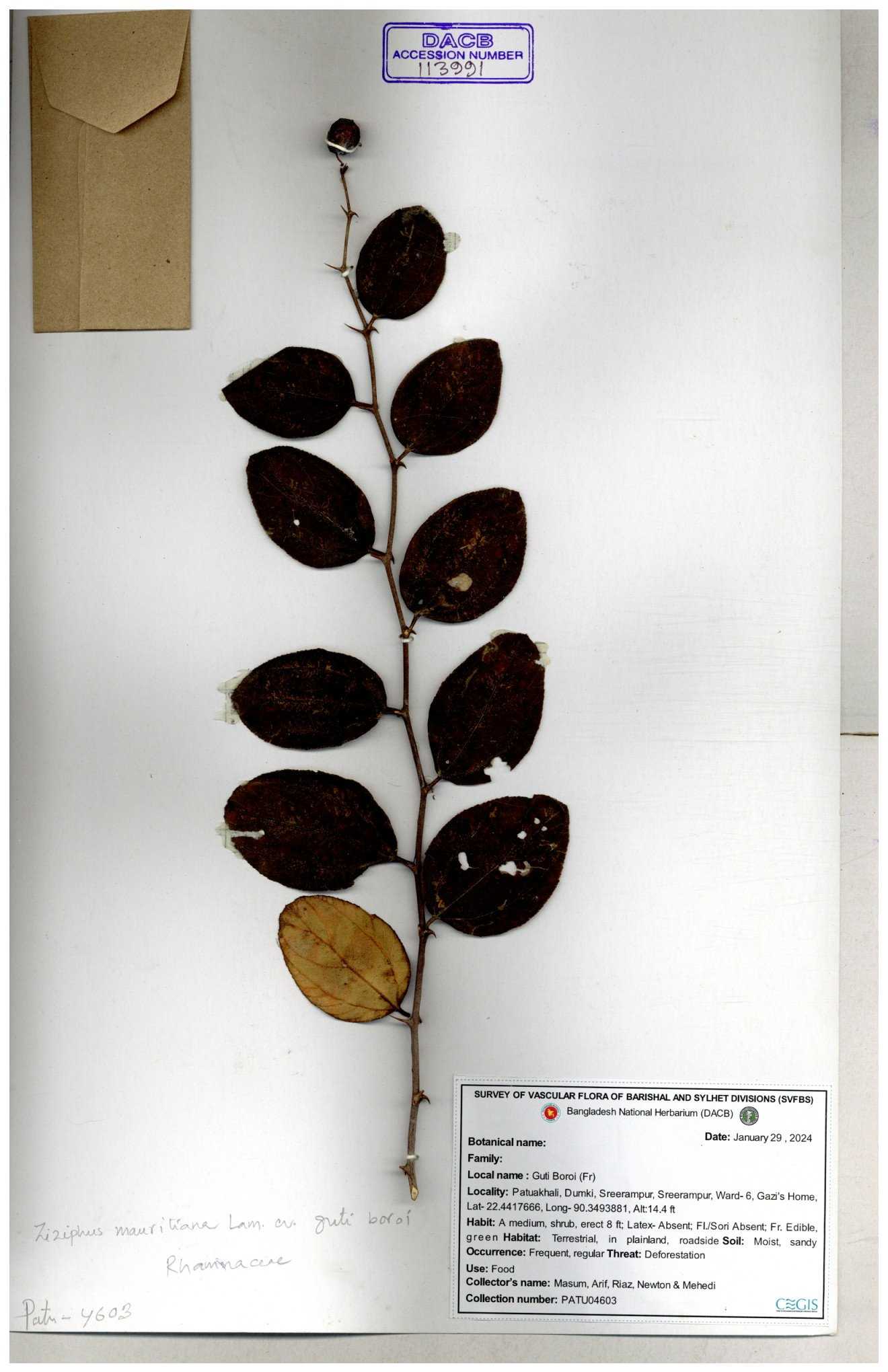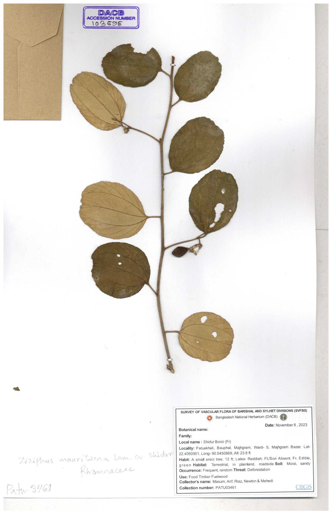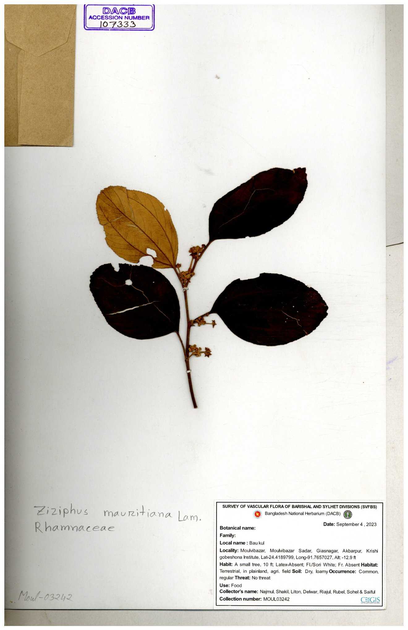 | 69858 | Rhamnaceae | Ziziphus Rugosus Lam. | Bonboroi | I Hossen, Ms. Islam & MR Miah | IH-4240 30-11--0001 |
