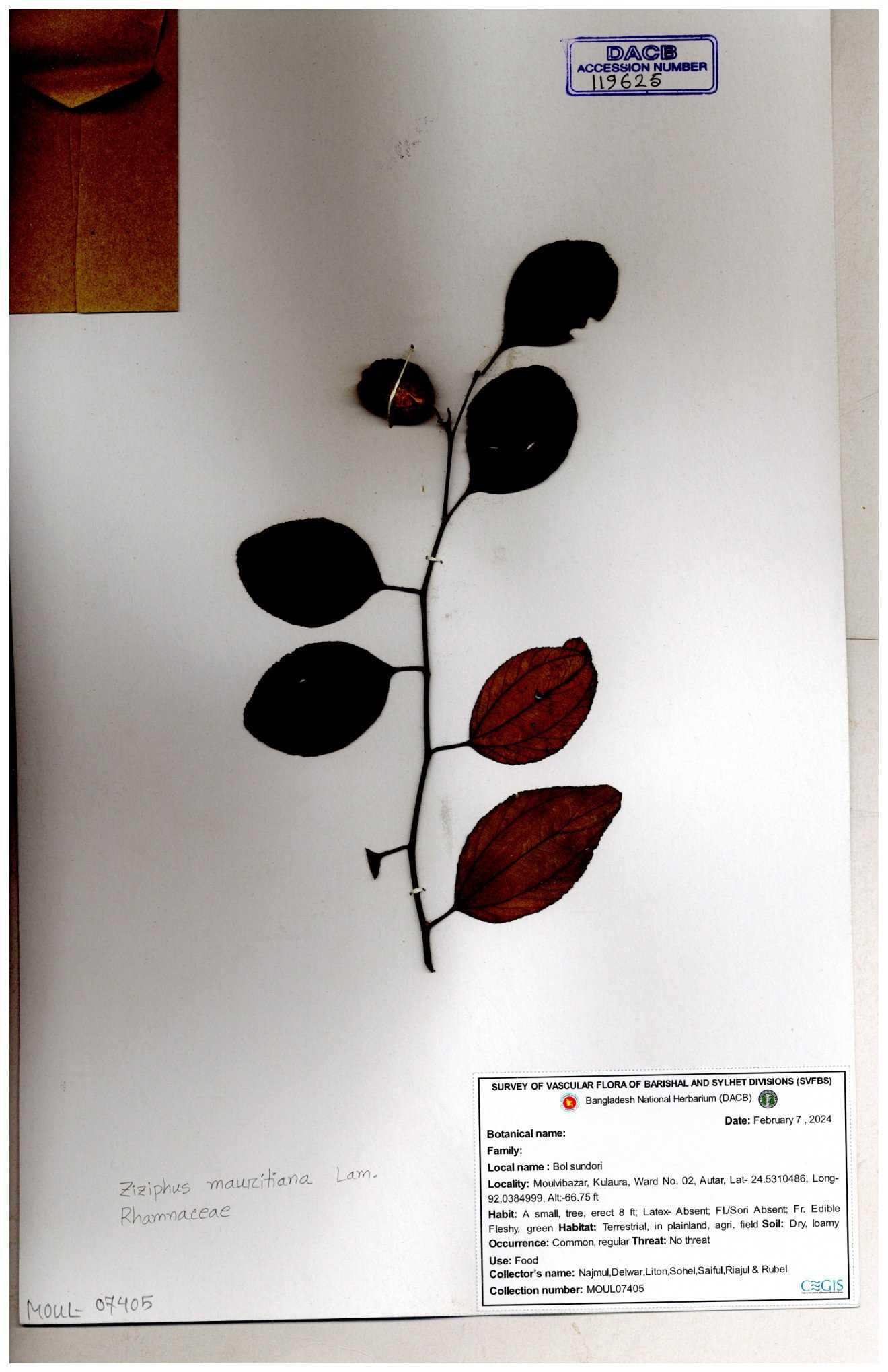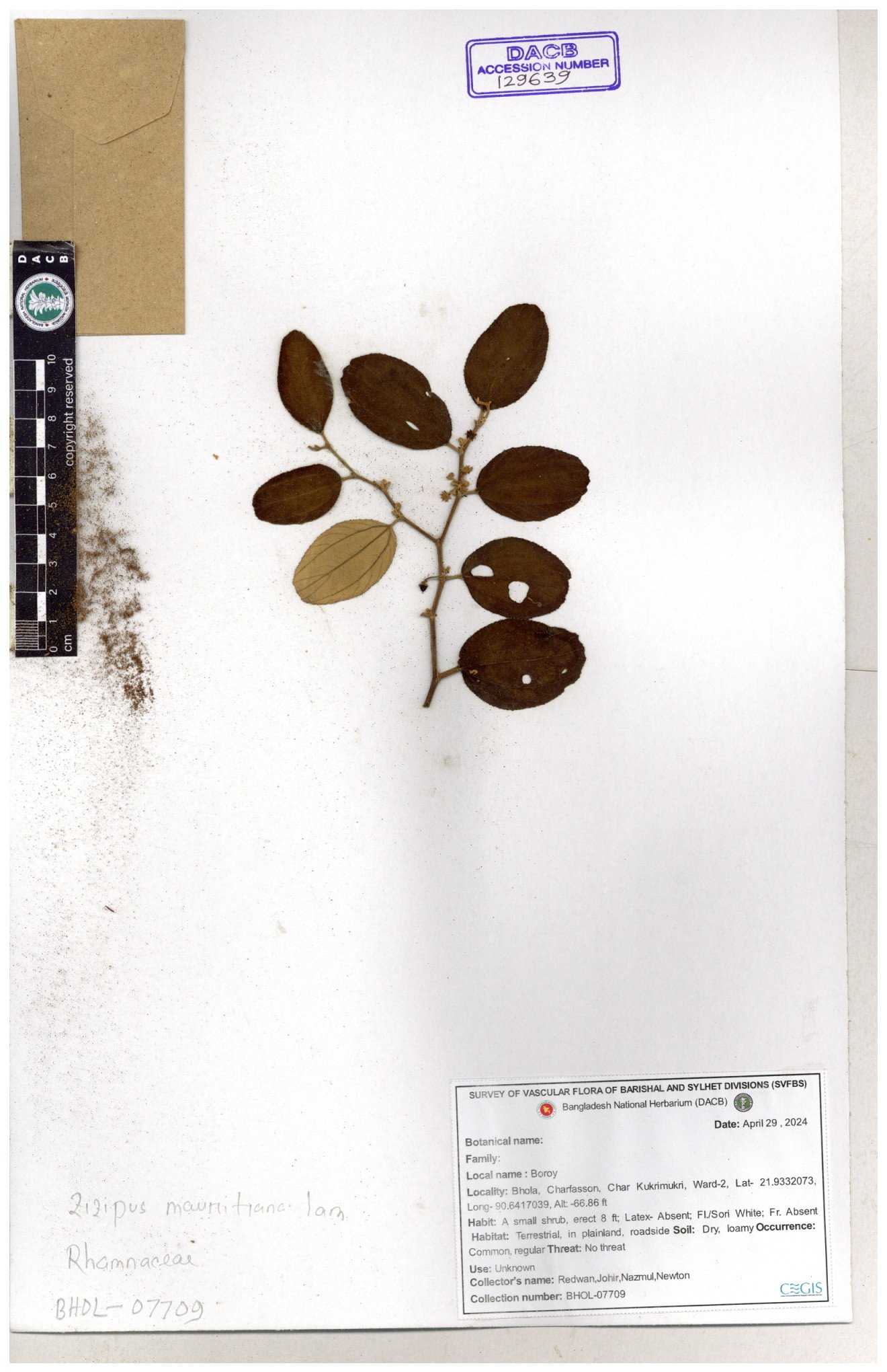 | 69859 | Rhamnaceae | Ziziphus mauritiana Lamk | Boroi | I Hossen, Ms. Islam & MR Miah | IH-2916 04-01-2017 |
