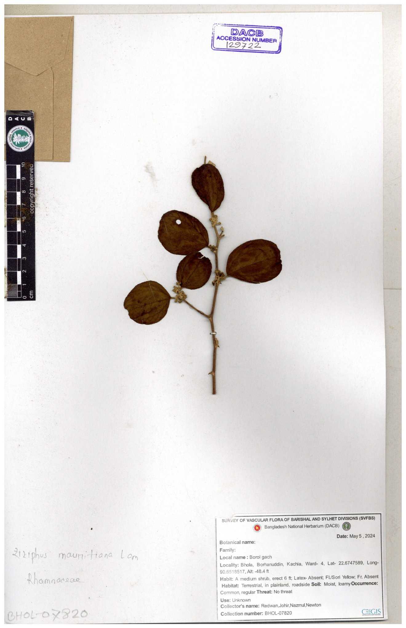 | 64535 | Rhamnaceae | Ziziphus funiculosa | Khandakar Kamrul Islam | KKI-2861 11-05-2019 |
