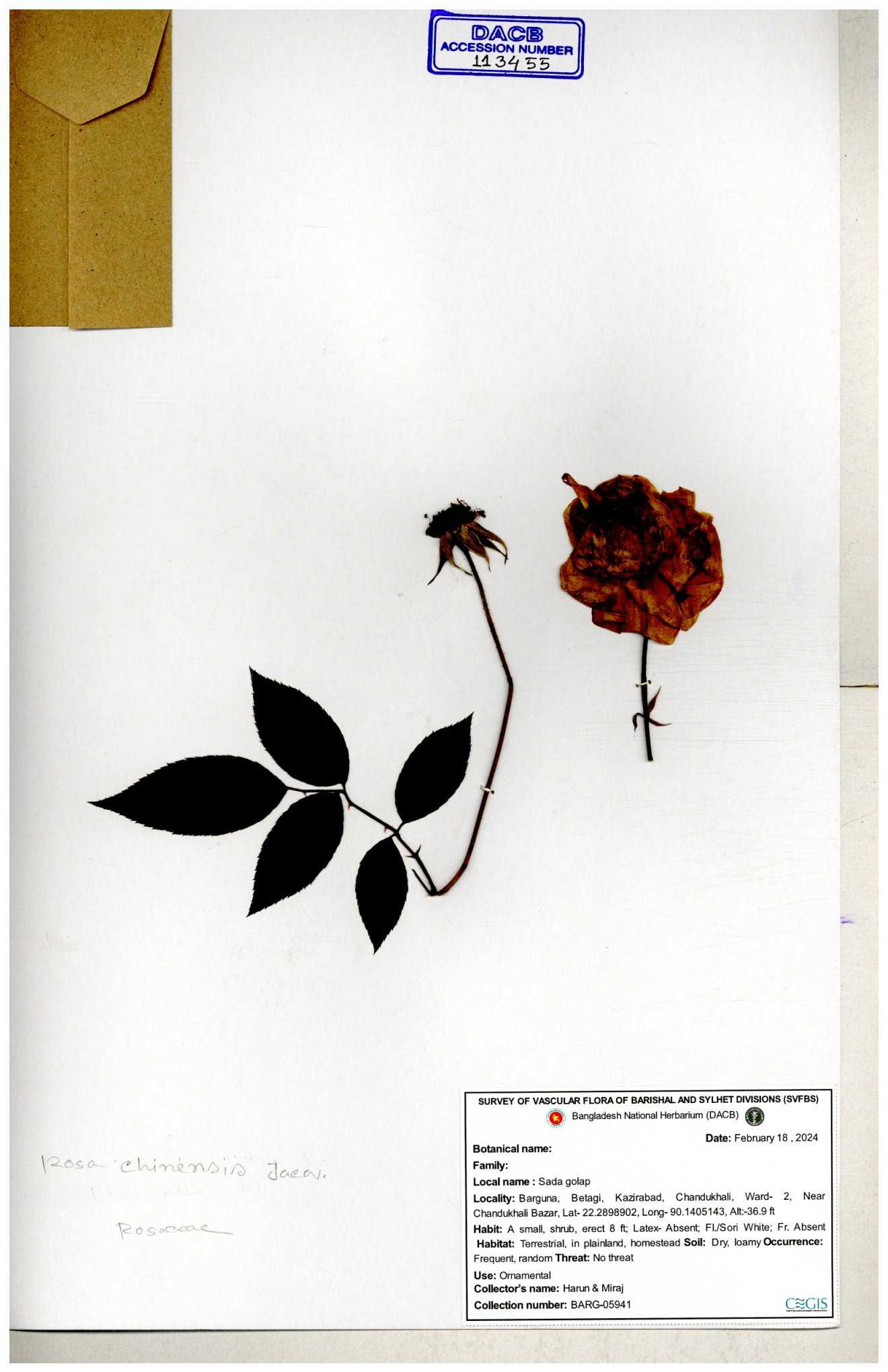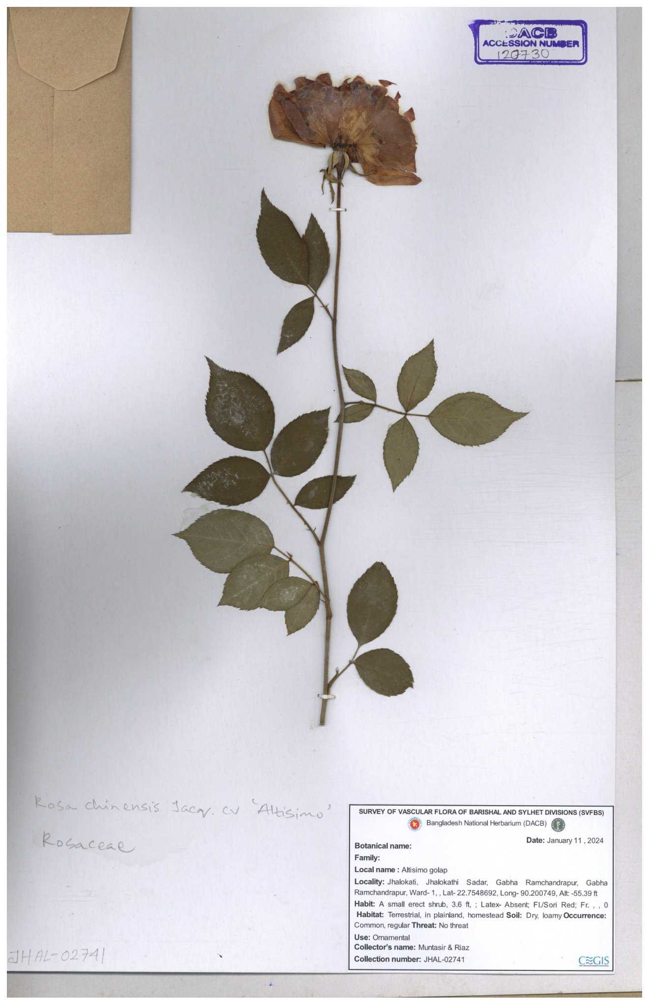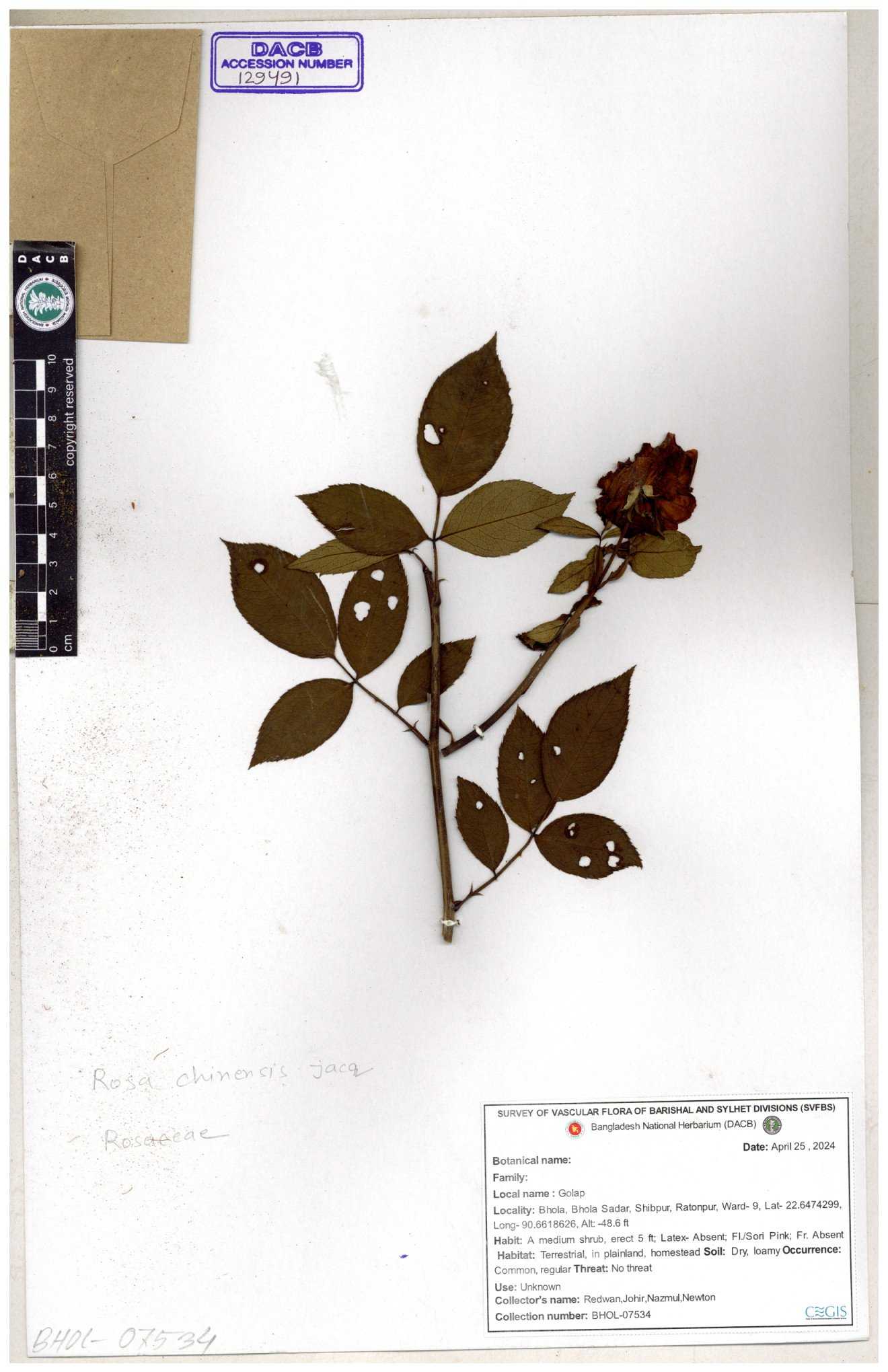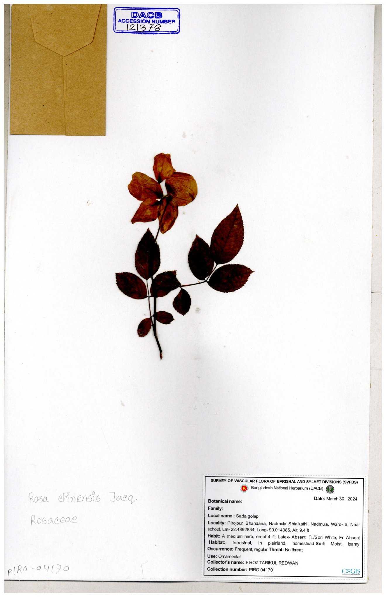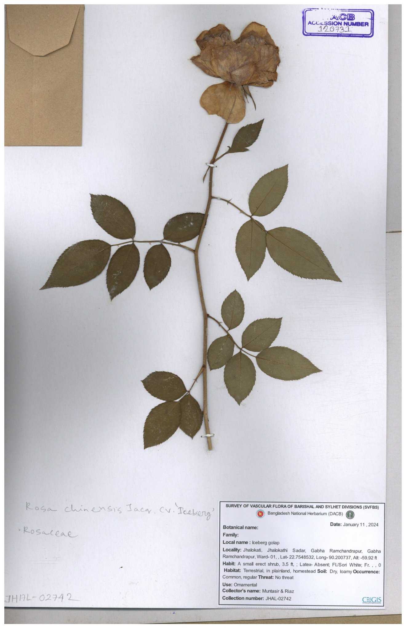 | 8452 | Rosaceae | Rosa indica | Rezia Khatun et al | RK. 490 15-02-1989 |