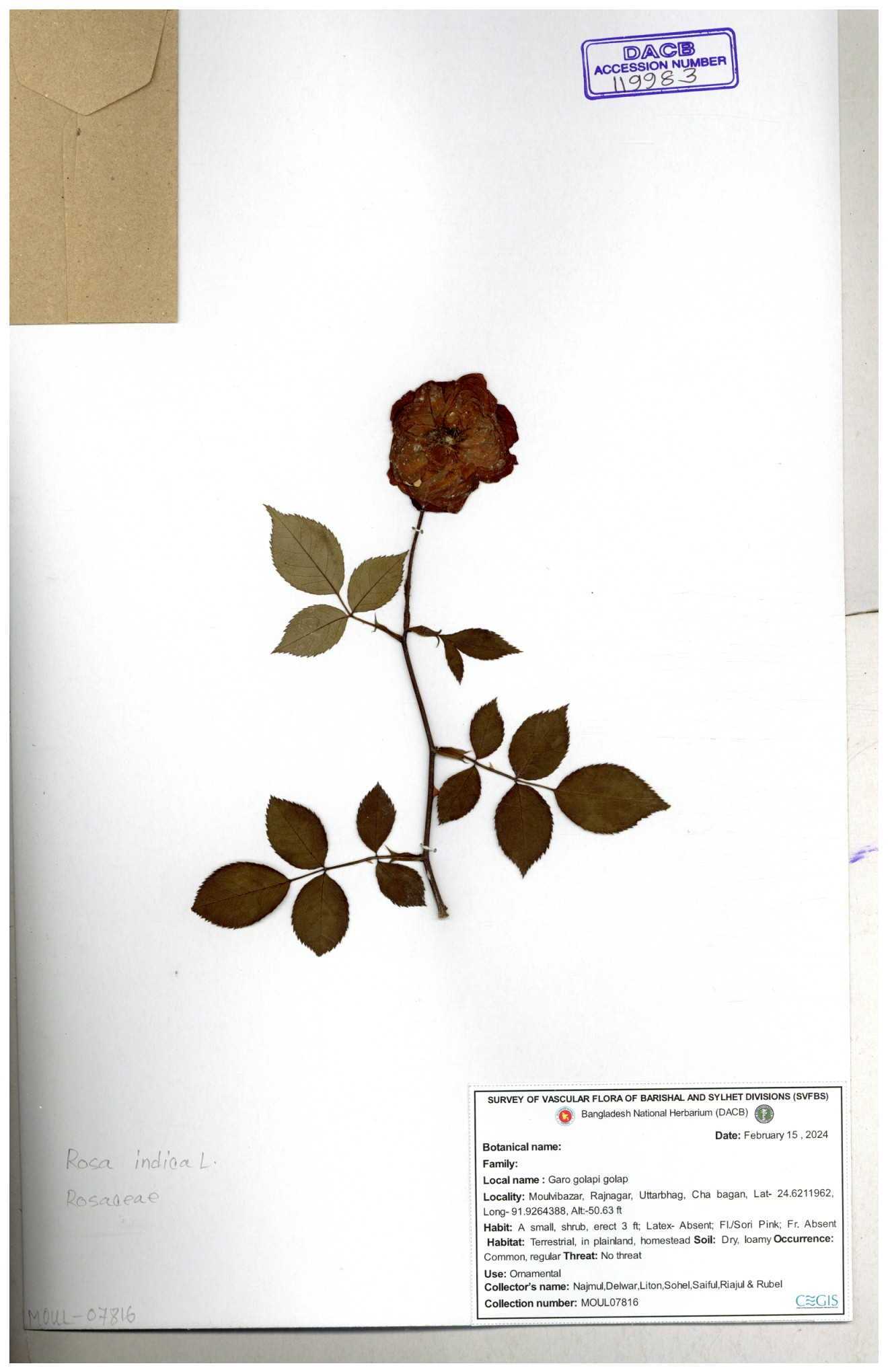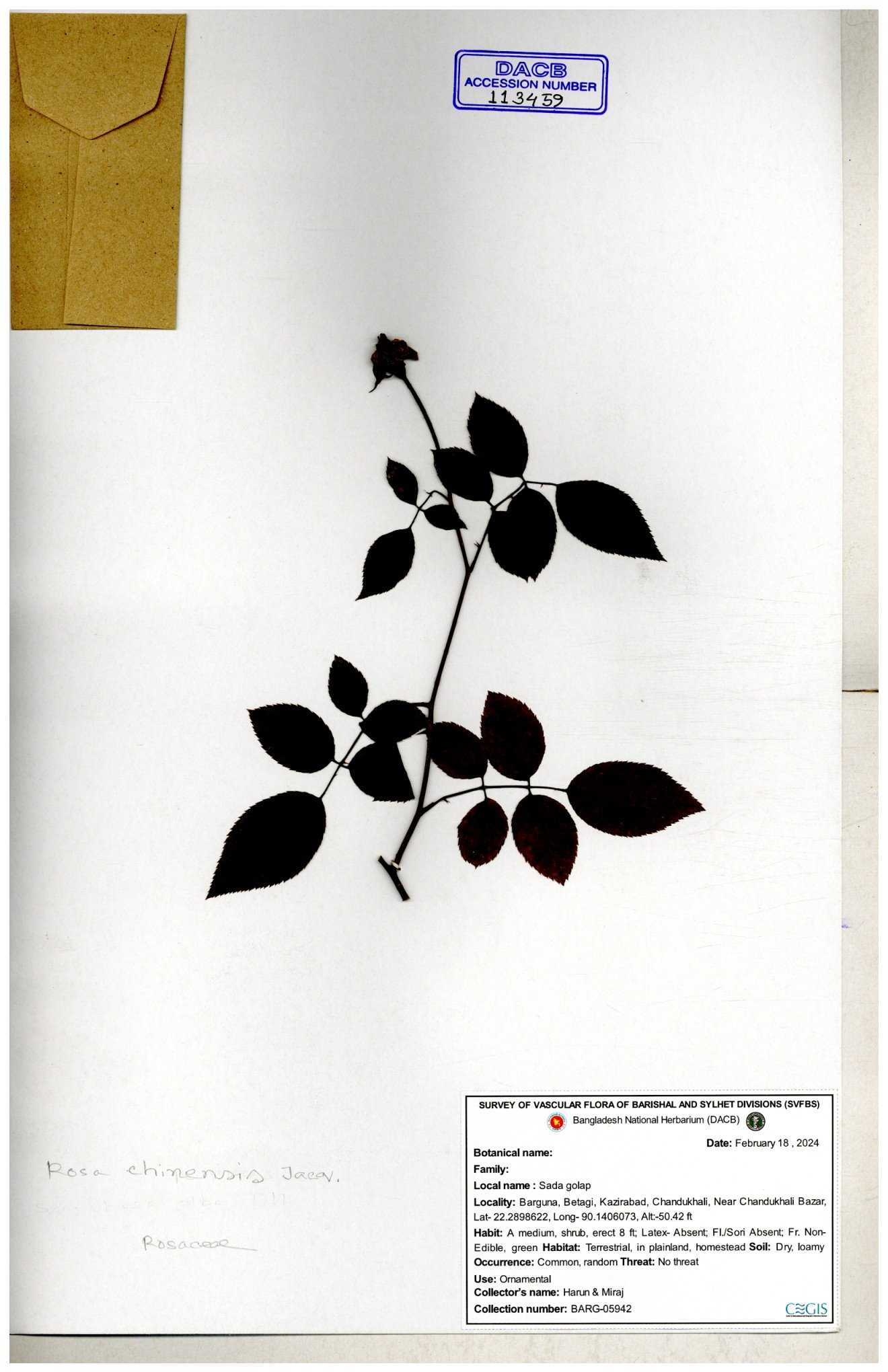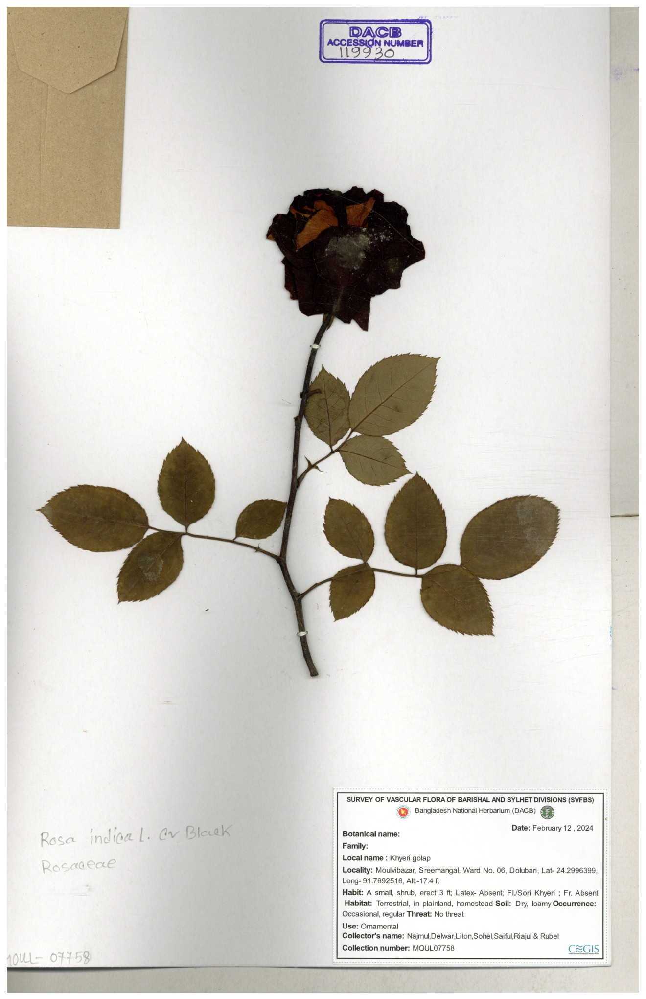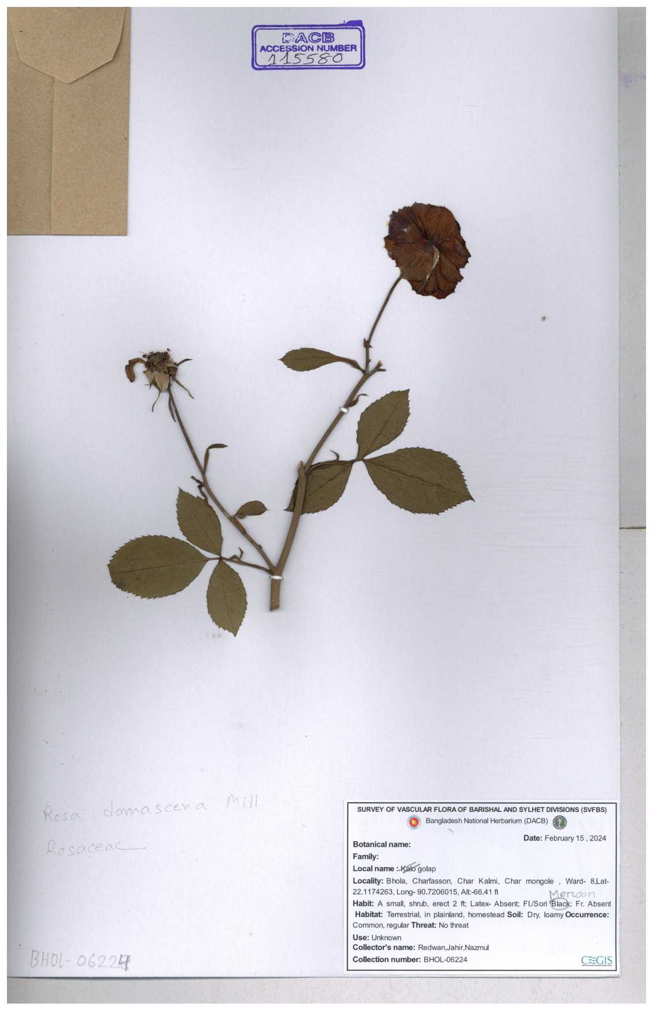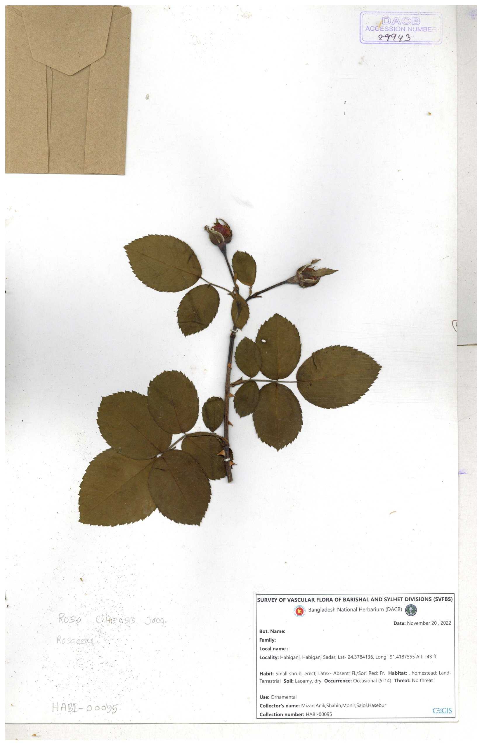 | 8450 | Rosaceae | Rosa indica | Rezia Khatun et al | RK. 489 15-02-1989 |