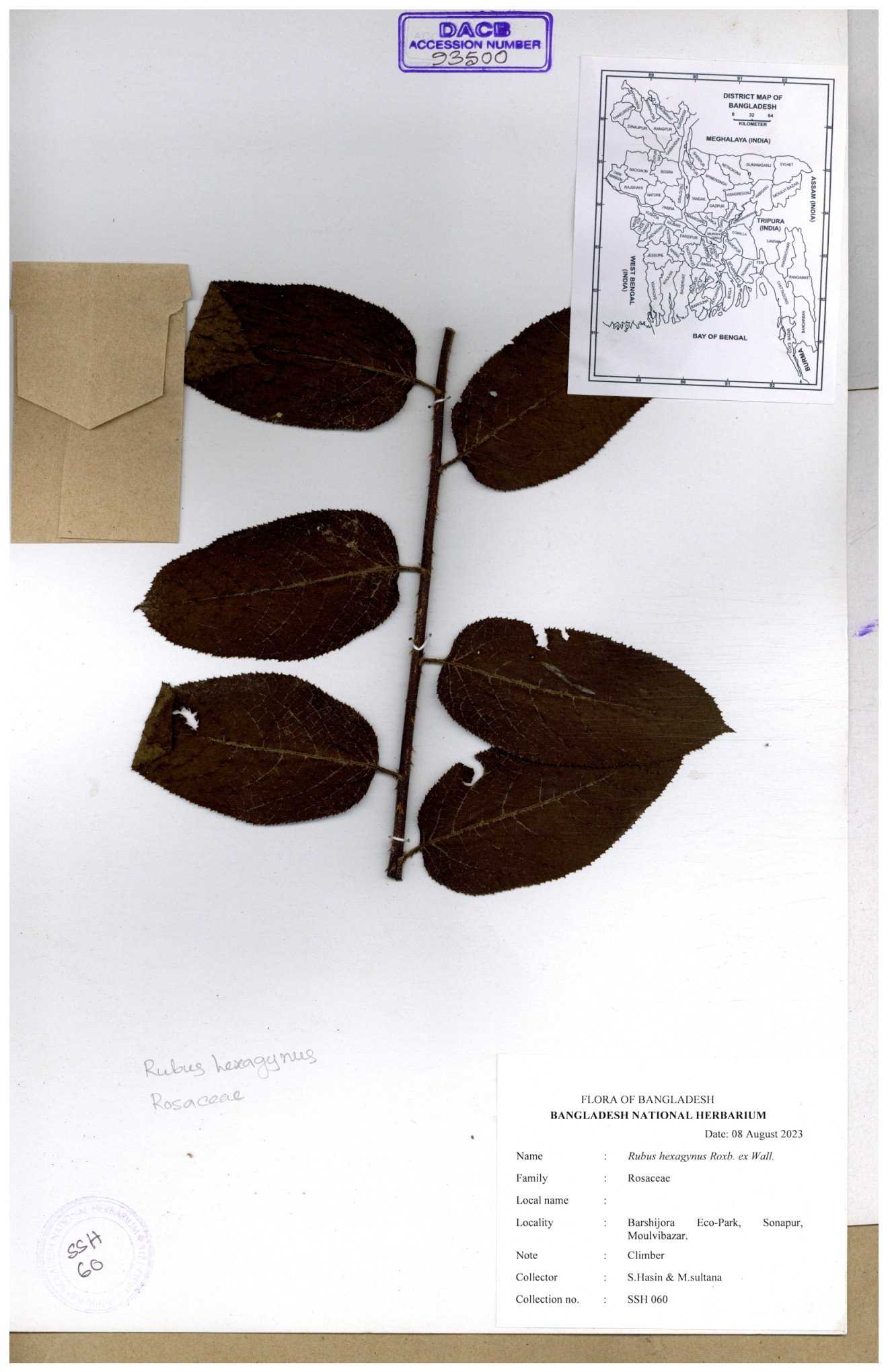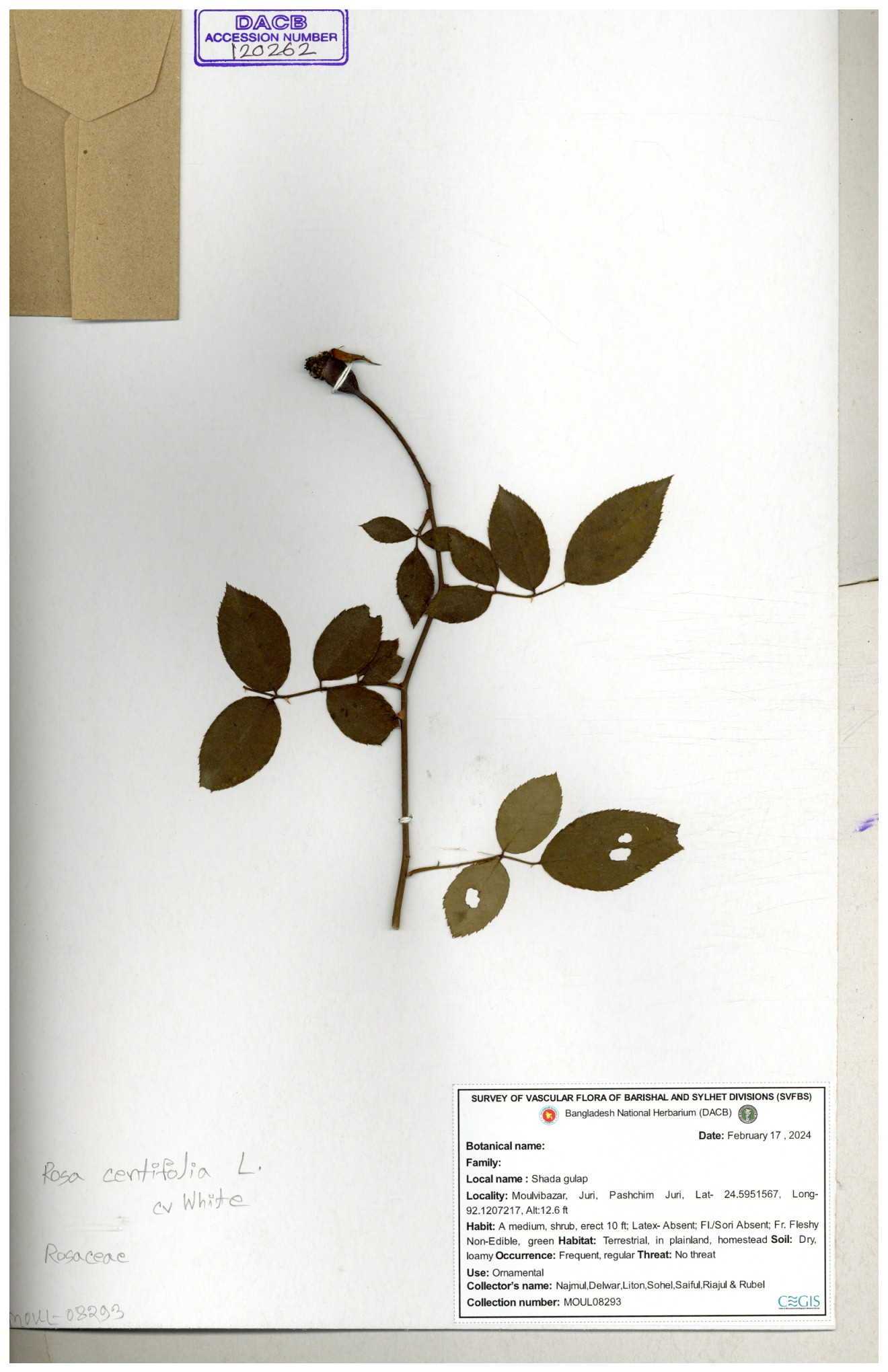| 8453 | Rosaceae | Rosa sp. | Rezia Khatun et al | R. 478 15-02-1989 |