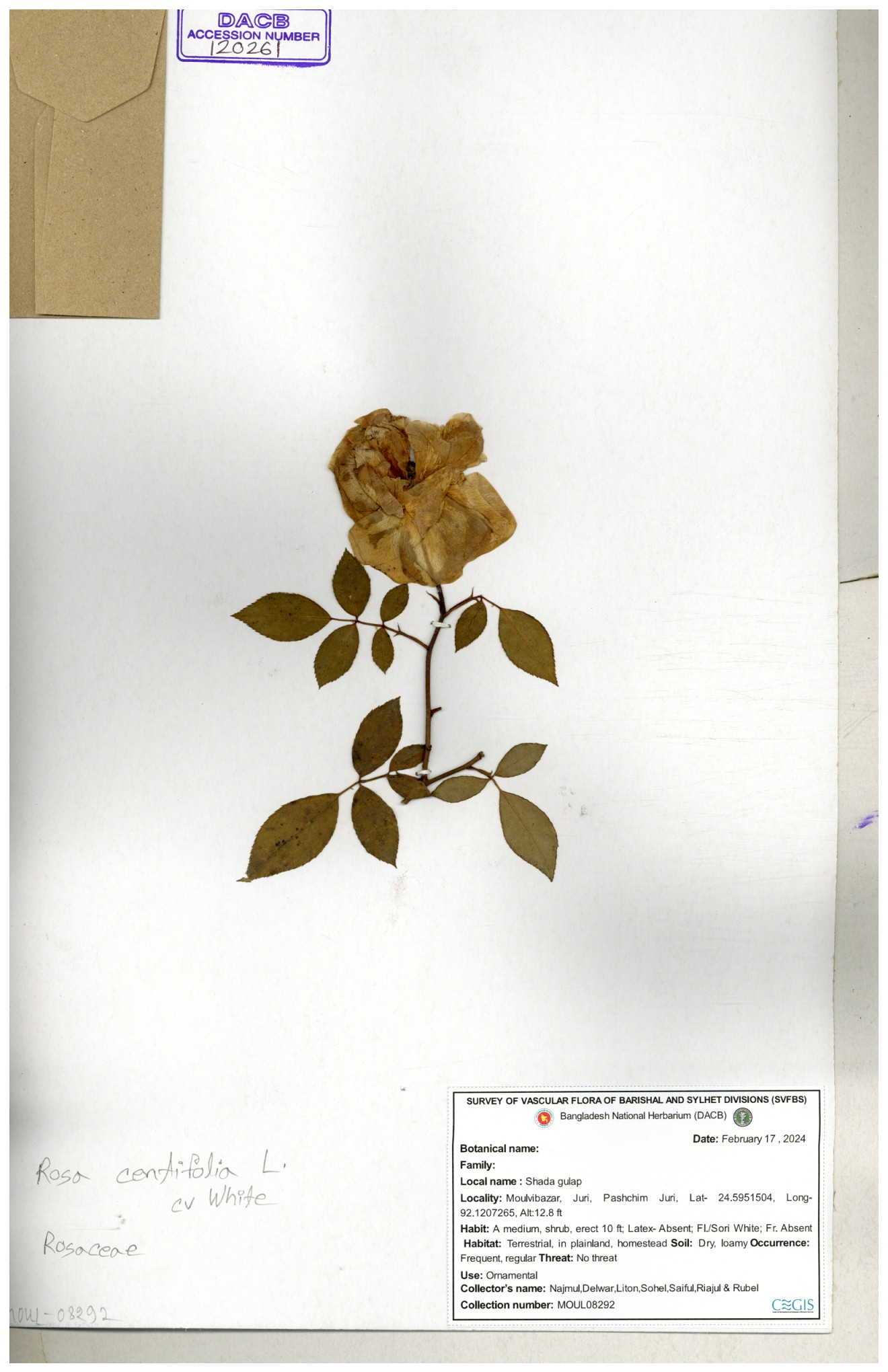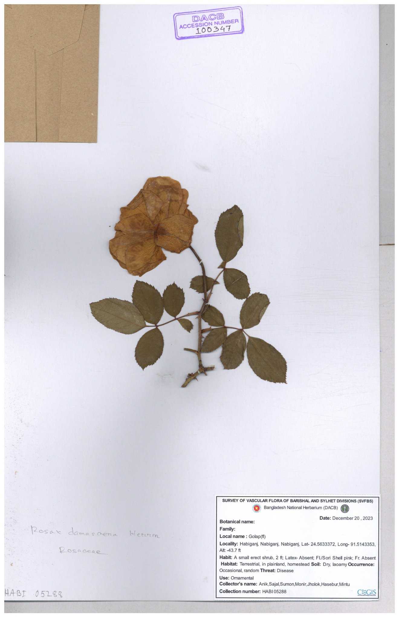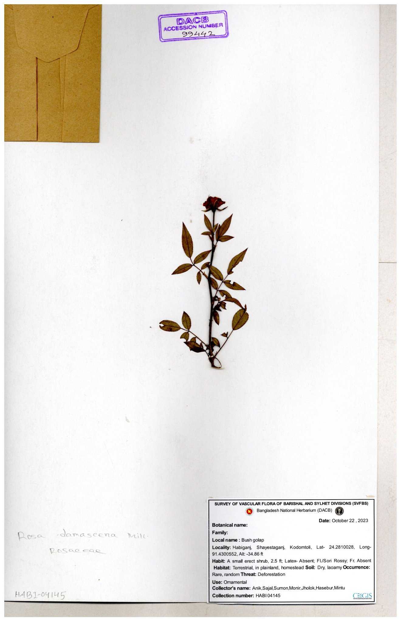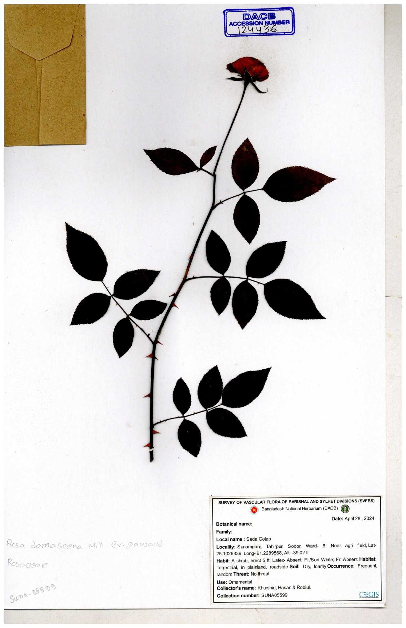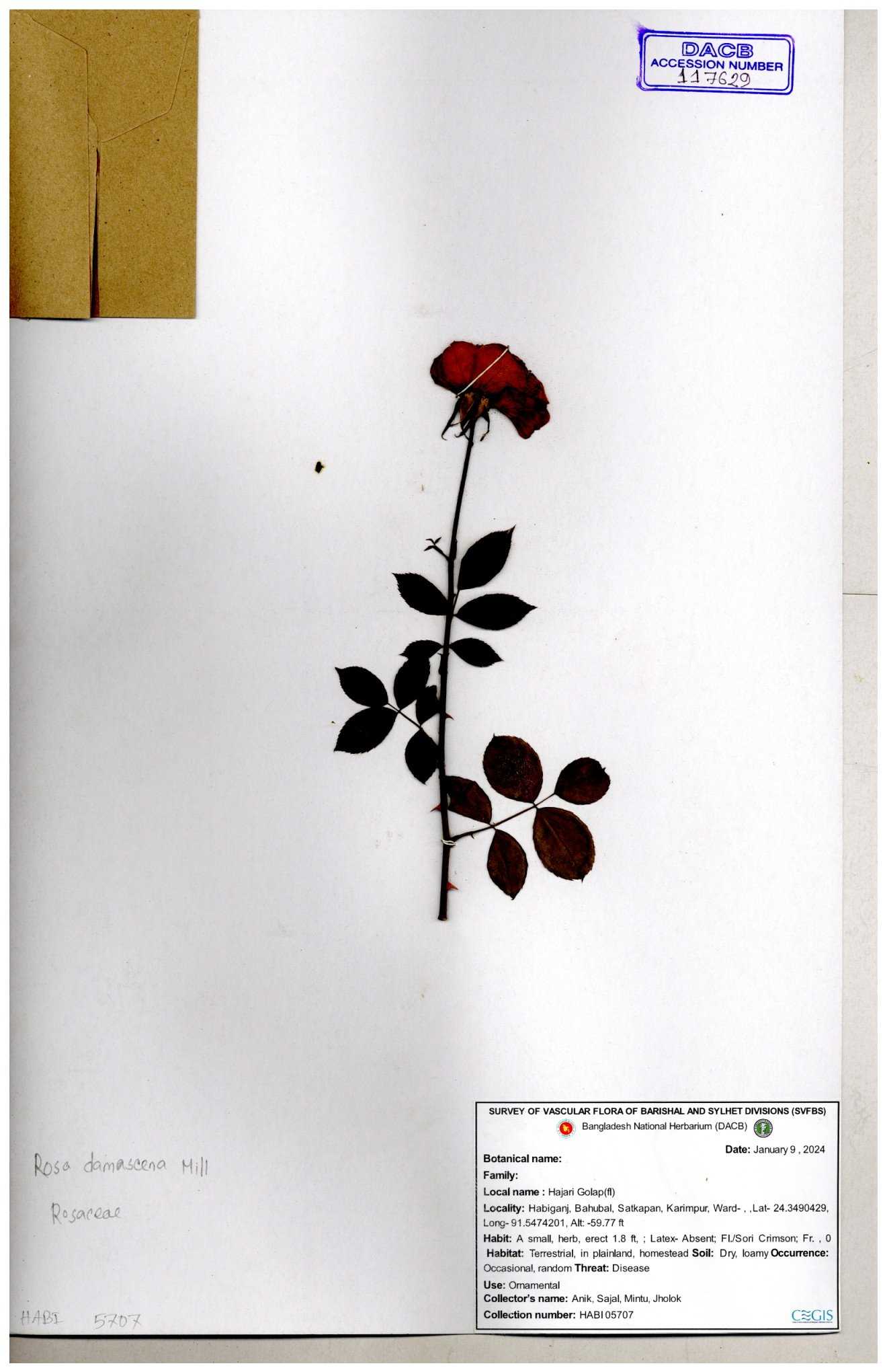 | 39426 | Rosaceae | Rosa damascema Mill | Golap | Sarder Nasir Uddin | N-2517 22-06-2004 |