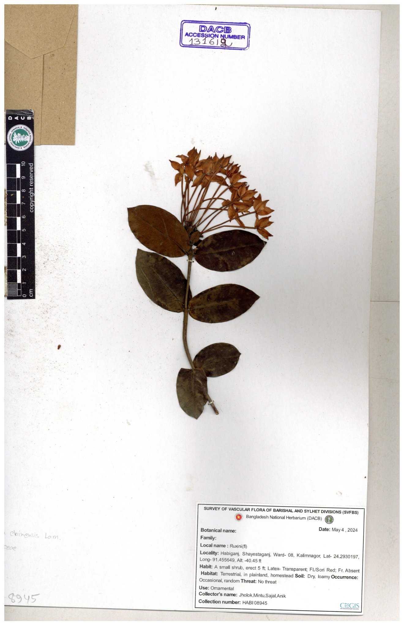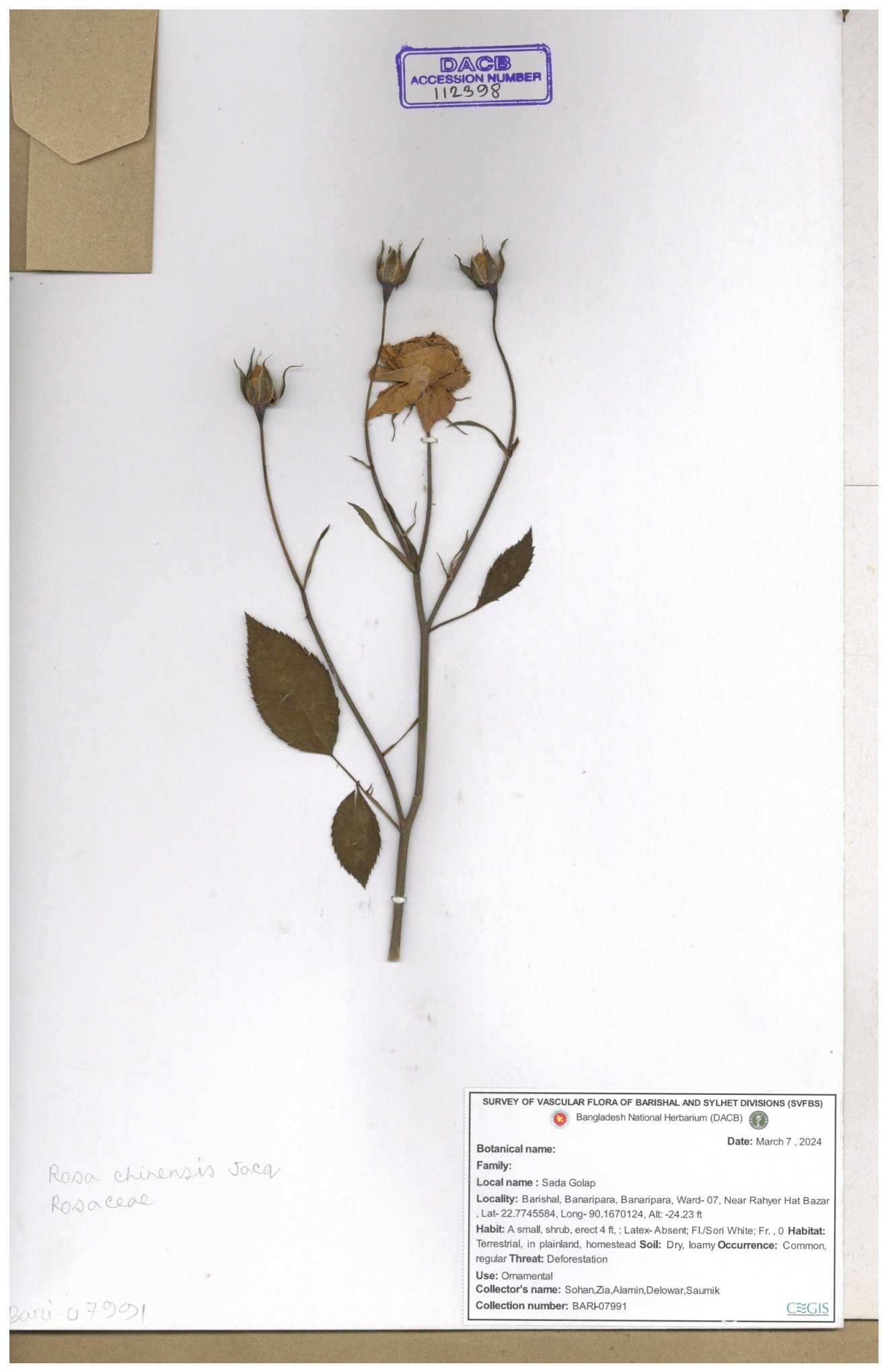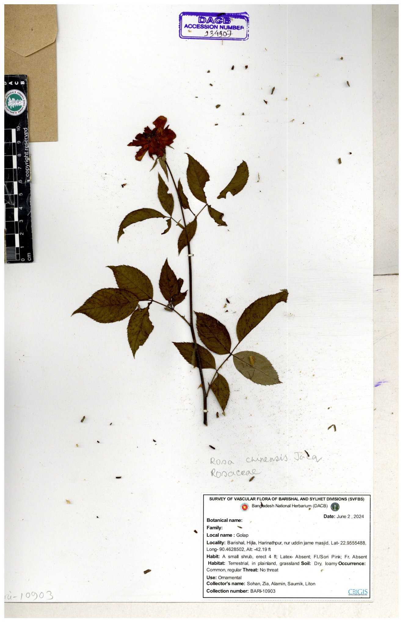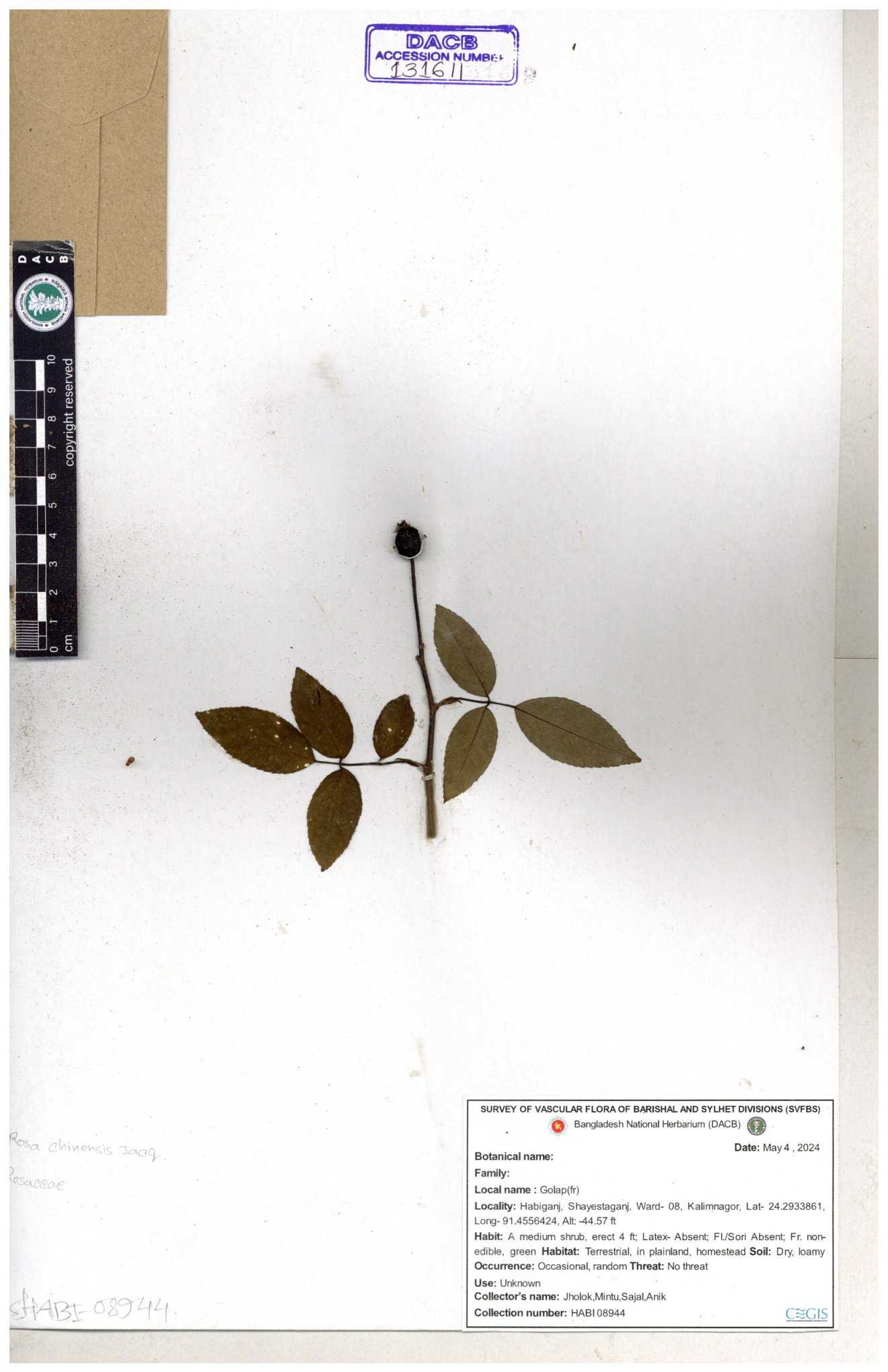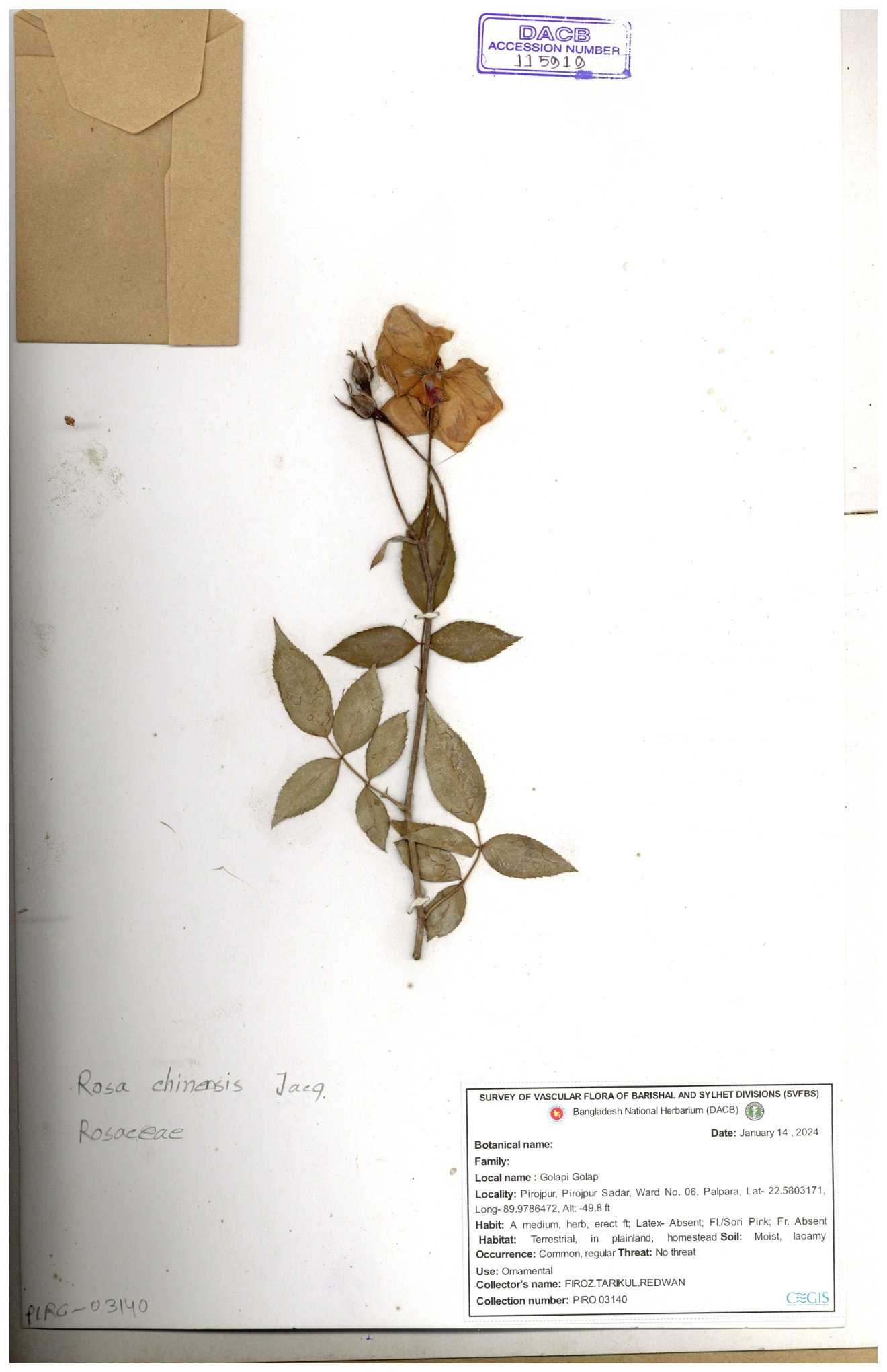 | 68752 | Rosaceae | Rosa chinensis | I Hossen et al | IH-661 04-10-2016 |