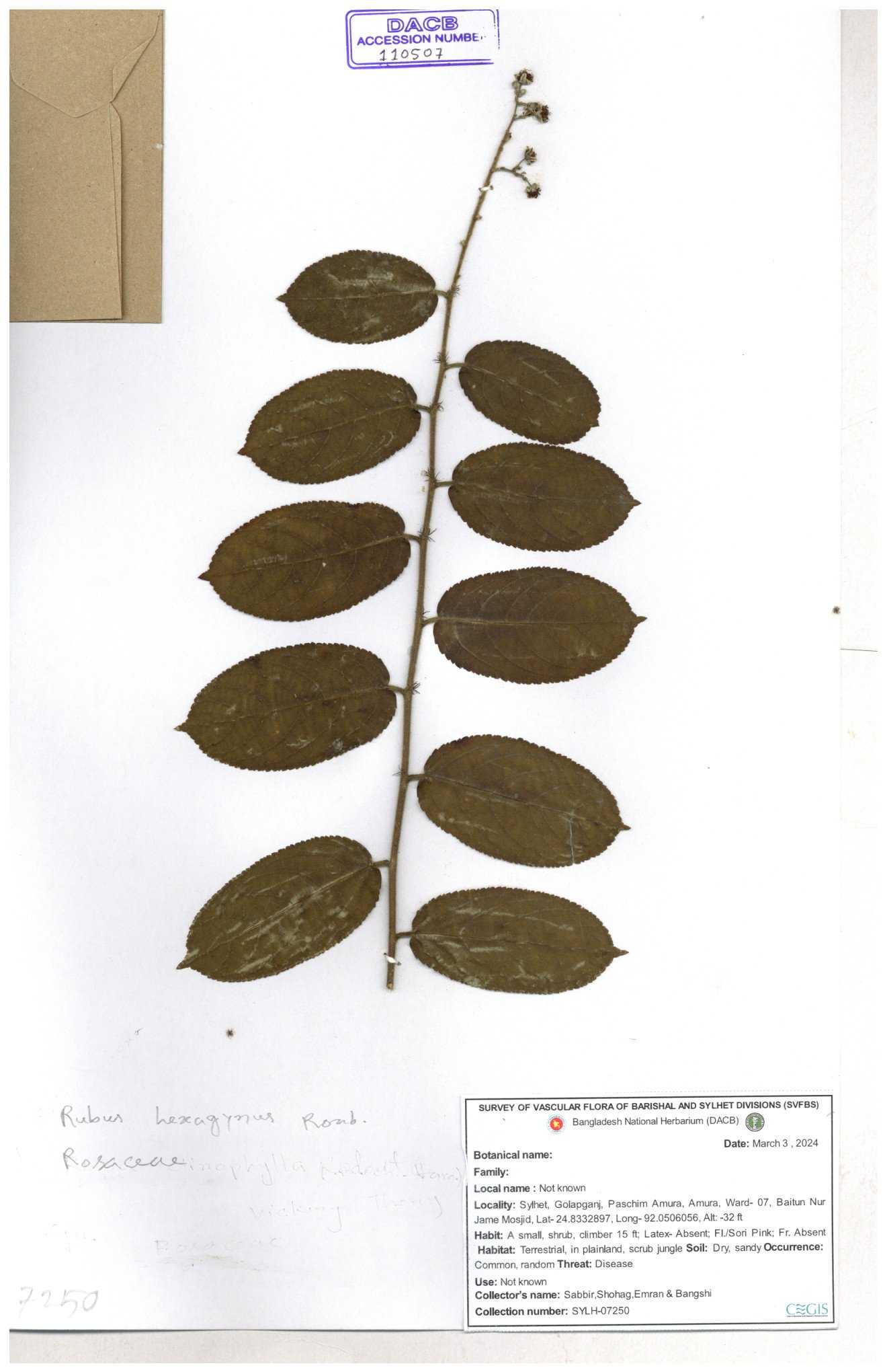 Paindu Forest range, Rawangchari, Bandarban, Bangladesh. | Thorny shrub, leaflets elliptic, dentate, flowers pink, from homestead, Rare. |