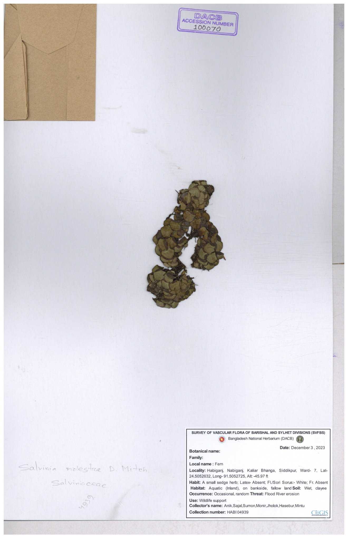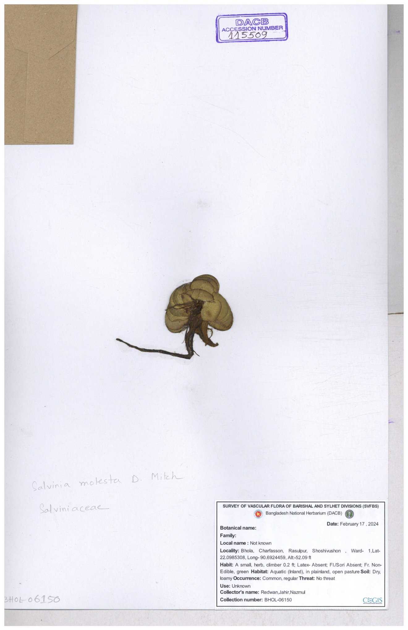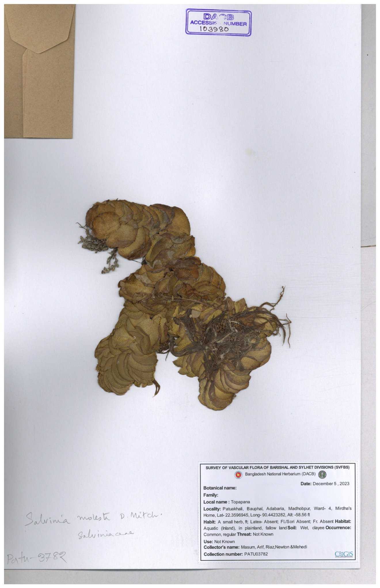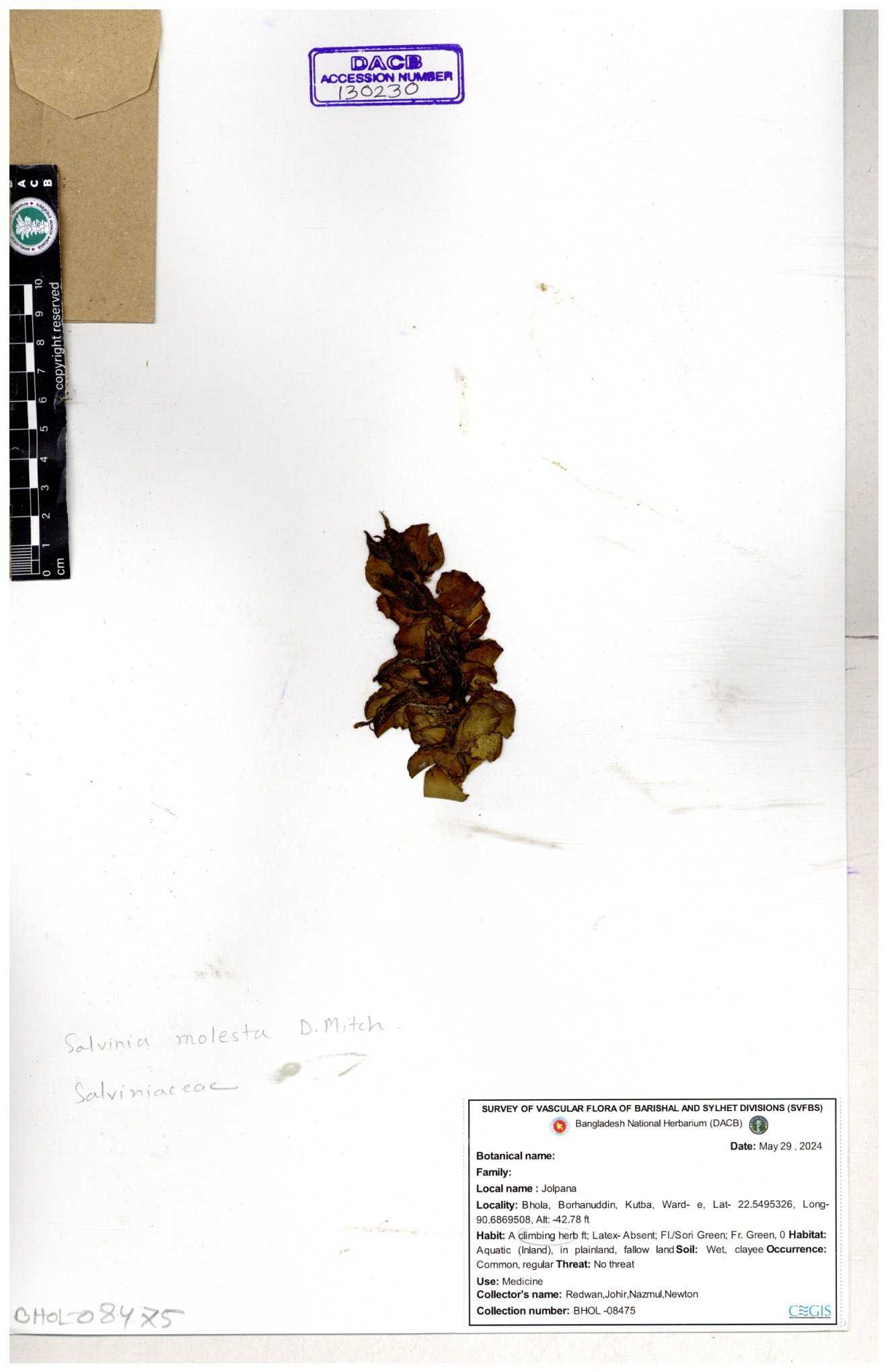 | 66510 | Salviniaceae | Salvinia molesta | Mohammad Amdadul Hoque | MAH-66 30-11--0001 |