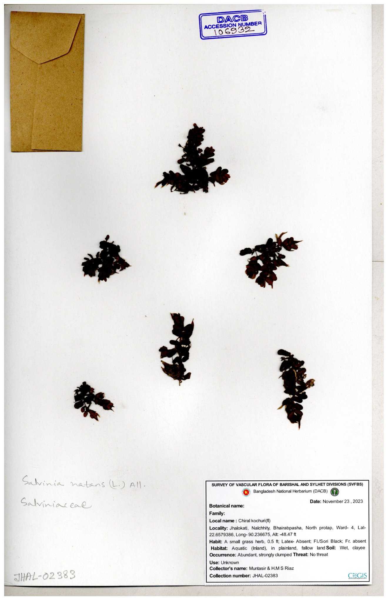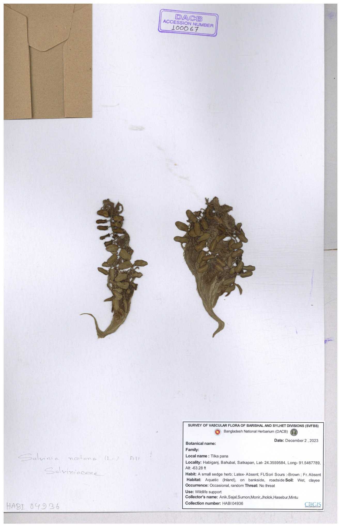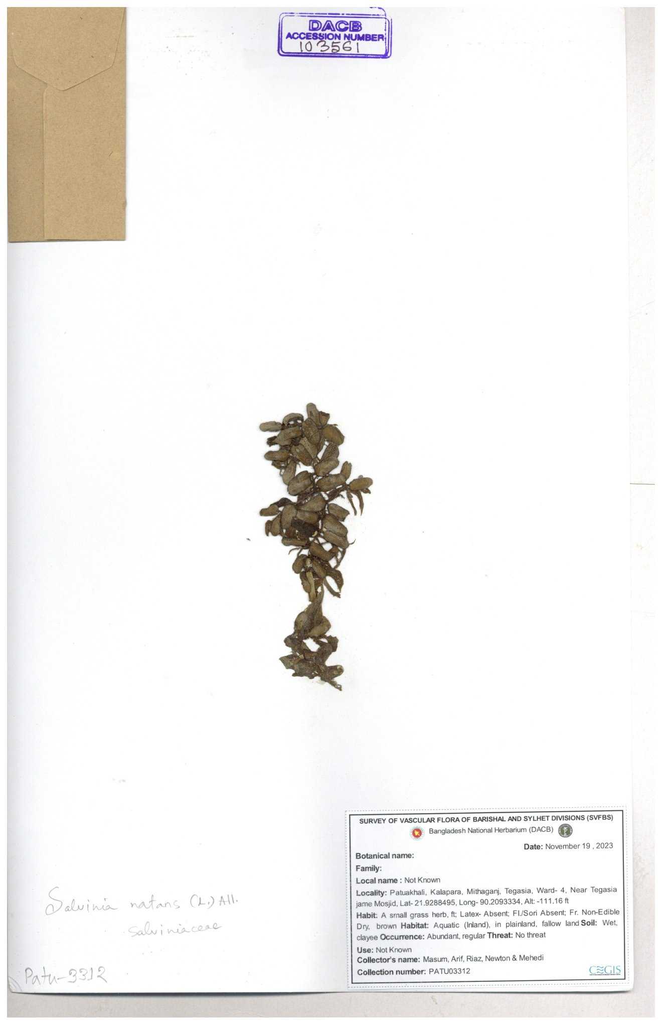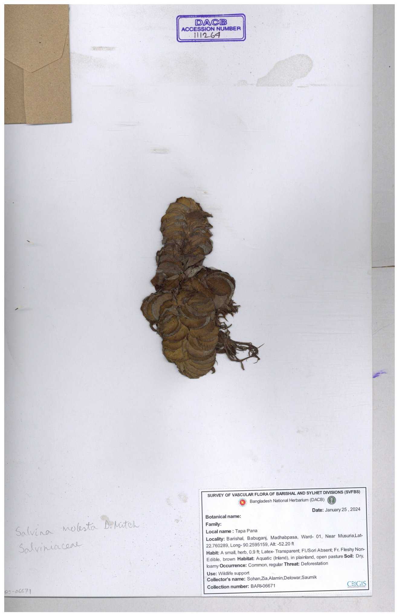 | 66510 | Salviniaceae | Salvinia molesta | Mohammad Amdadul Hoque | MAH-66 30-11--0001 |