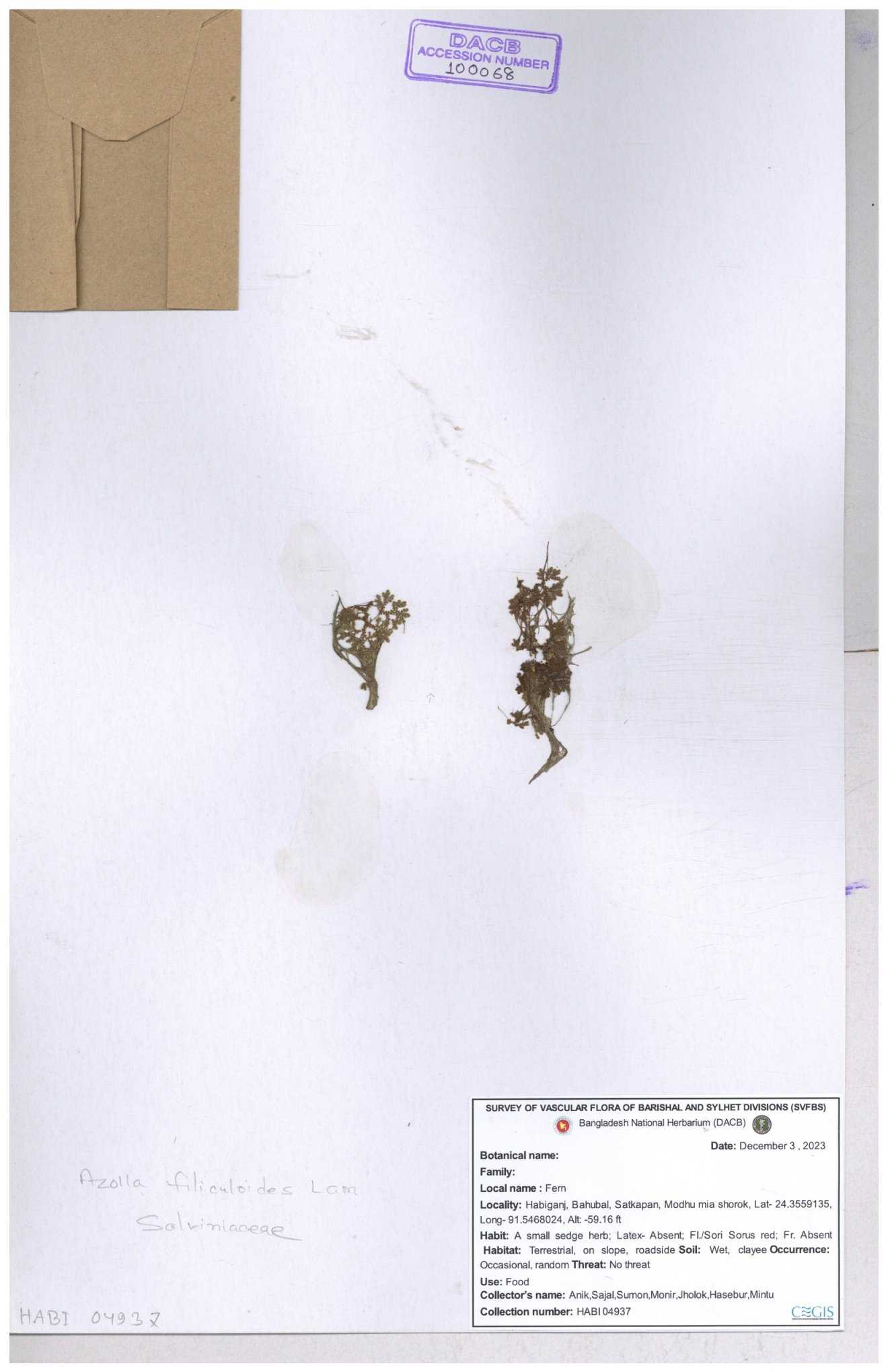 | 53864 | Salviniaceae | Azolla pinnata R. Br. | Md. Moniruzzaman, Al-Amin & Kawsar | MAK-5698 18-09-2017 |