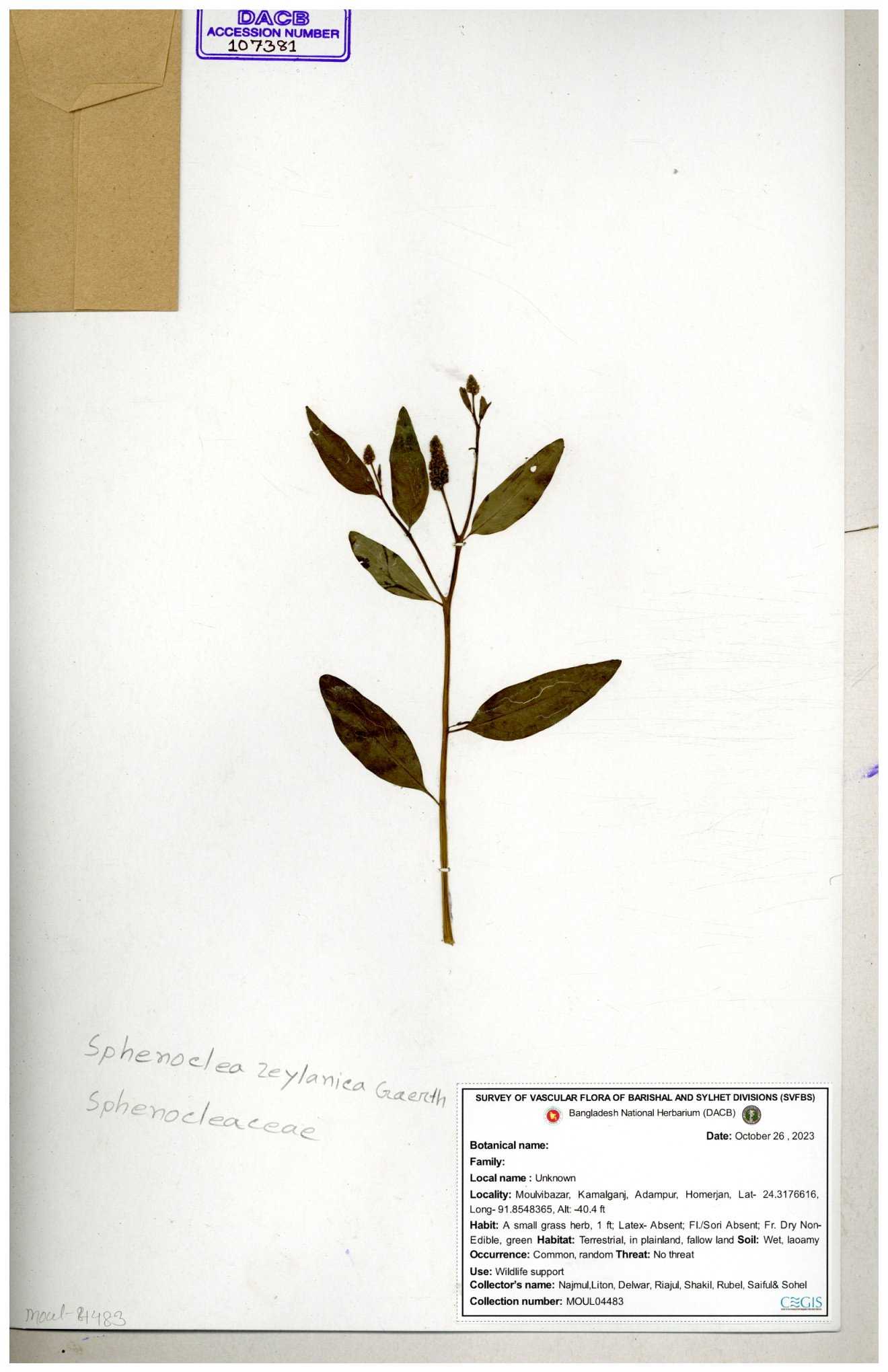 | 107381 | Sphenocleaceae | Sphenoclea zeylanica | 30-11--0001 |