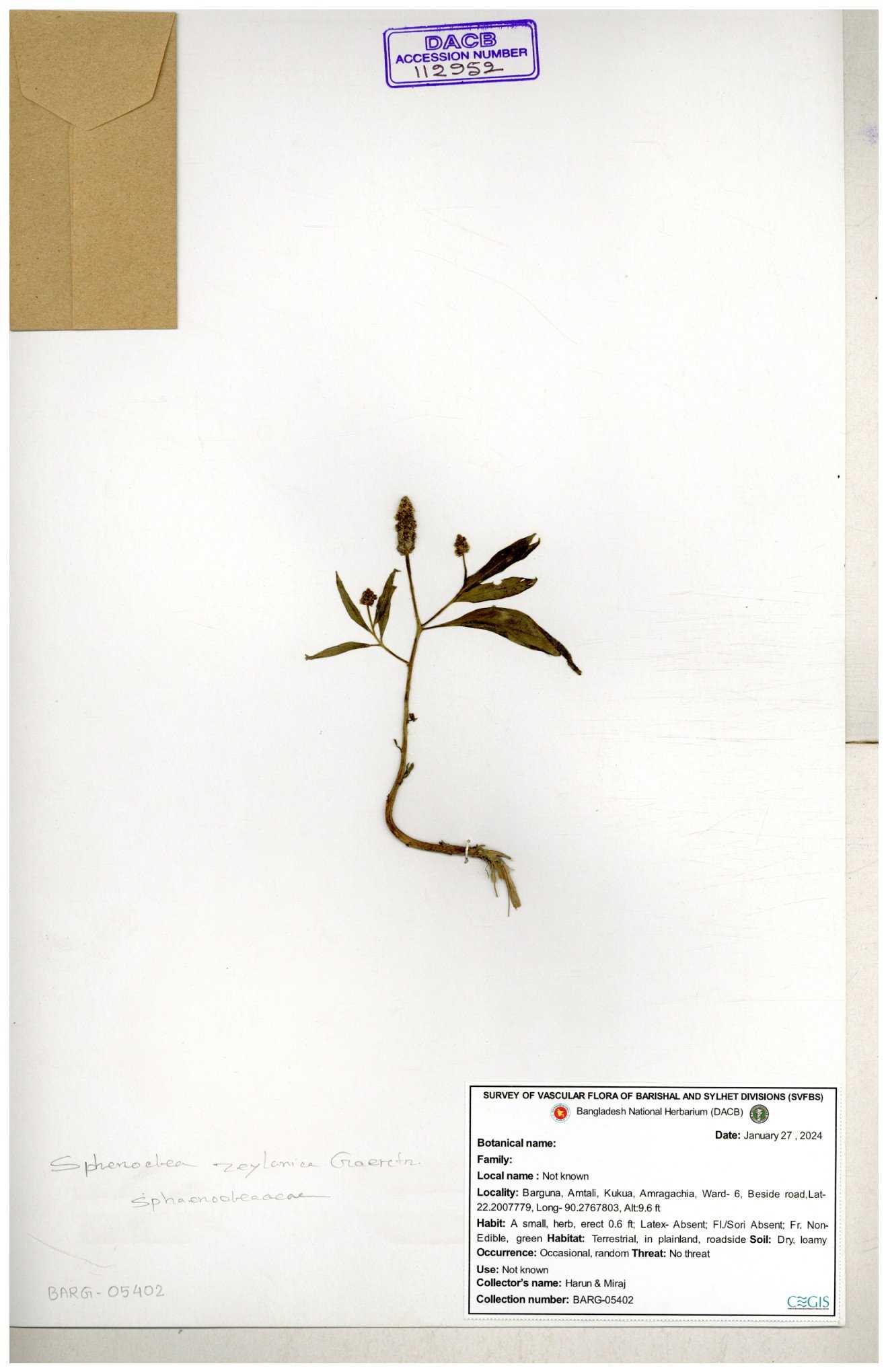 | 112952 | Sphenocleaceae | Sphenoclea zeylanica | 30-11--0001 |