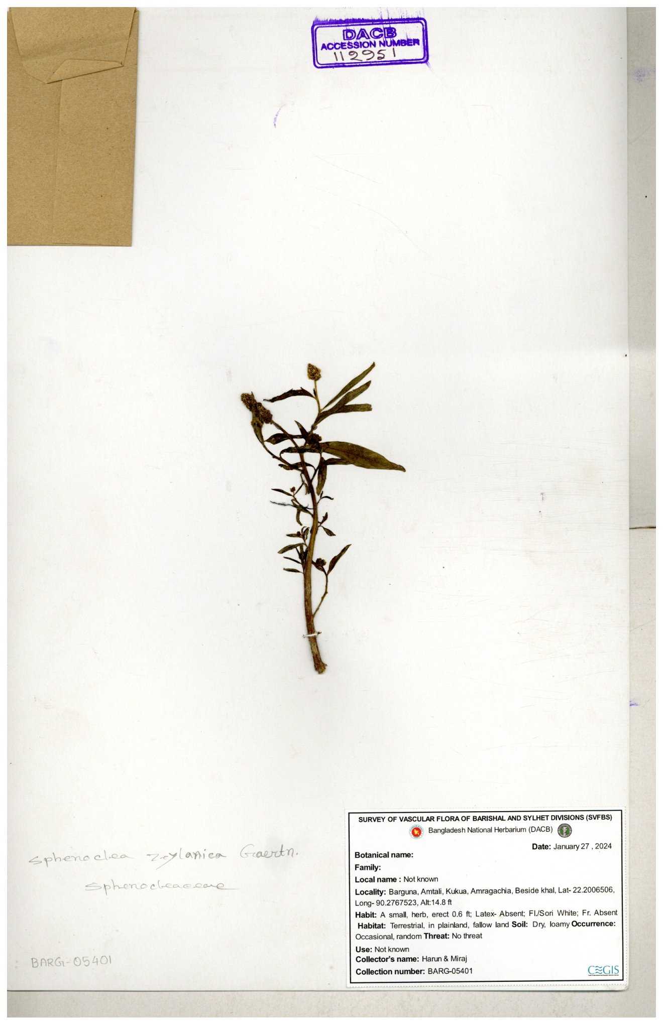 | 112951 | Sphenocleaceae | Sphenoclea zeylanica | 30-11--0001 |