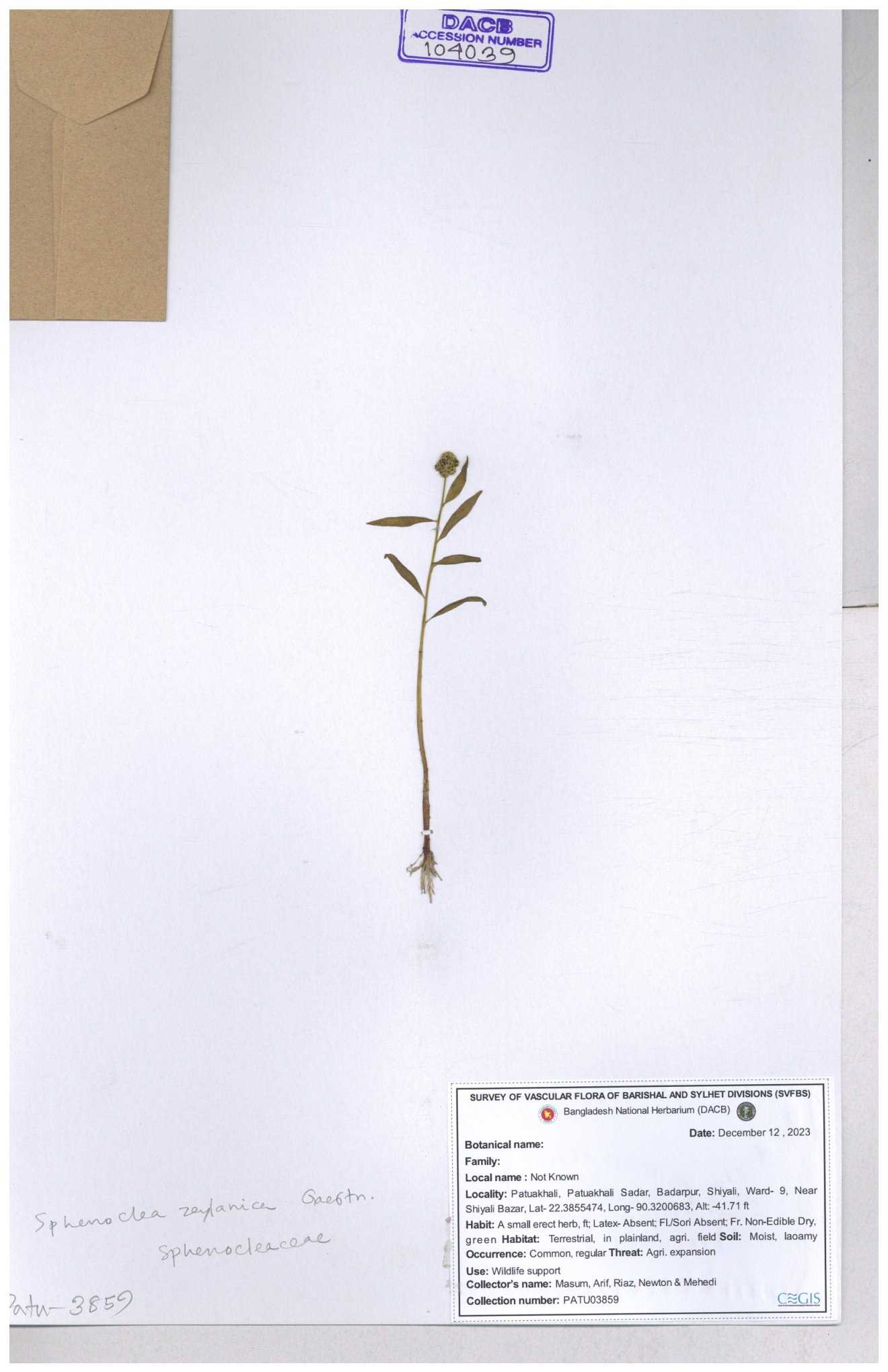 | 104039 | Sphenocleaceae | Sphenoclea zeylanica | 30-11--0001 |