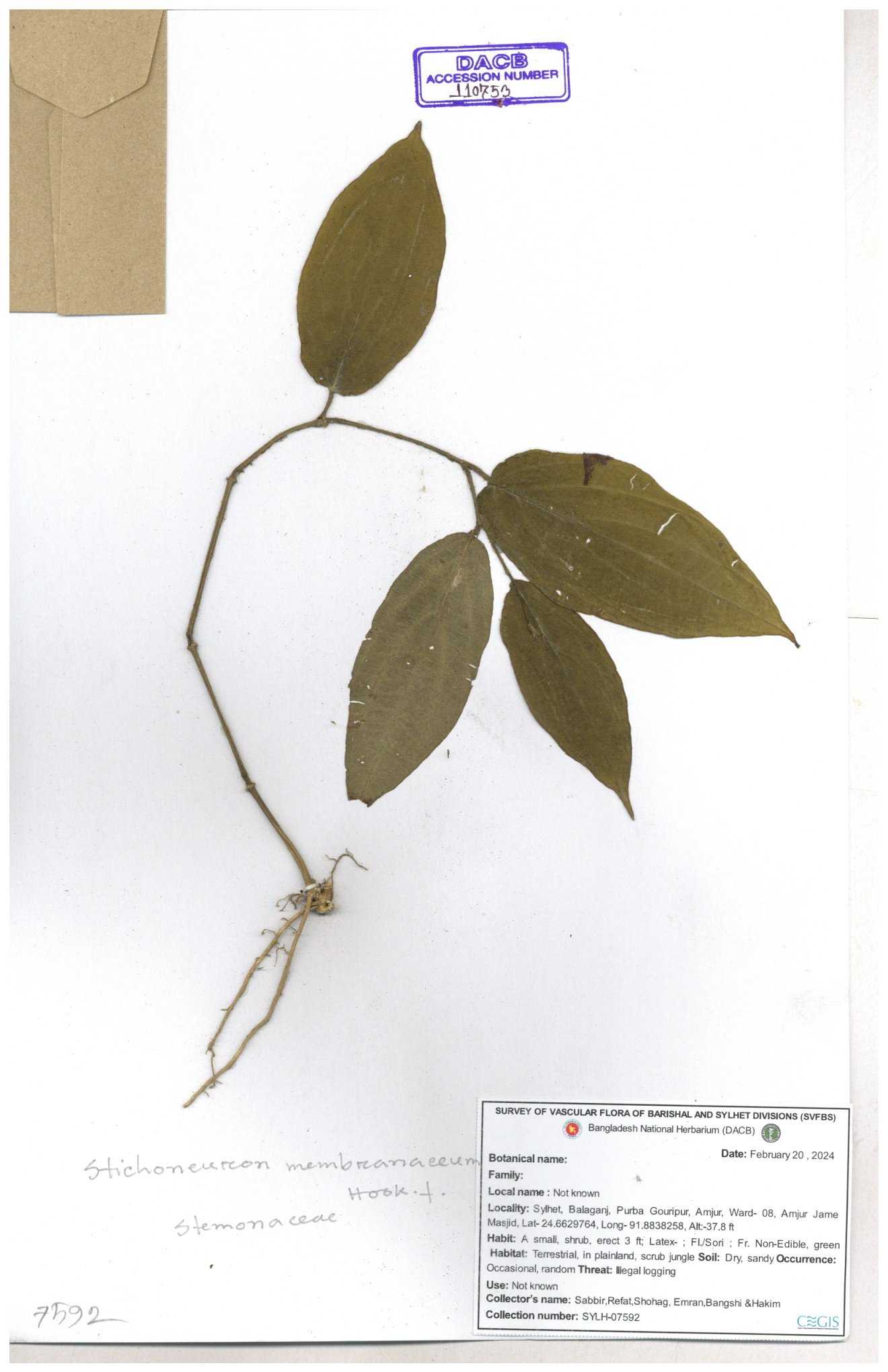 | 110236 | Stemonaceae | Stichoneuron membranacoum | 30-11--0001 |