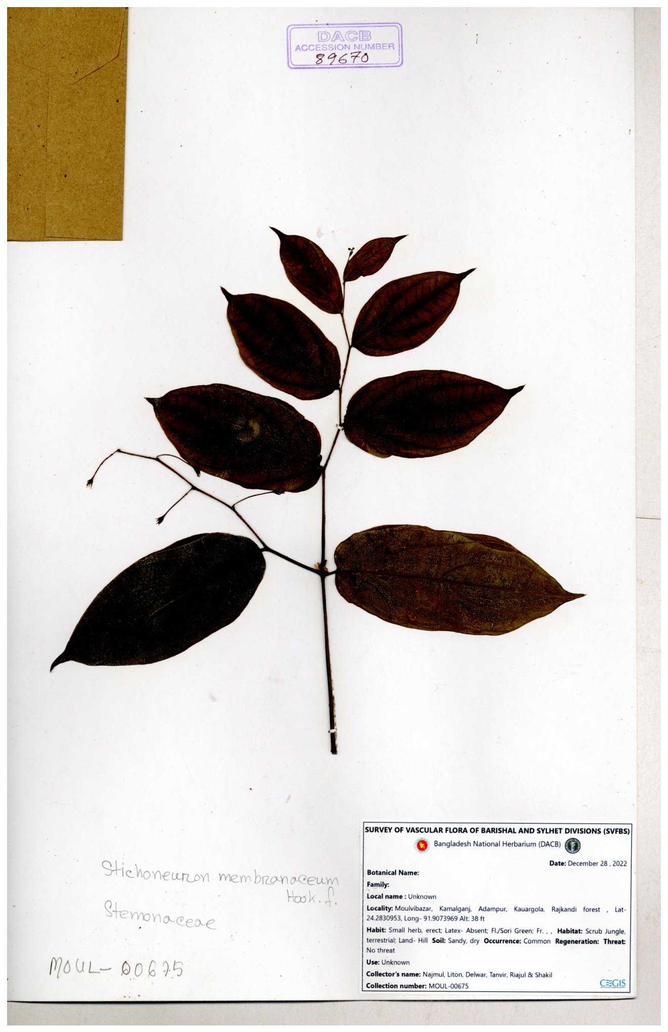 | 89670 | Stemonaceae | Stichoneuron membranaceum | 30-11--0001 |