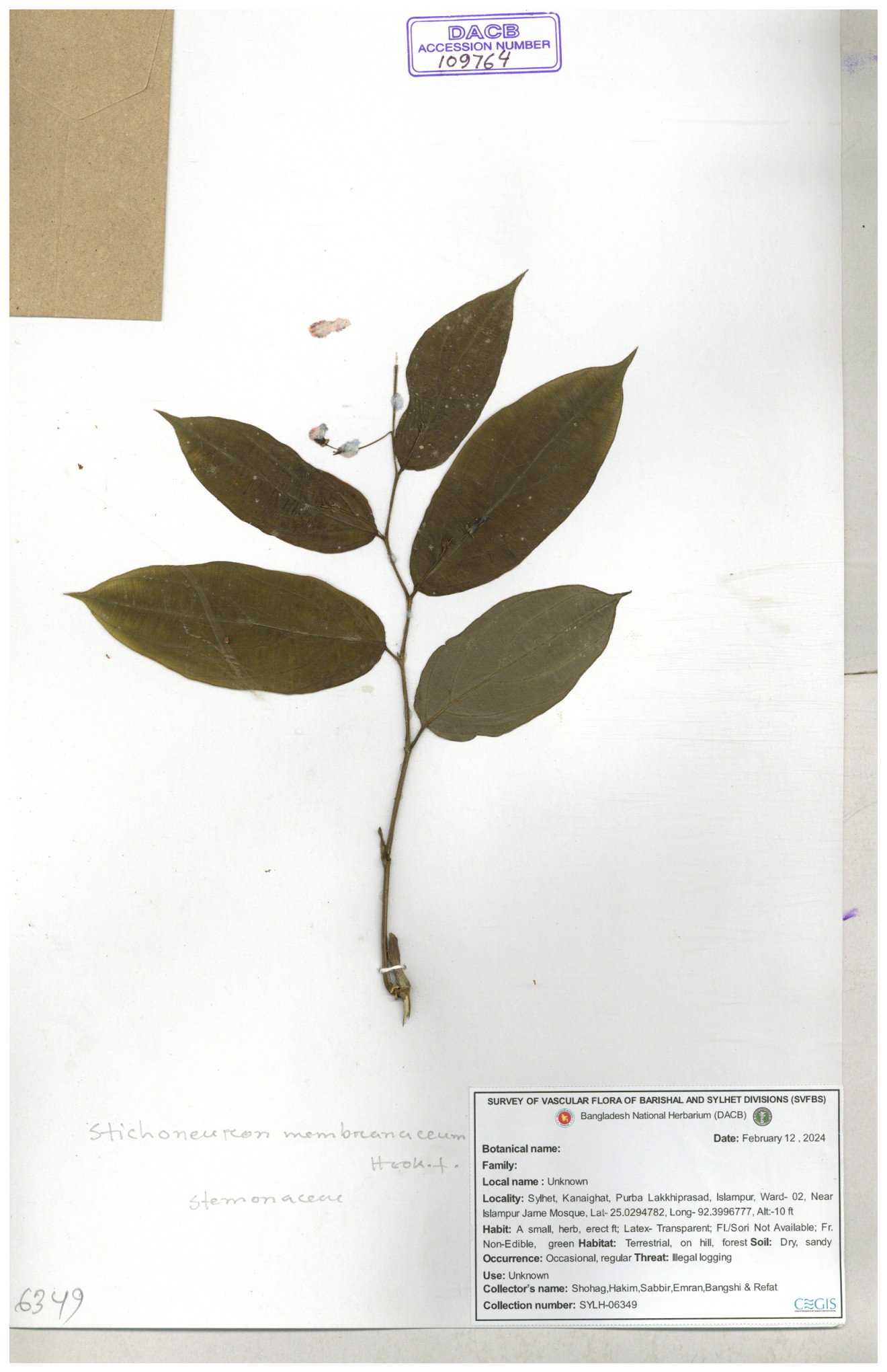 | 109764 | Stemonaceae | Stichoneuron membranaceum | 30-11--0001 |