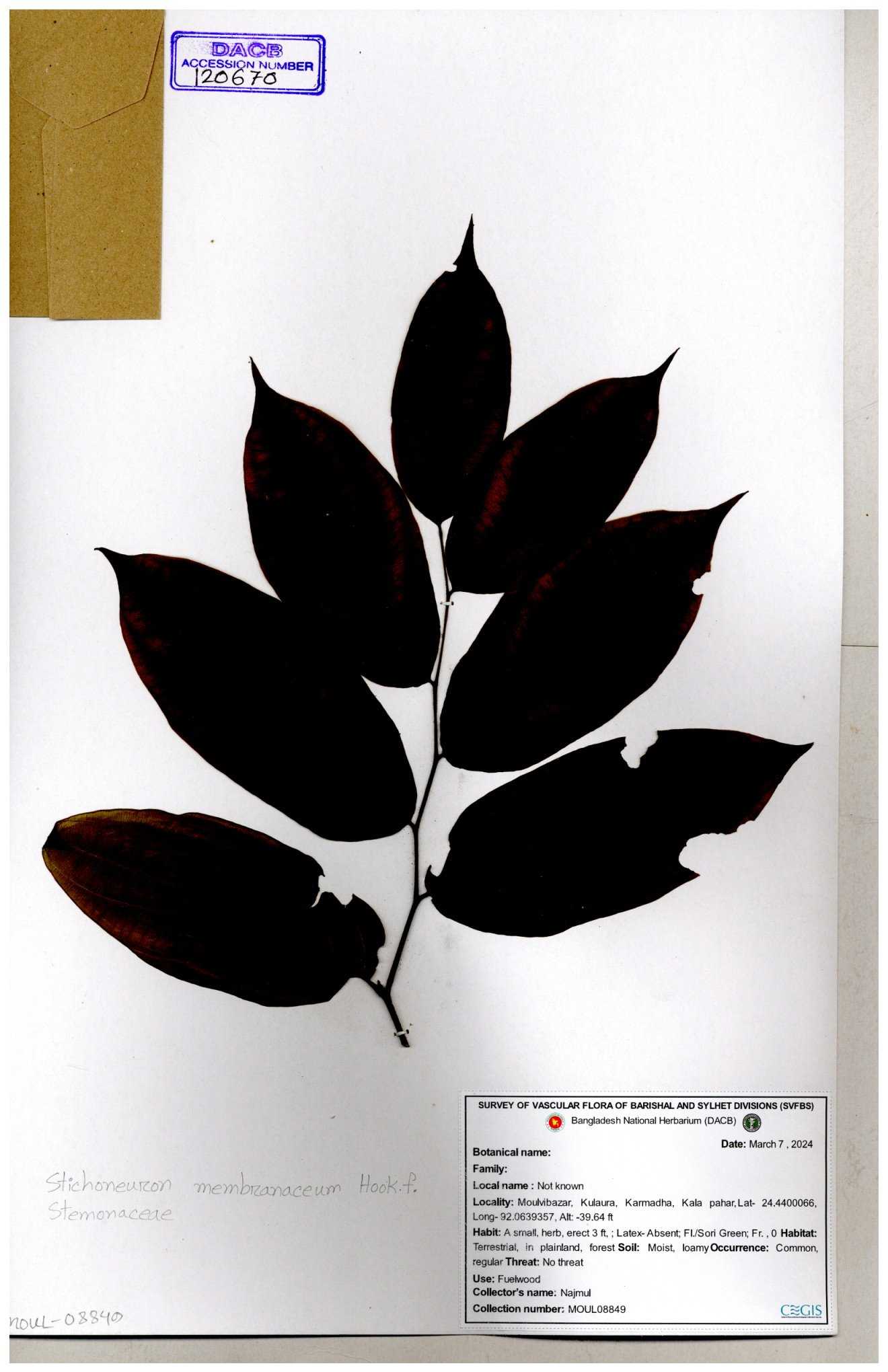 | 120670 | Stemonaceae | Stichoneuron membranaceum | 30-11--0001 |