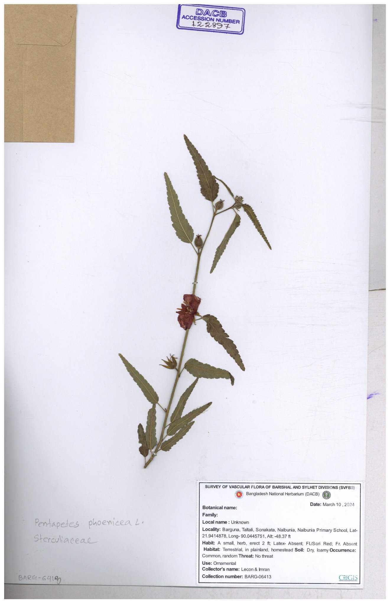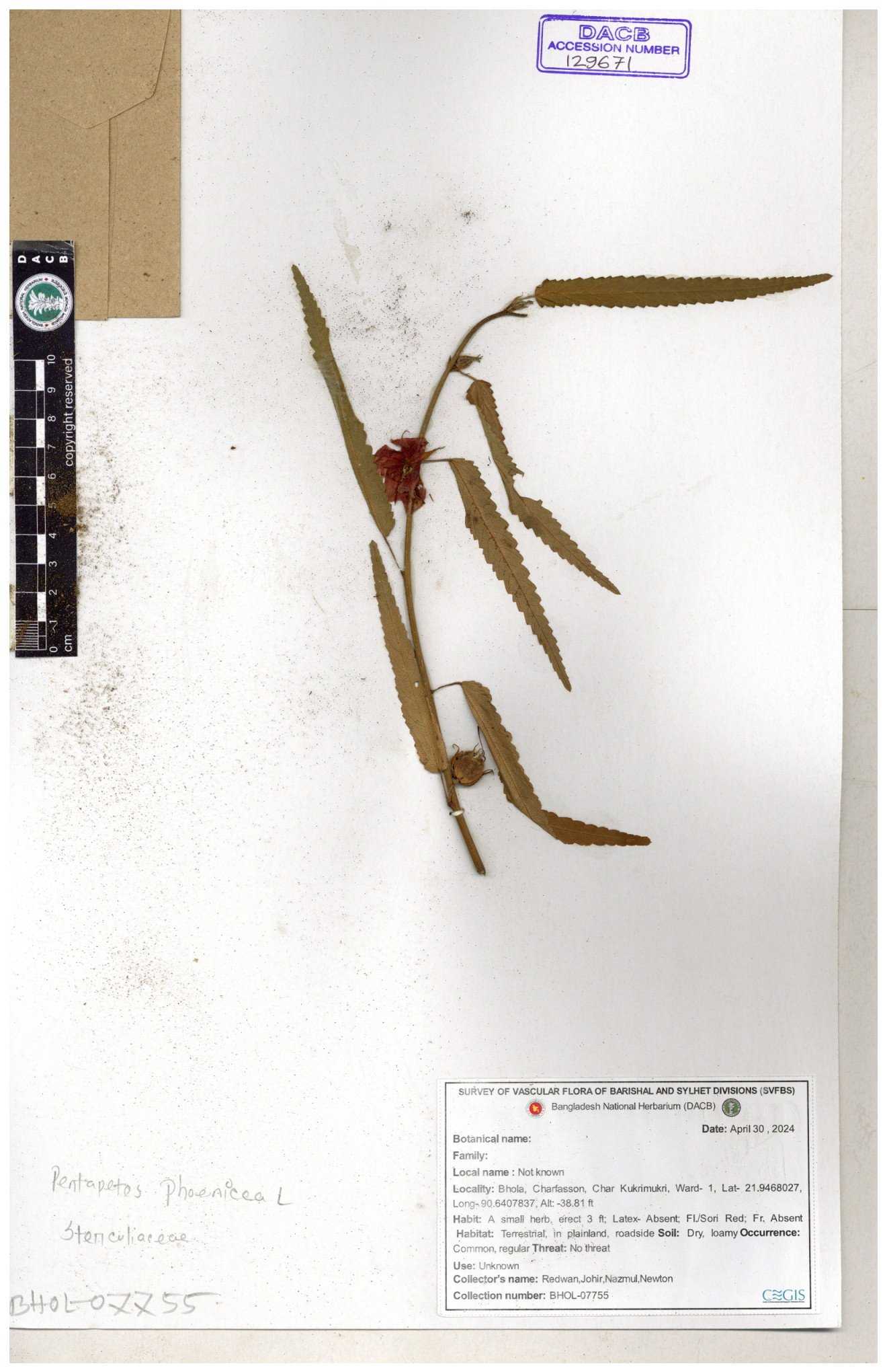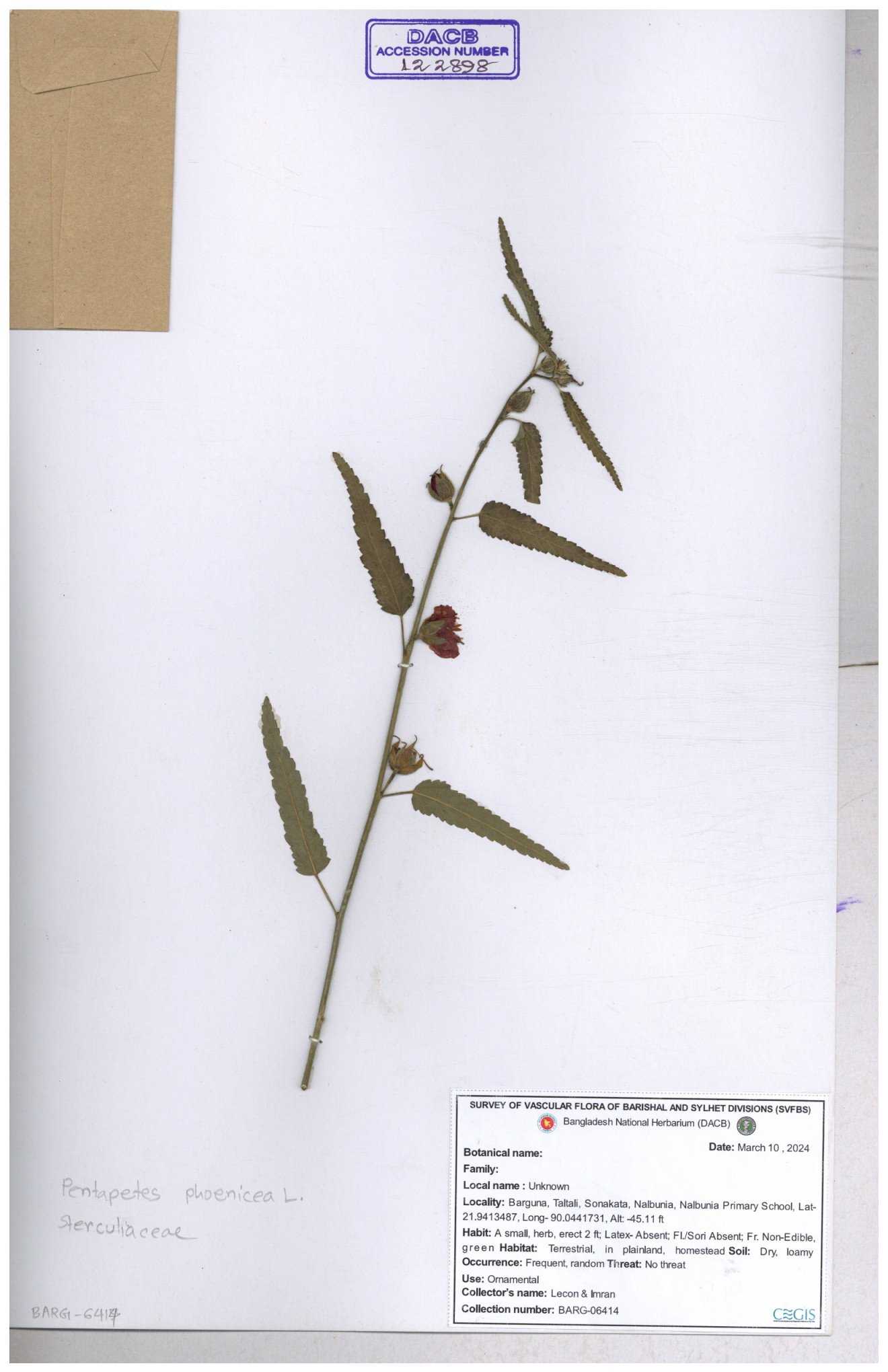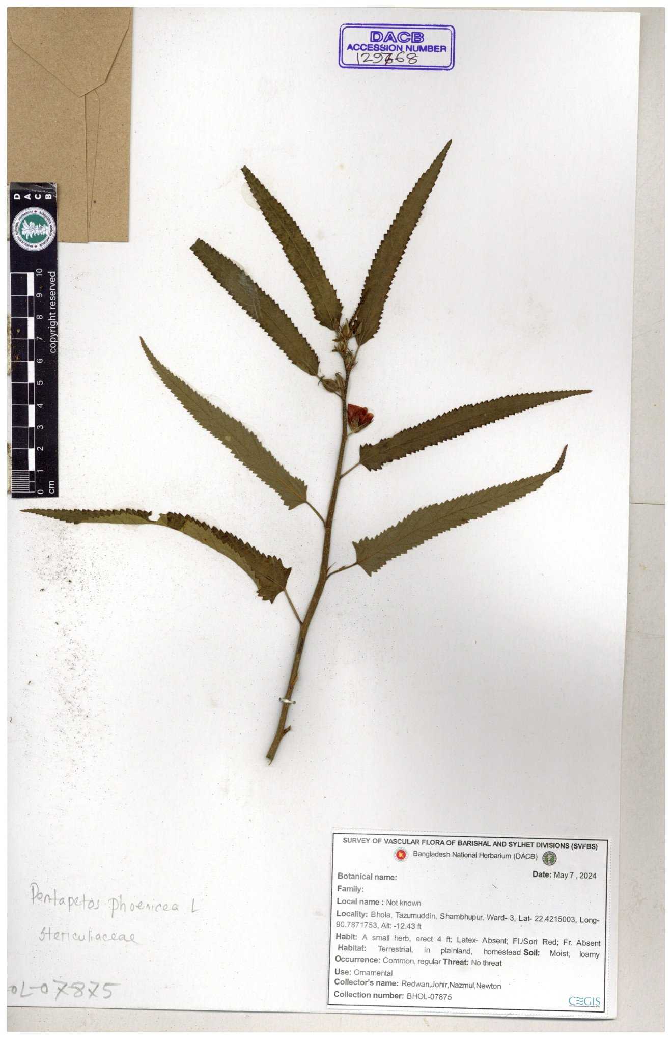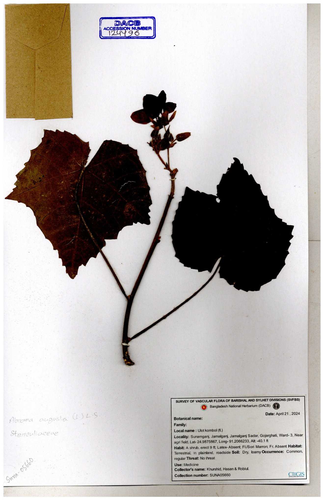 | 42462 | Sterculiaceae | Abroma augusta (L.) L.f. | Not known | Sarder Nasir Uddin | N- 5493 20-08-2014 |