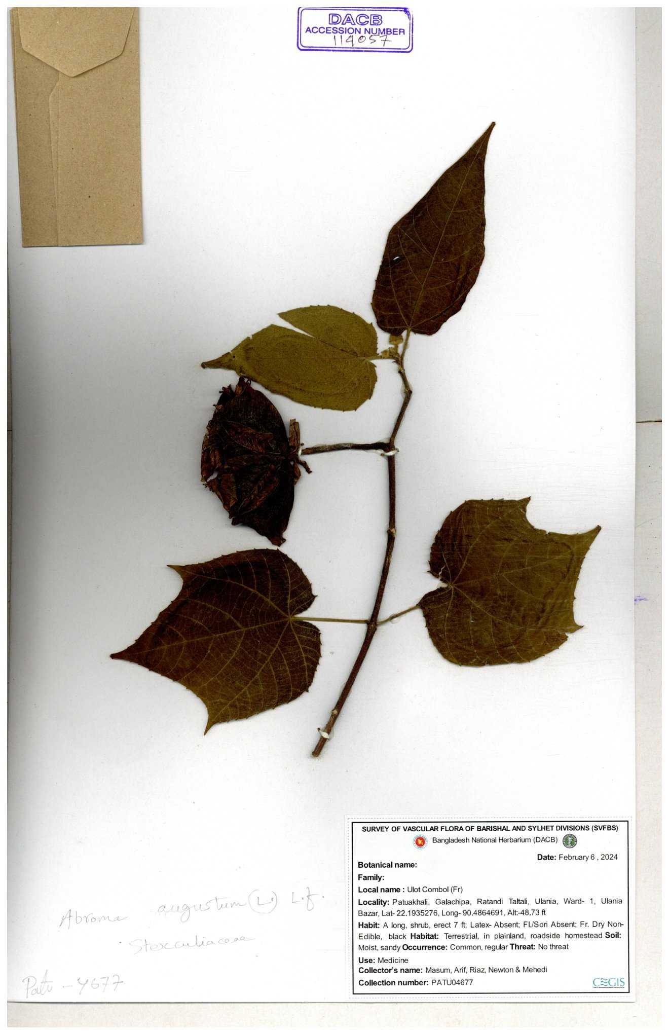 | 111704 | Sterculiaceae | Abroma angusta | 30-11--0001 |