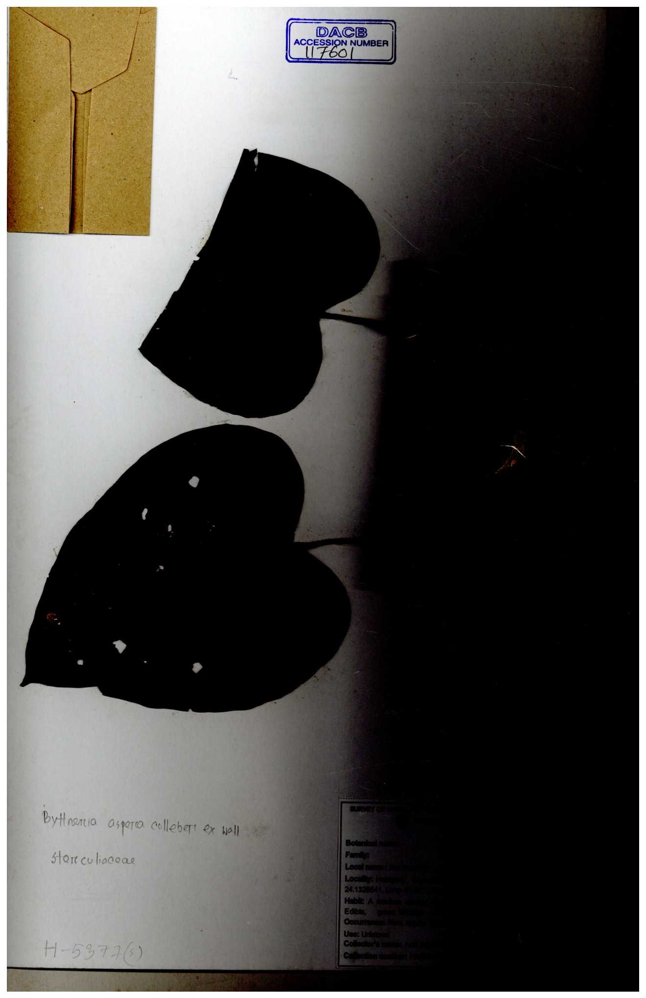 | 79380 | Sterculiaceae | Byttneria aspera Collebr. ex Wall. | Kowser et al | KH-7259 25-10-2017 |