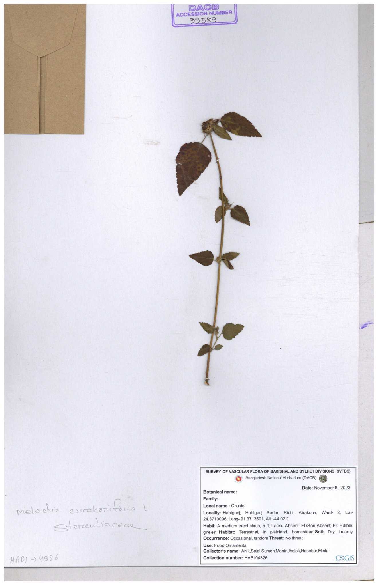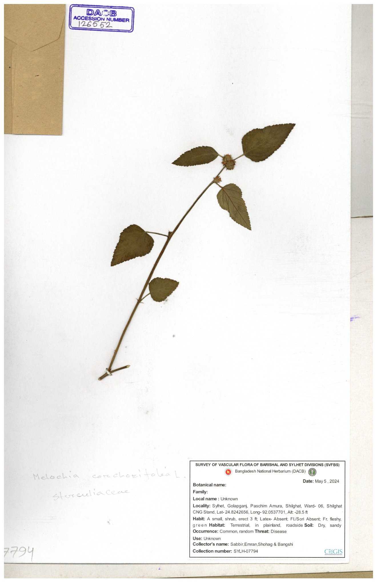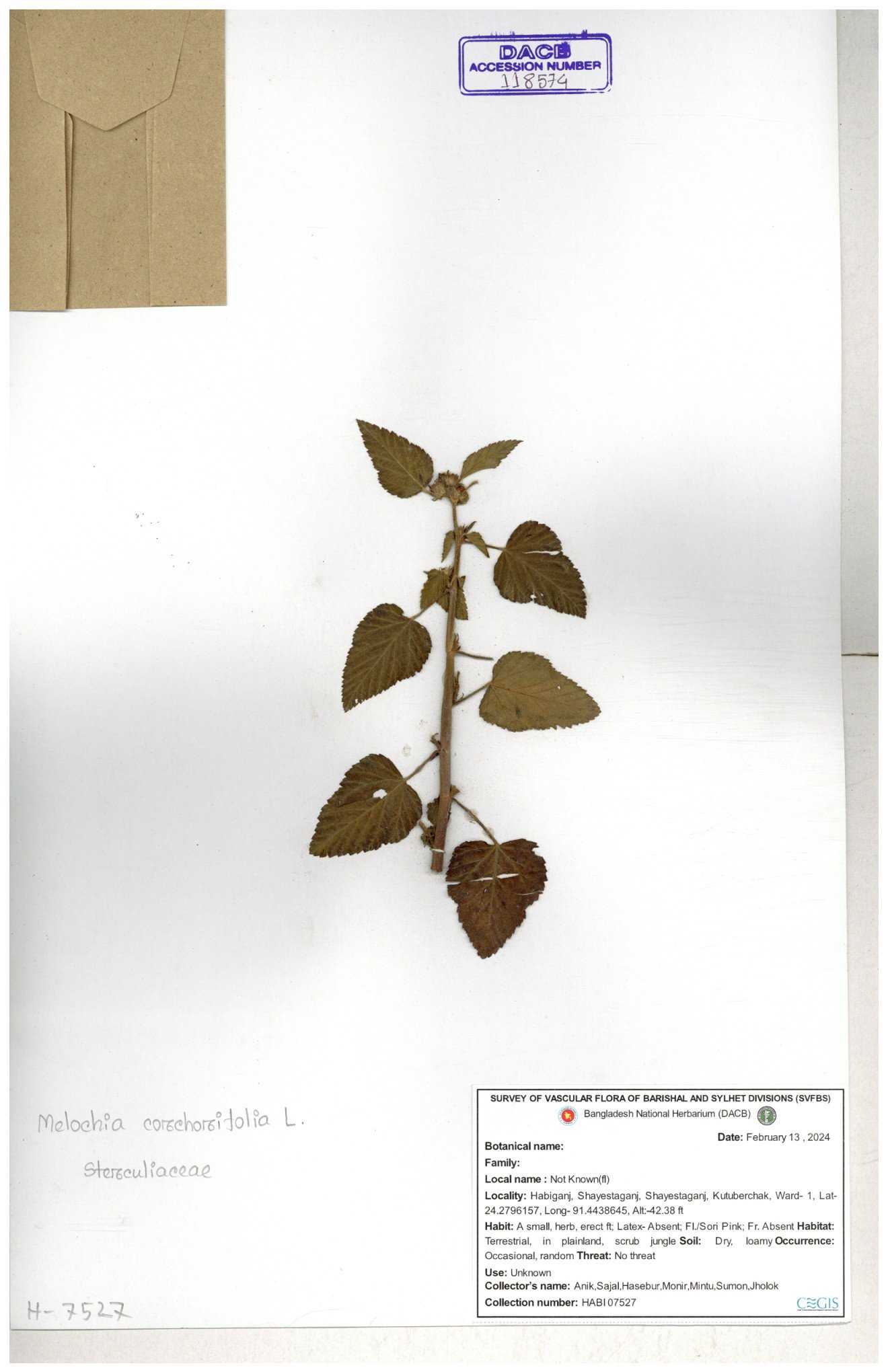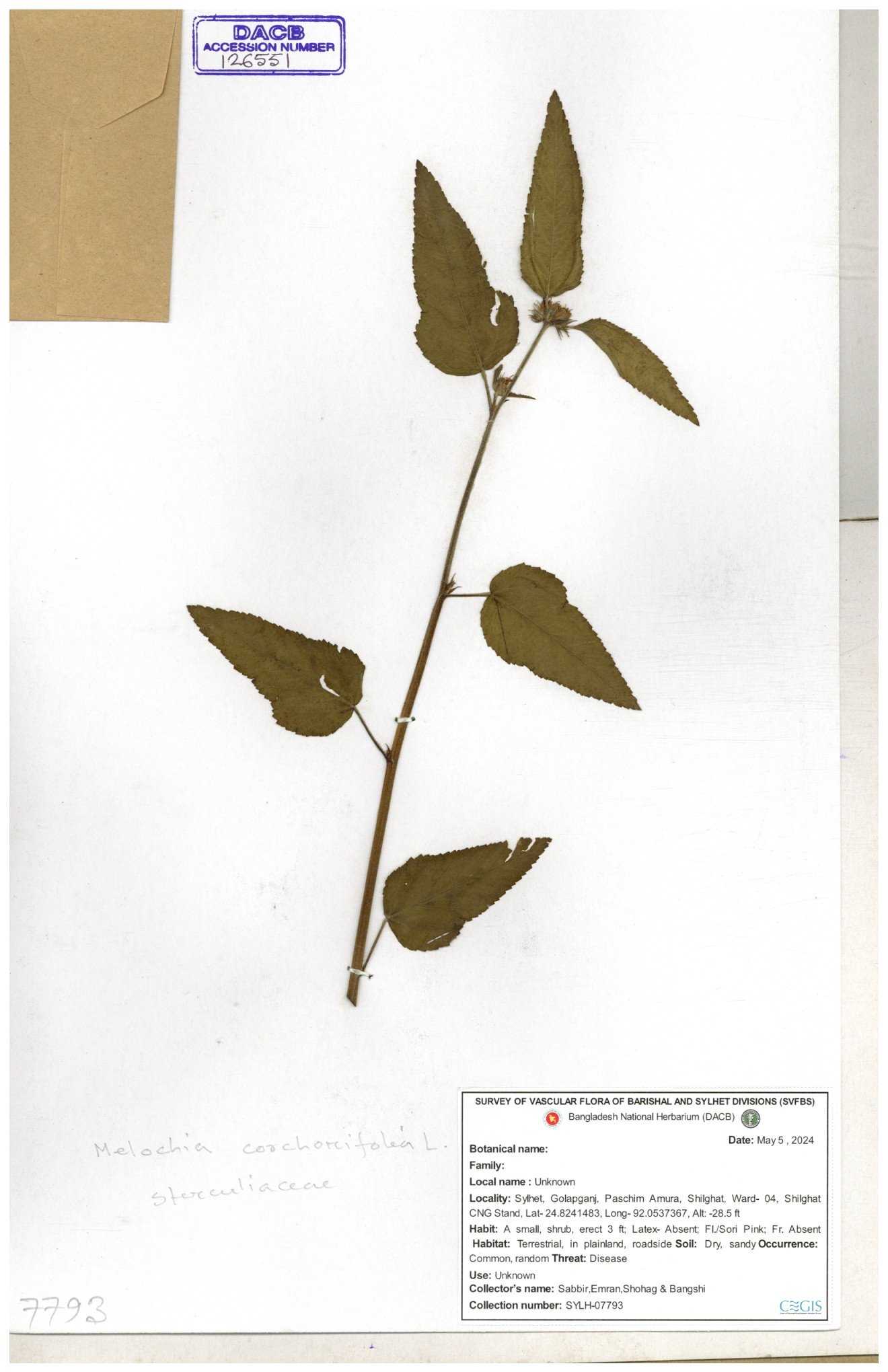 | 24008 | Sterculiaceae | triumfetta sp. | A.M. Huq & M.K. Mia | H. 800 17-11-1986 |
