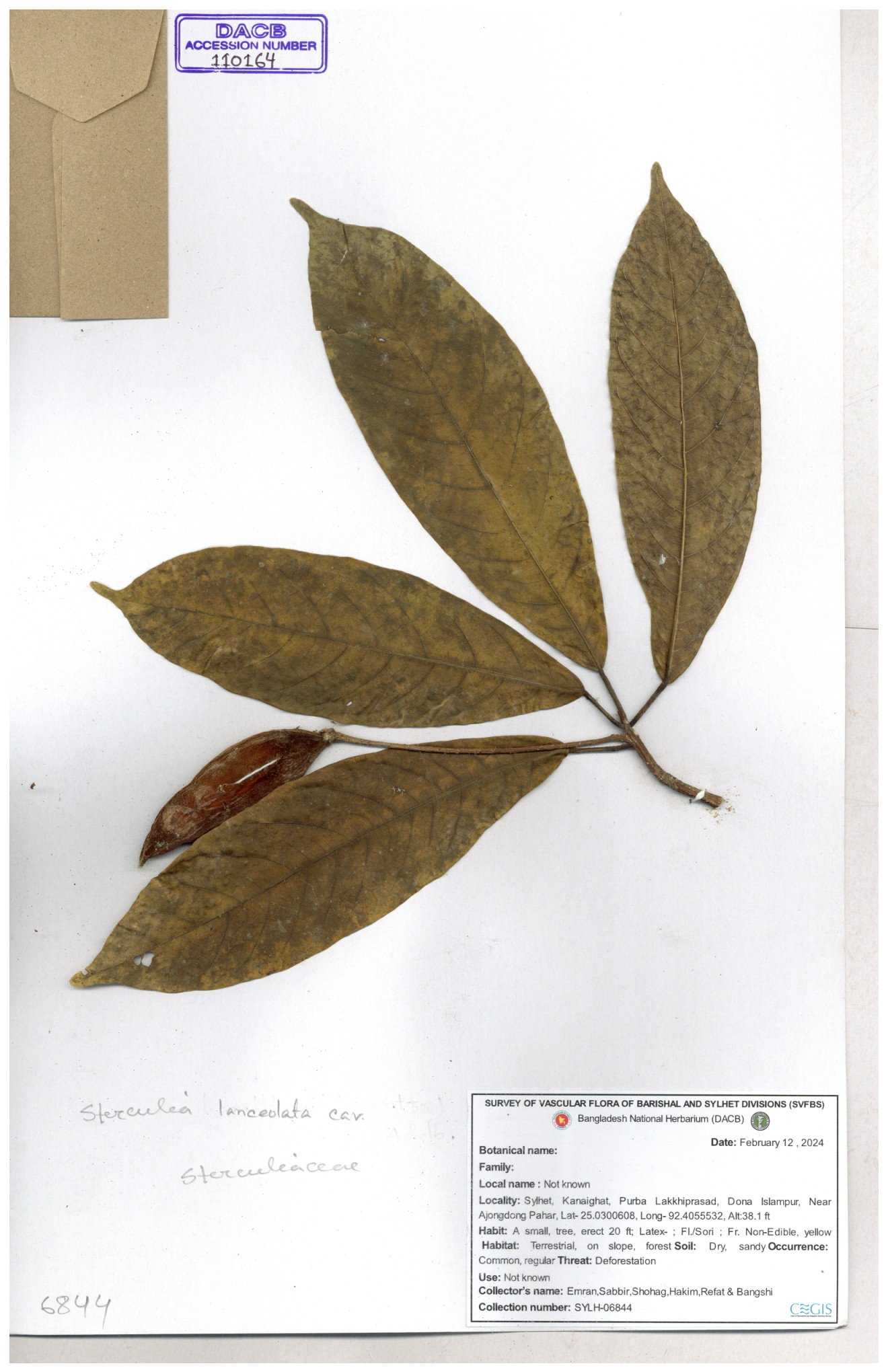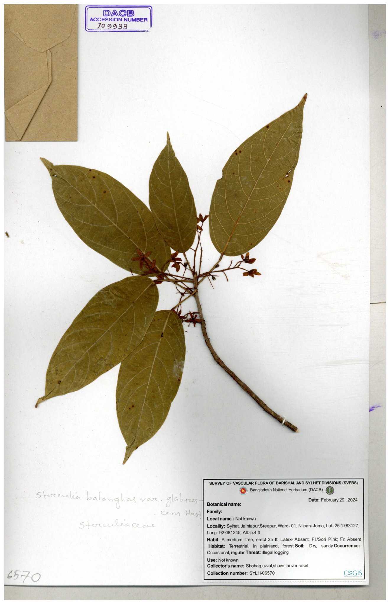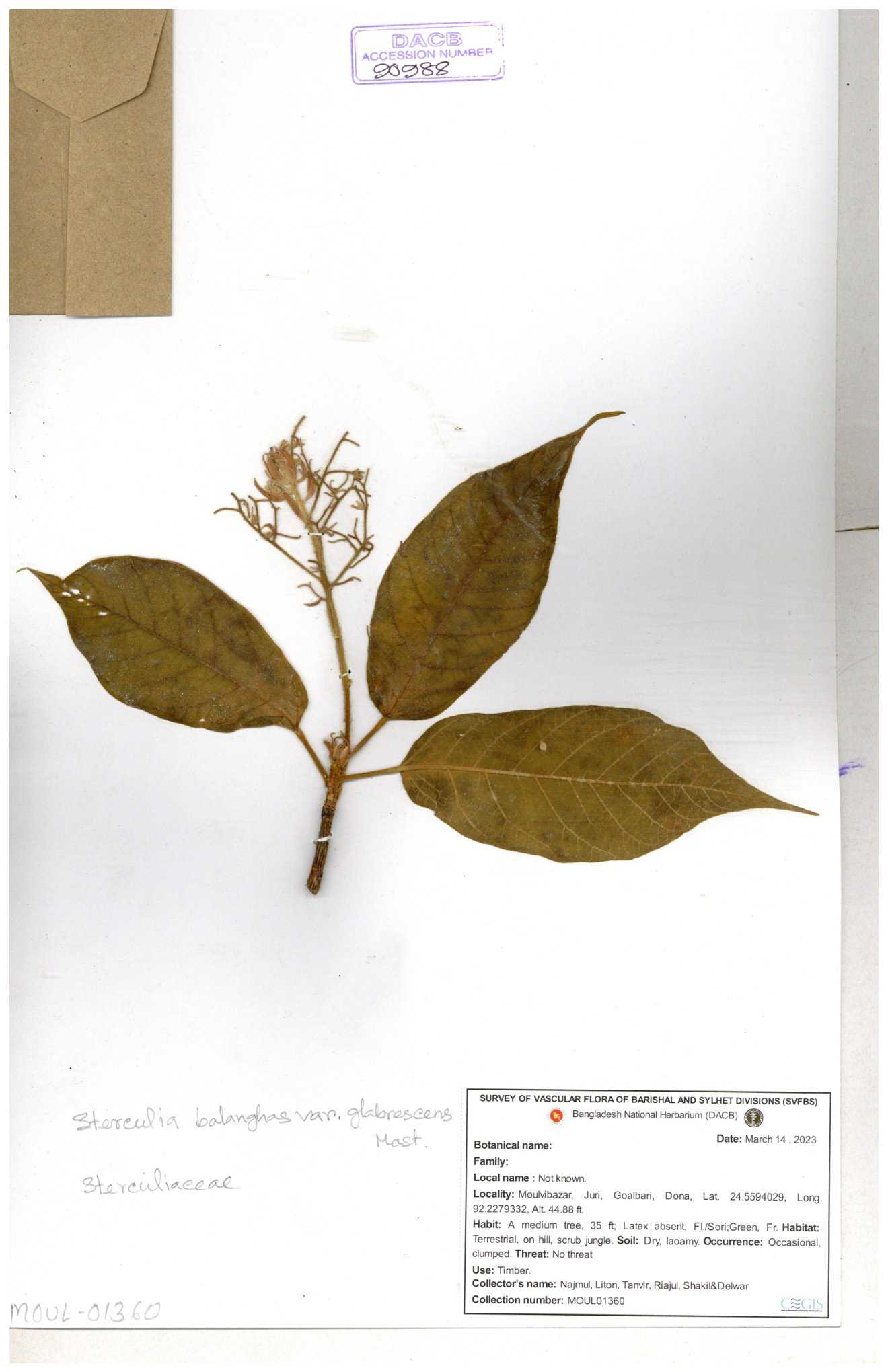 | 14280 | Sterculiaceae | Sterculia villosa Roxb. | D.D. Soejarto & M. Rahman | No. 4974 05-06-1978 |
