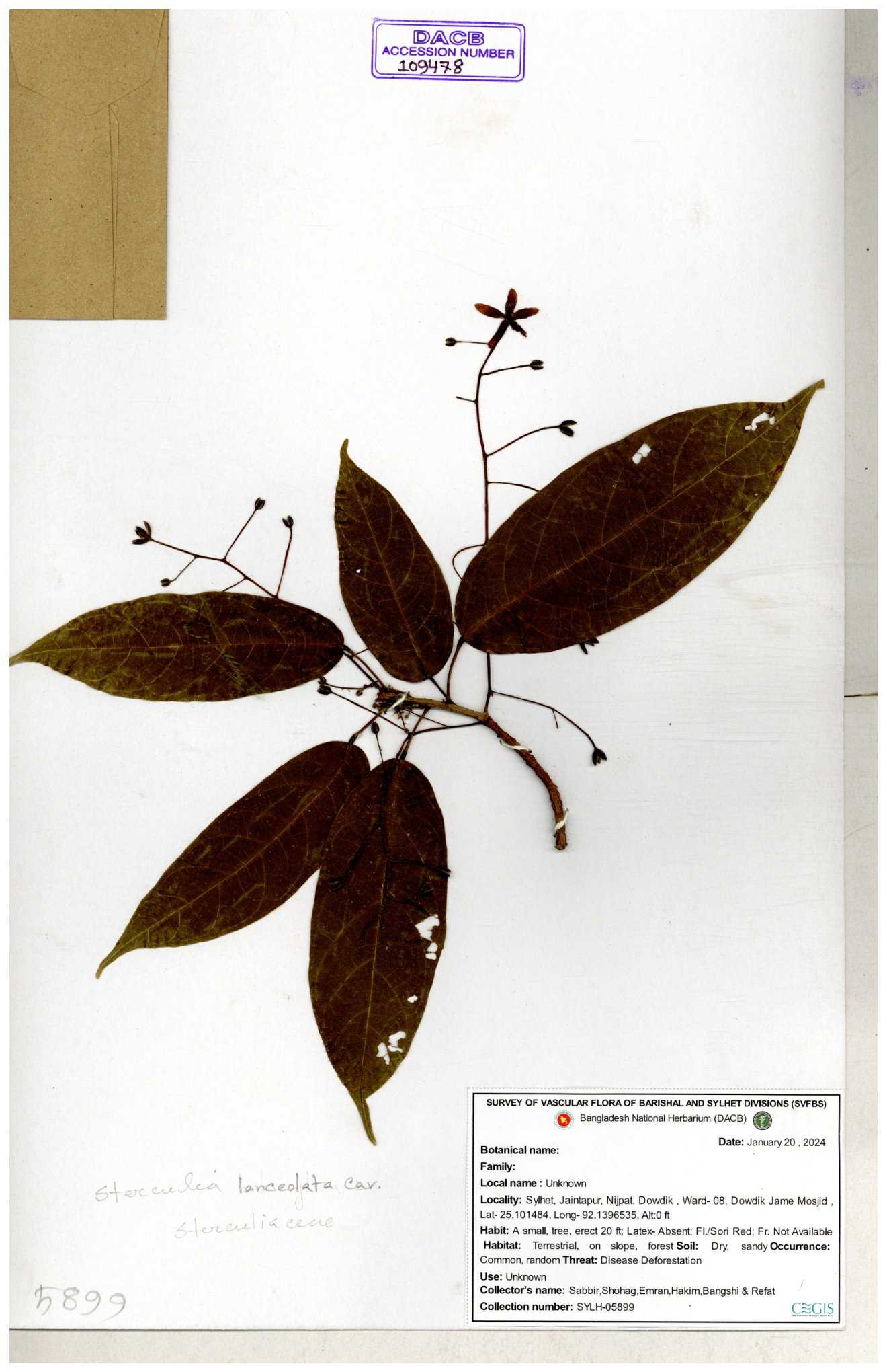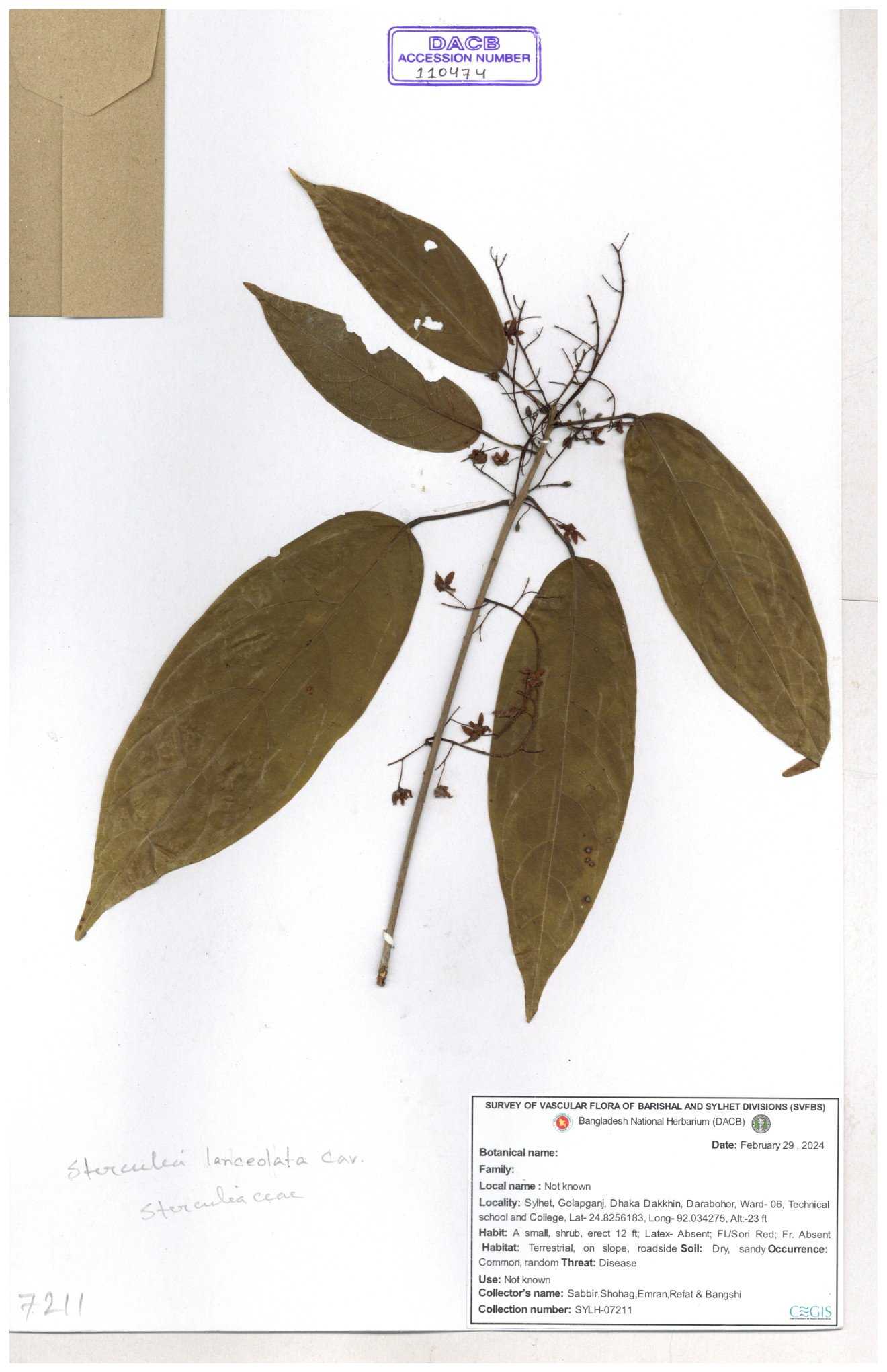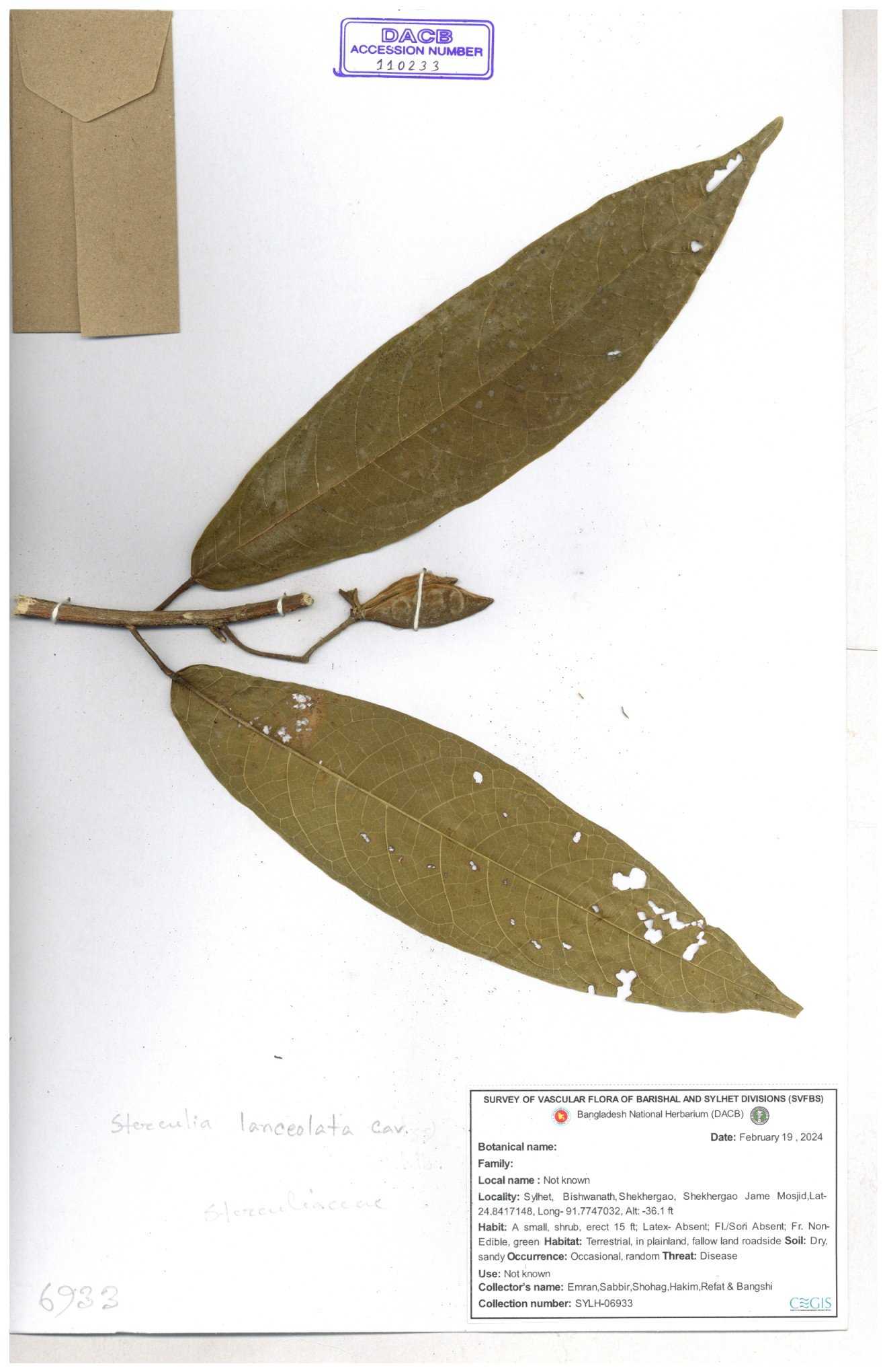 | 14280 | Sterculiaceae | Sterculia villosa Roxb. | D.D. Soejarto & M. Rahman | No. 4974 05-06-1978 |