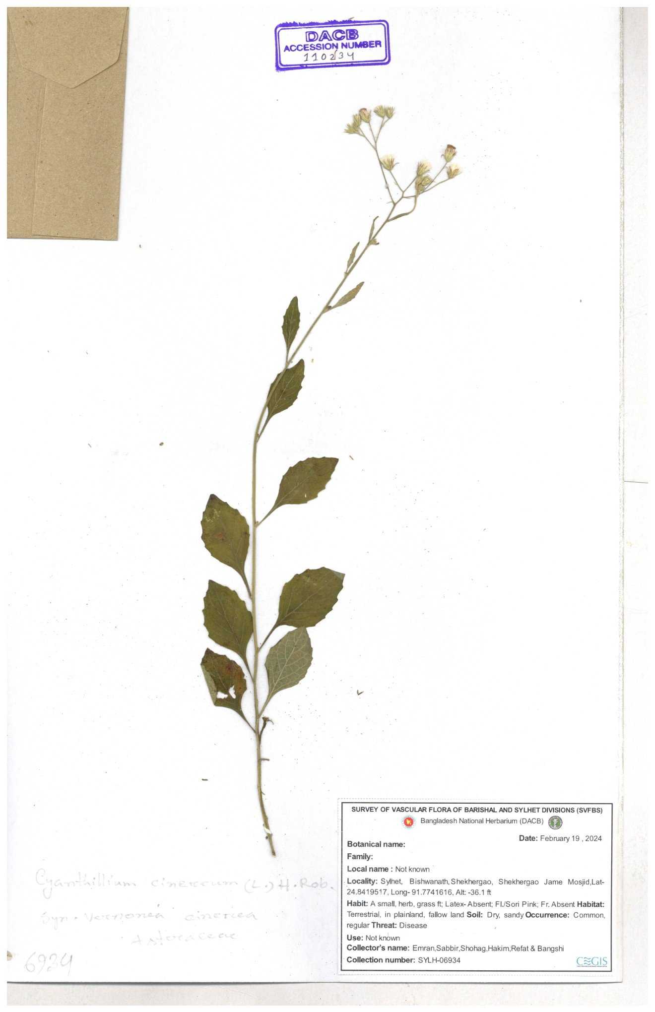 | 58615 | Sterculiaceae | Pterospermum semisagittatum Blanco | Niyamul Kabir, Jahid Hasan, Md. Moniruzzaman, Mehedi Hasan | NK-1624 15-11-2016 |