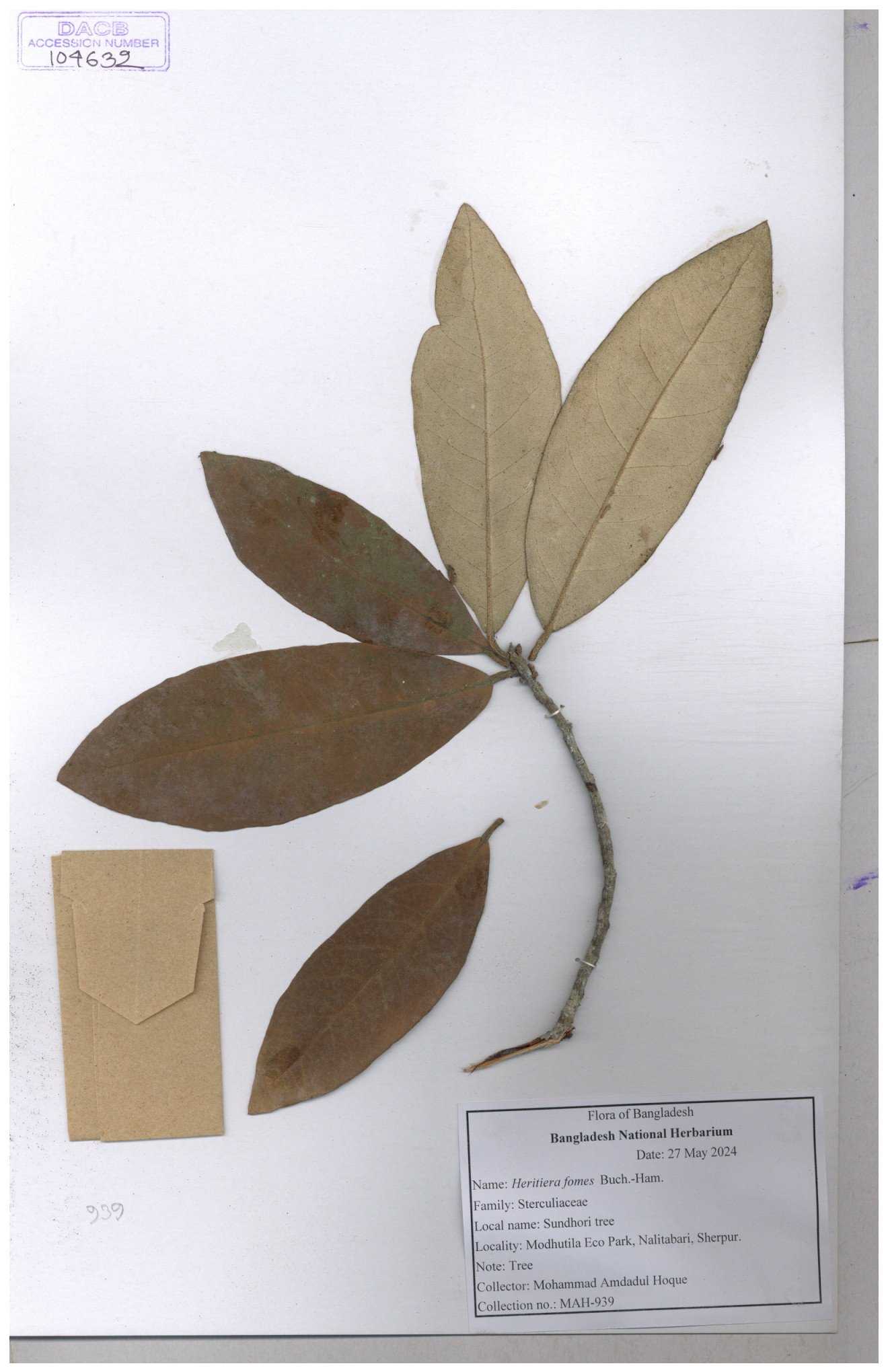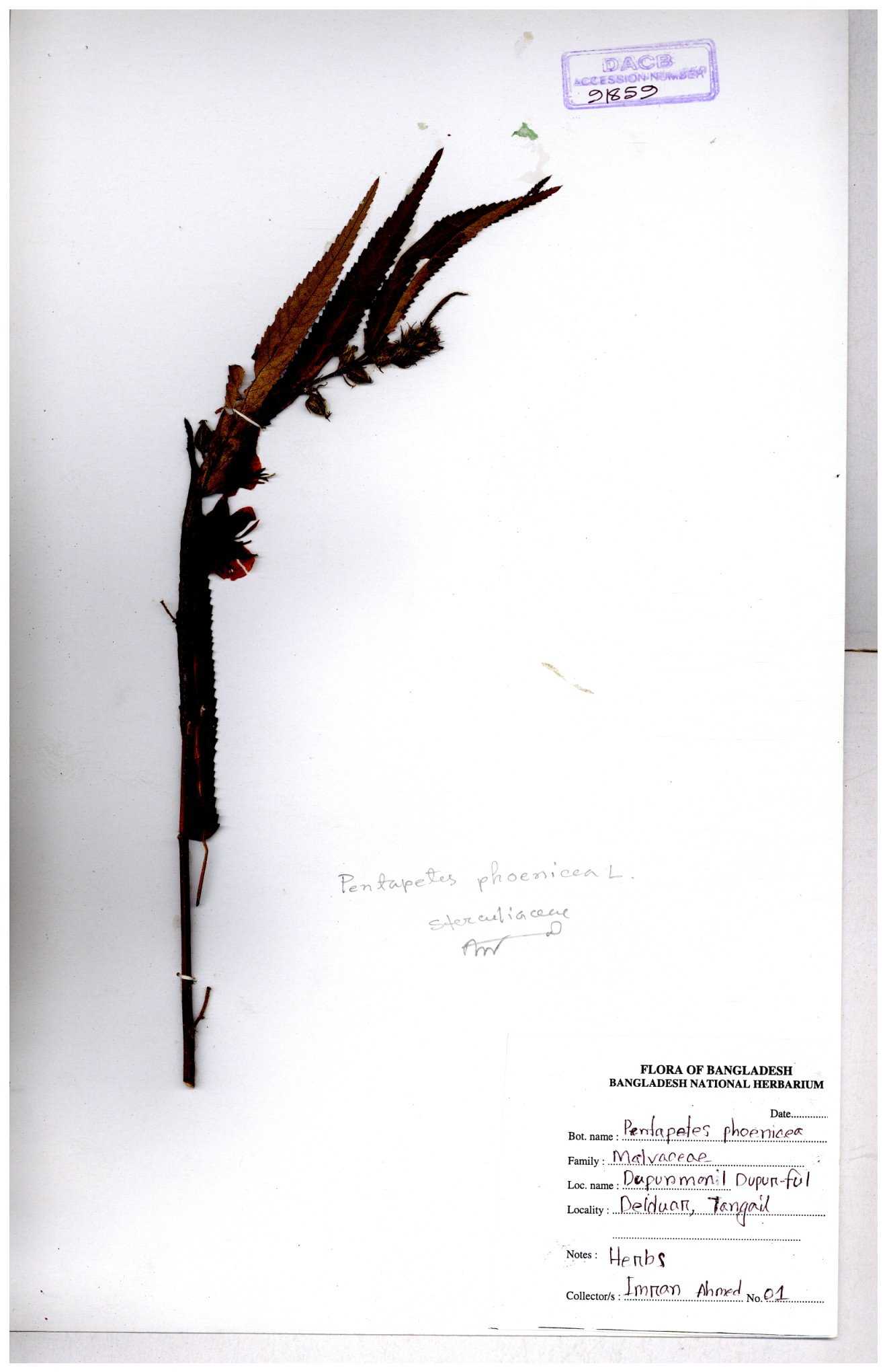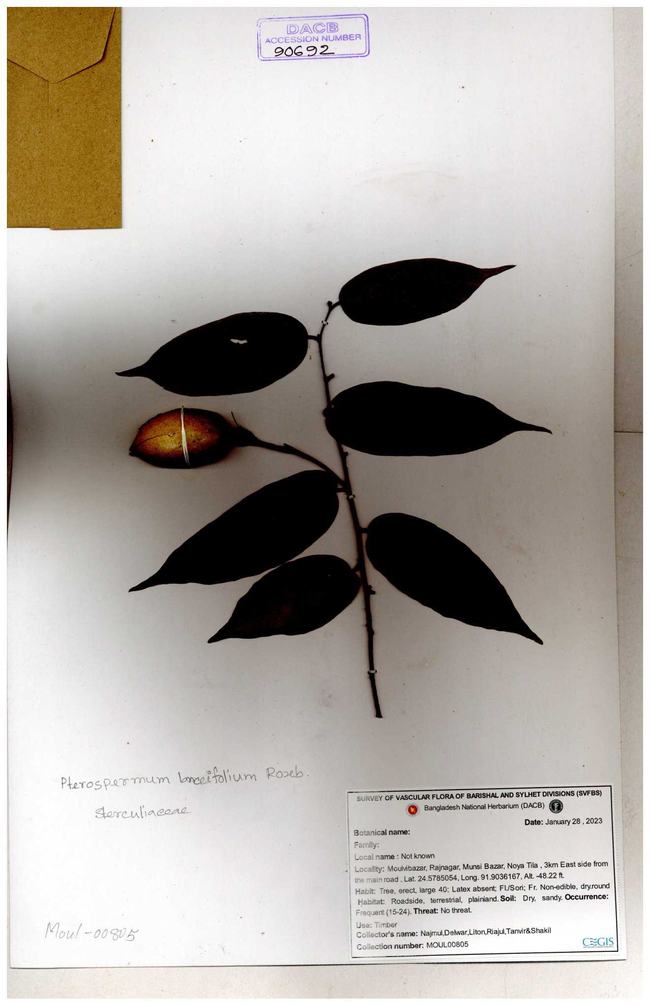 | 45576 | Sterculiaceae | Pterospermum semisagittatum Blanco | Not known | Sarder Nasir Uddin | N- 4221 10-05-2010 |