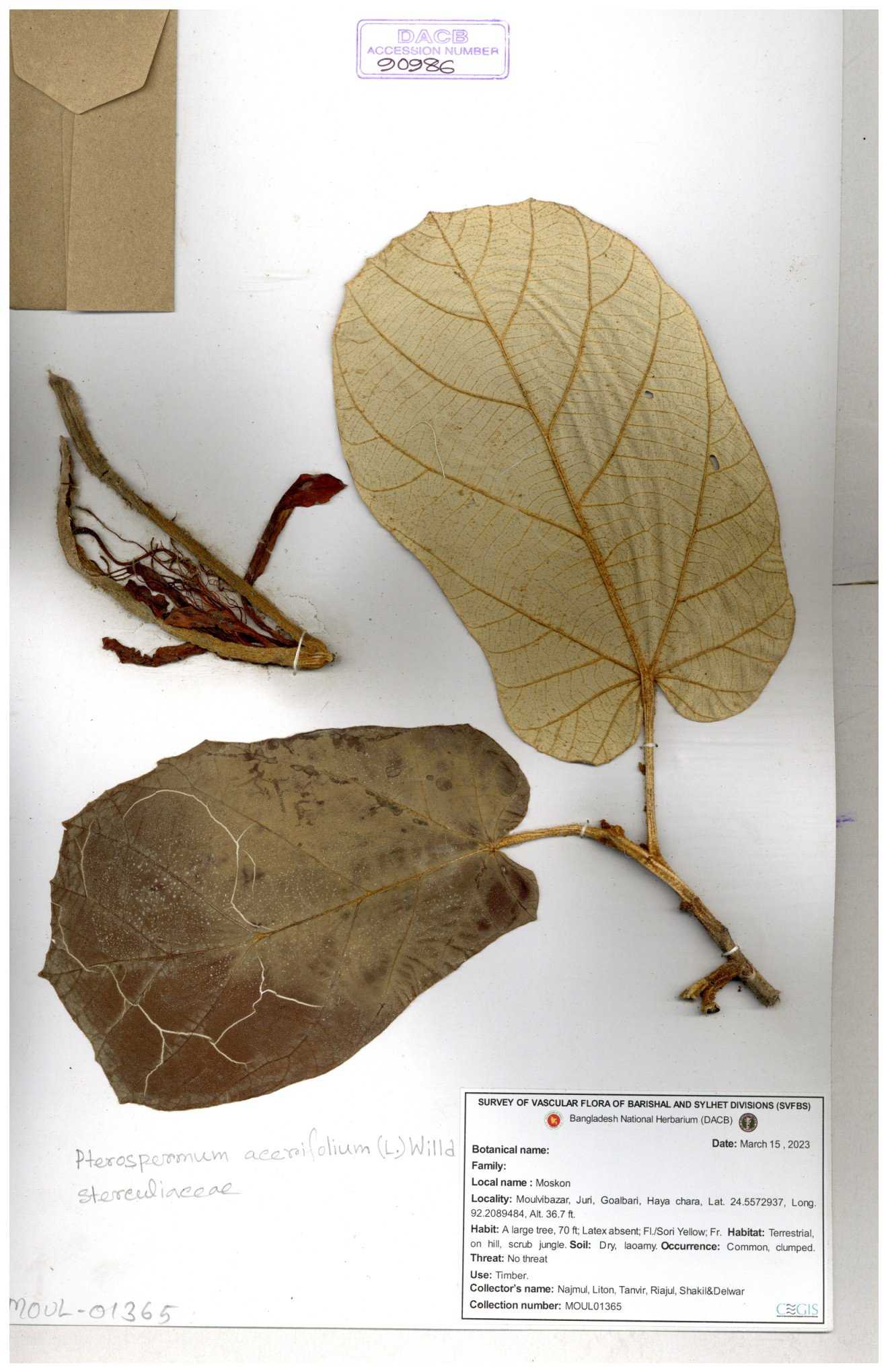 | 101586 | Sterculiaceae | Pterospermum acerifolium | 30-11--0001 |
