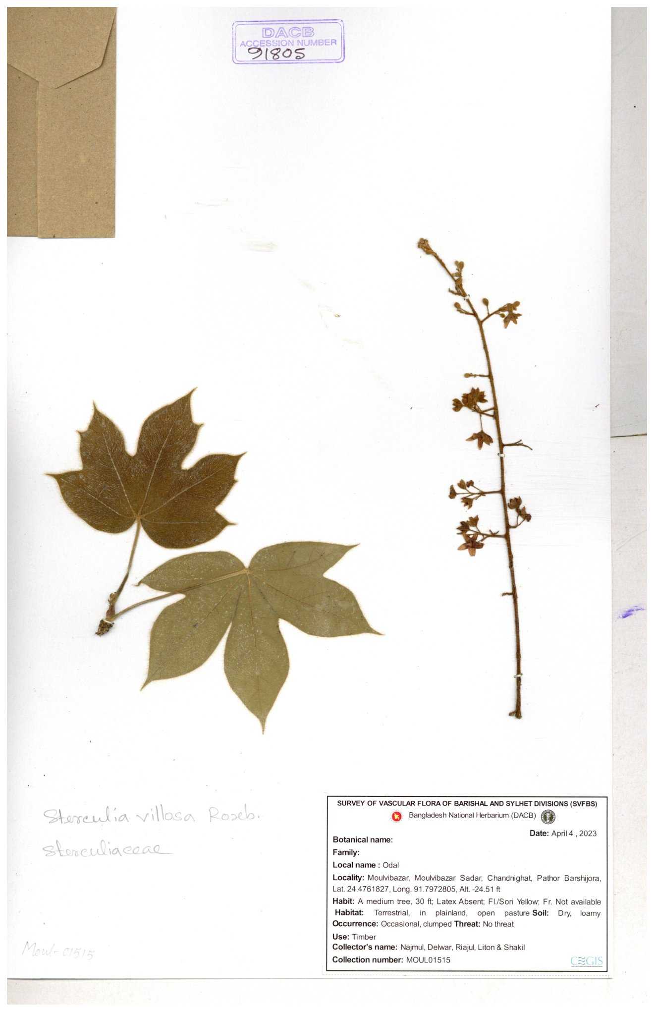 | 54965 | Sterculiaceae | Sterculia villosa Roxb. | Udal | Md. Moniruzzaman & Kawsar | MK- 8089 02-04-2018 |