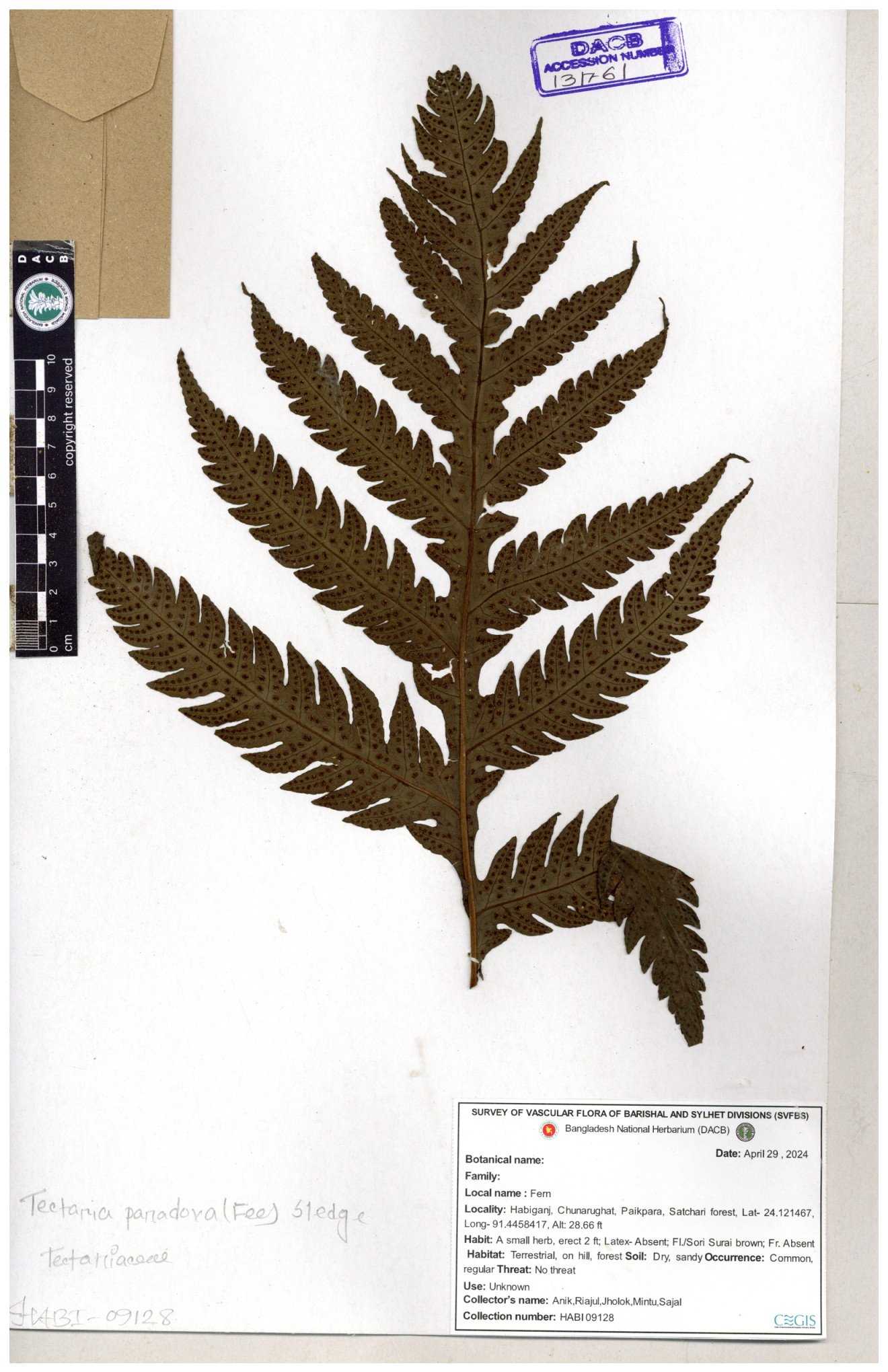 | 48374 | Tectariaceae | Tectaria heterocarpa | Khandakar Kamrul Islam | KKI-1623 30-11--0001 |