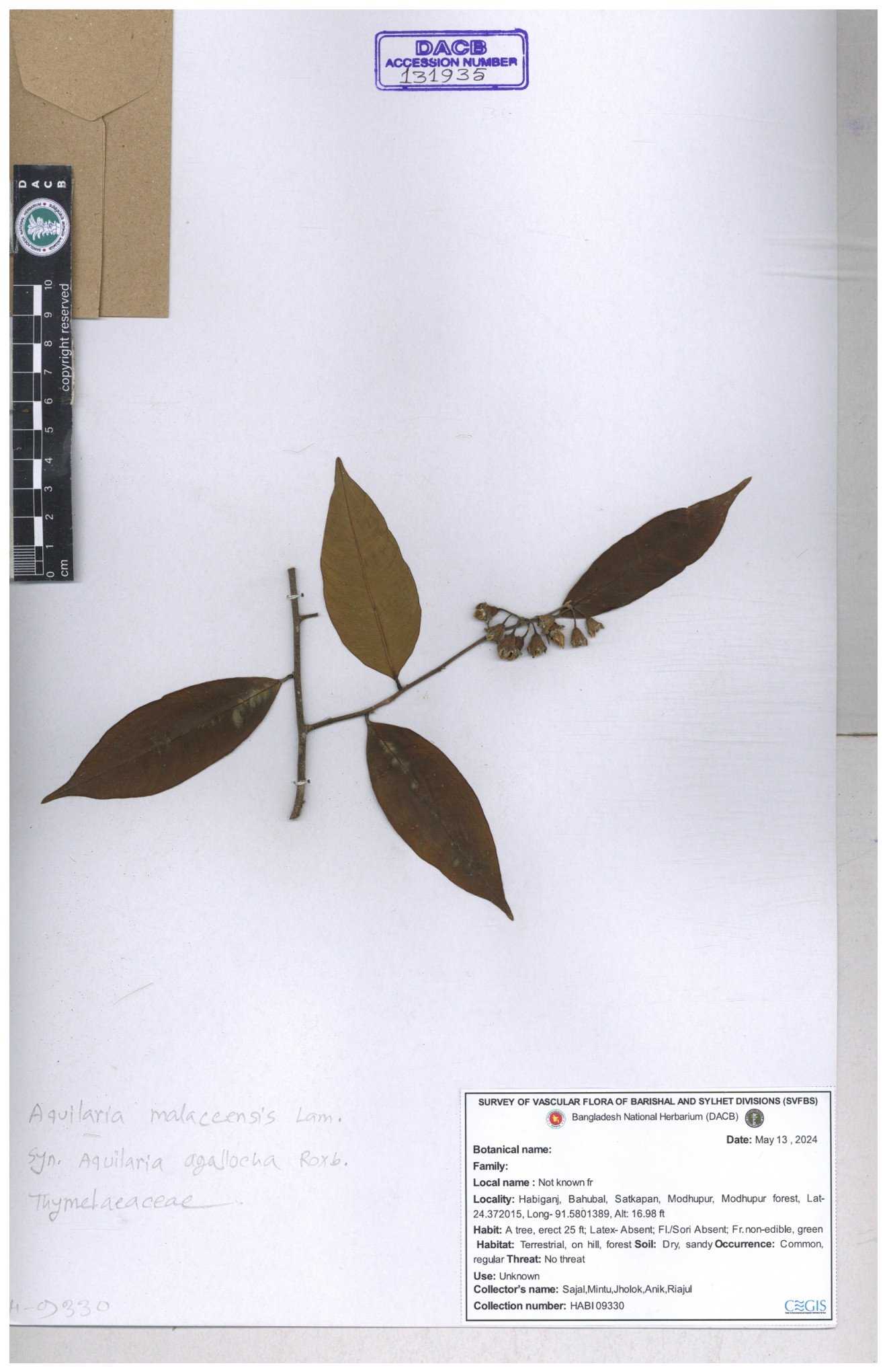 | 37797 | Thymelaeaceae | Aquilaria agallocha | 30-11--0001 |