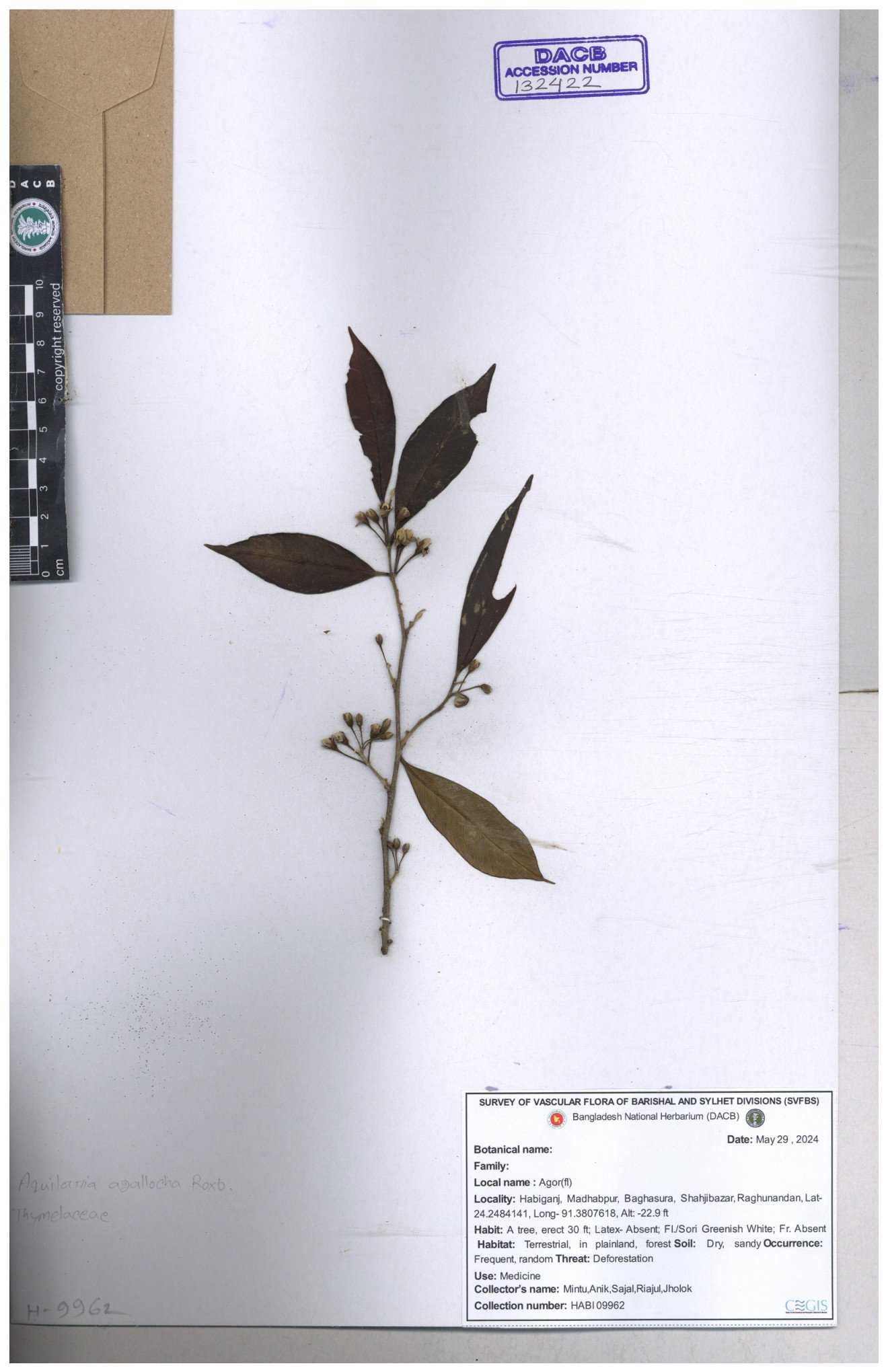 | 132422 | Thymelaeaceae | Aquilaria agallocha | 30-11--0001 |