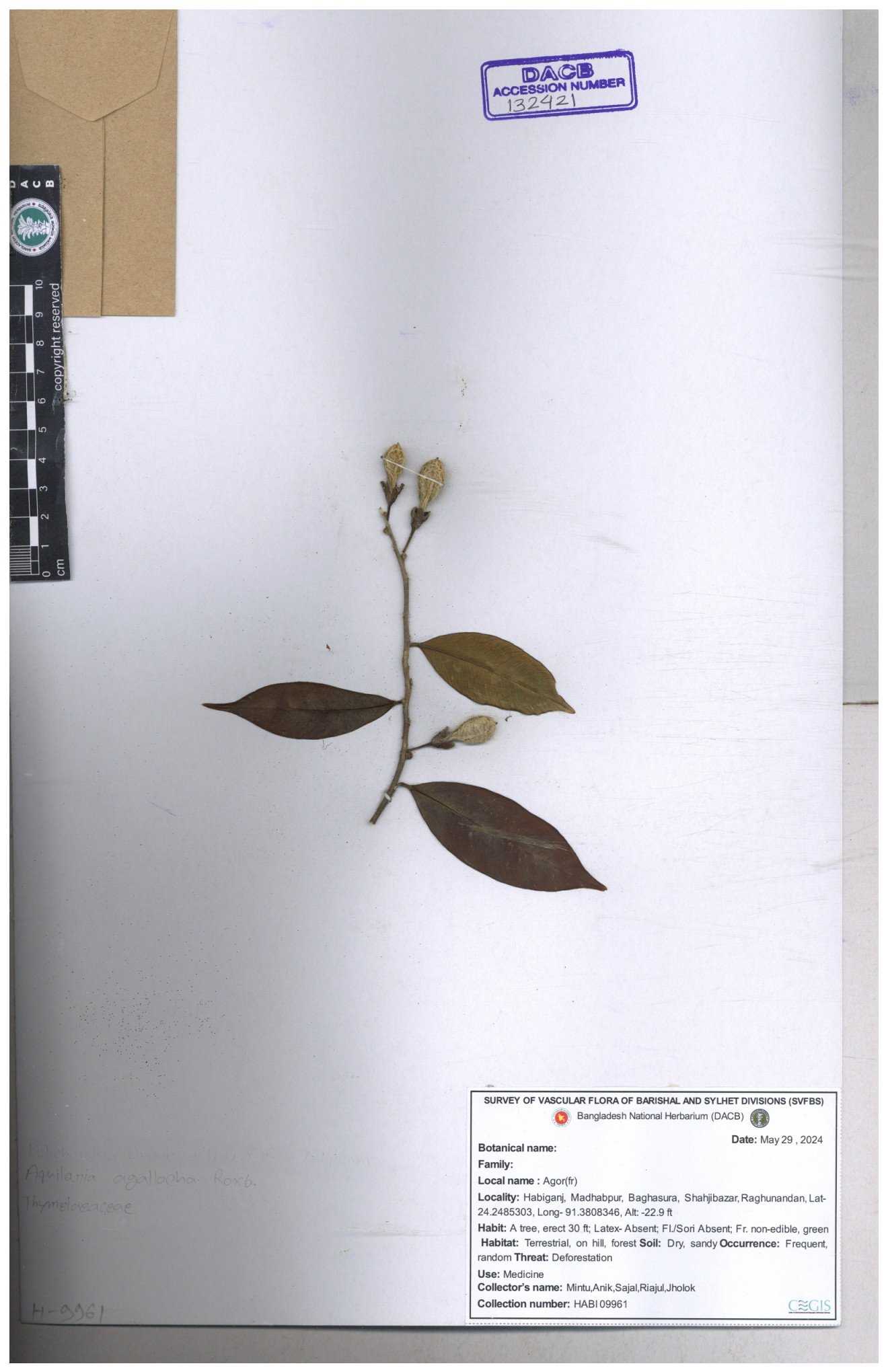 | 132421 | Thymelaeaceae | Aquilaria agallocha | 30-11--0001 |