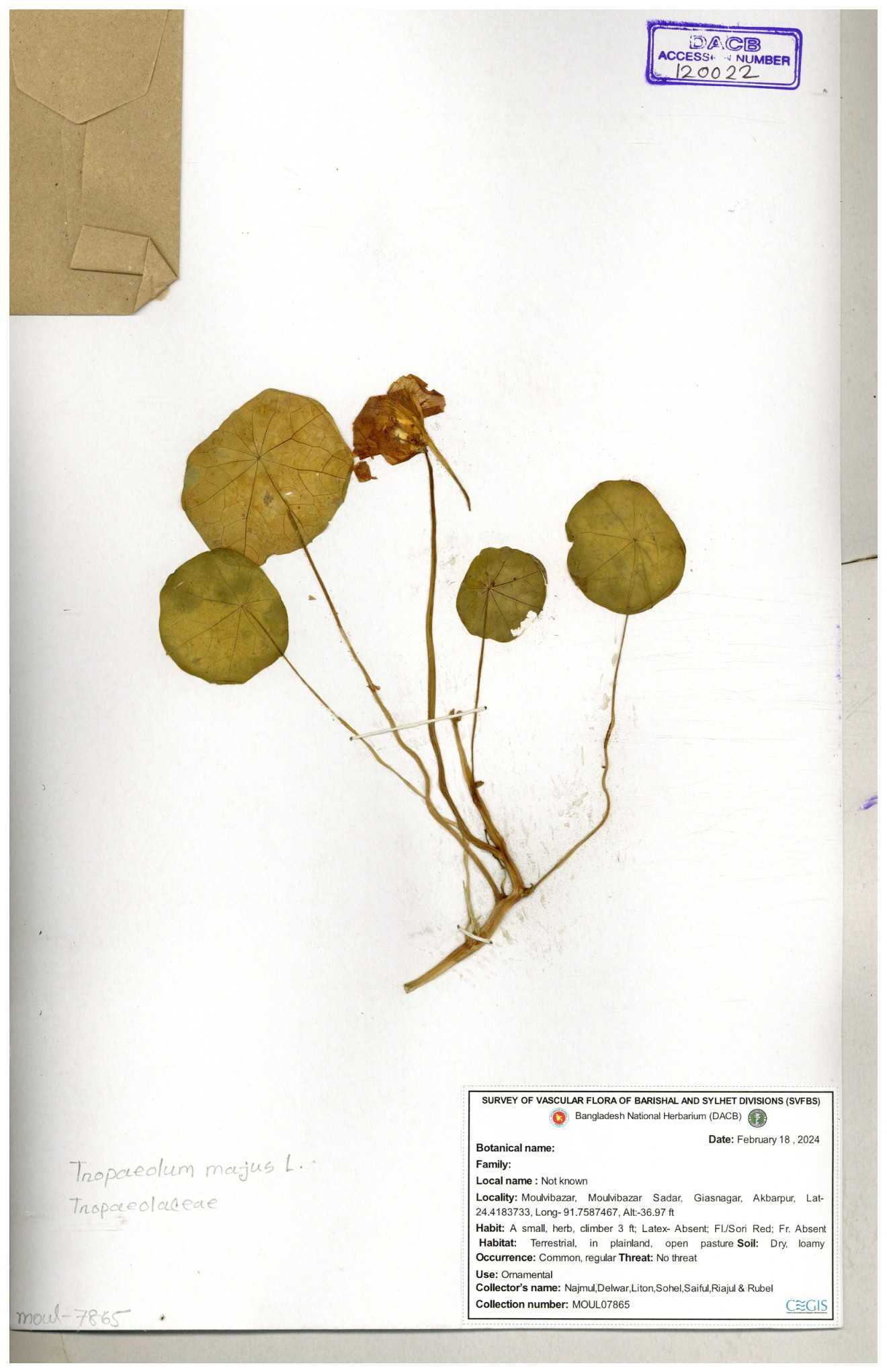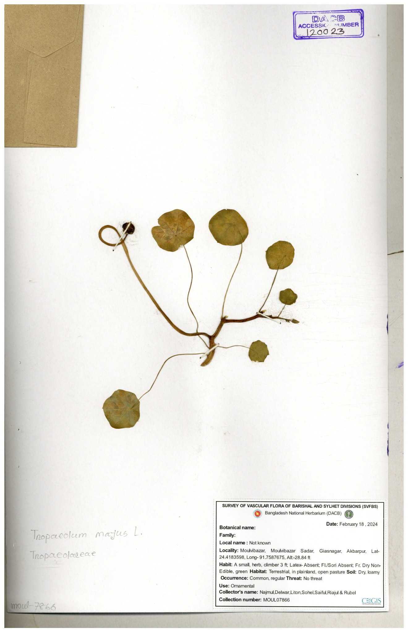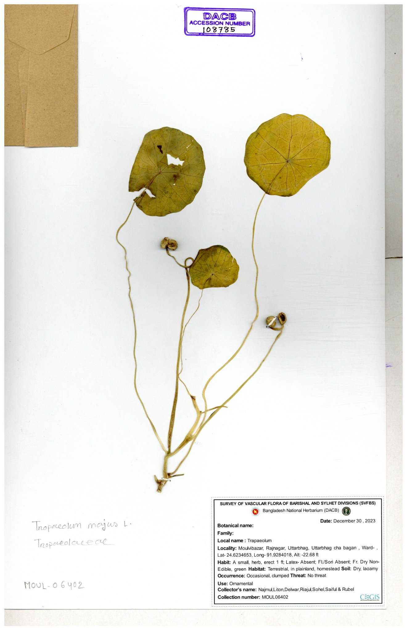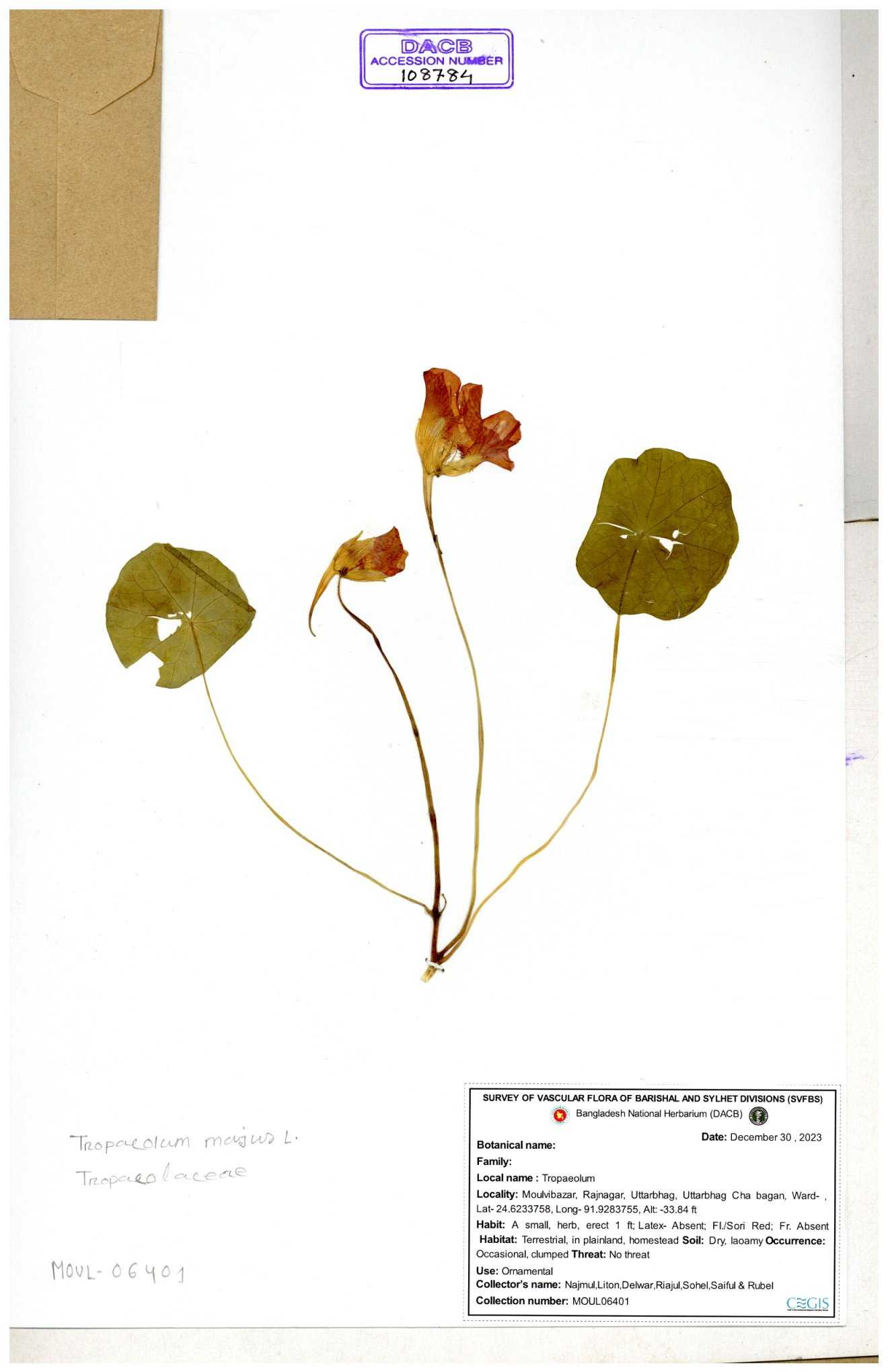 | 108784 | Tropaeolaceae | Tropaeolum majus | 30-11--0001 |